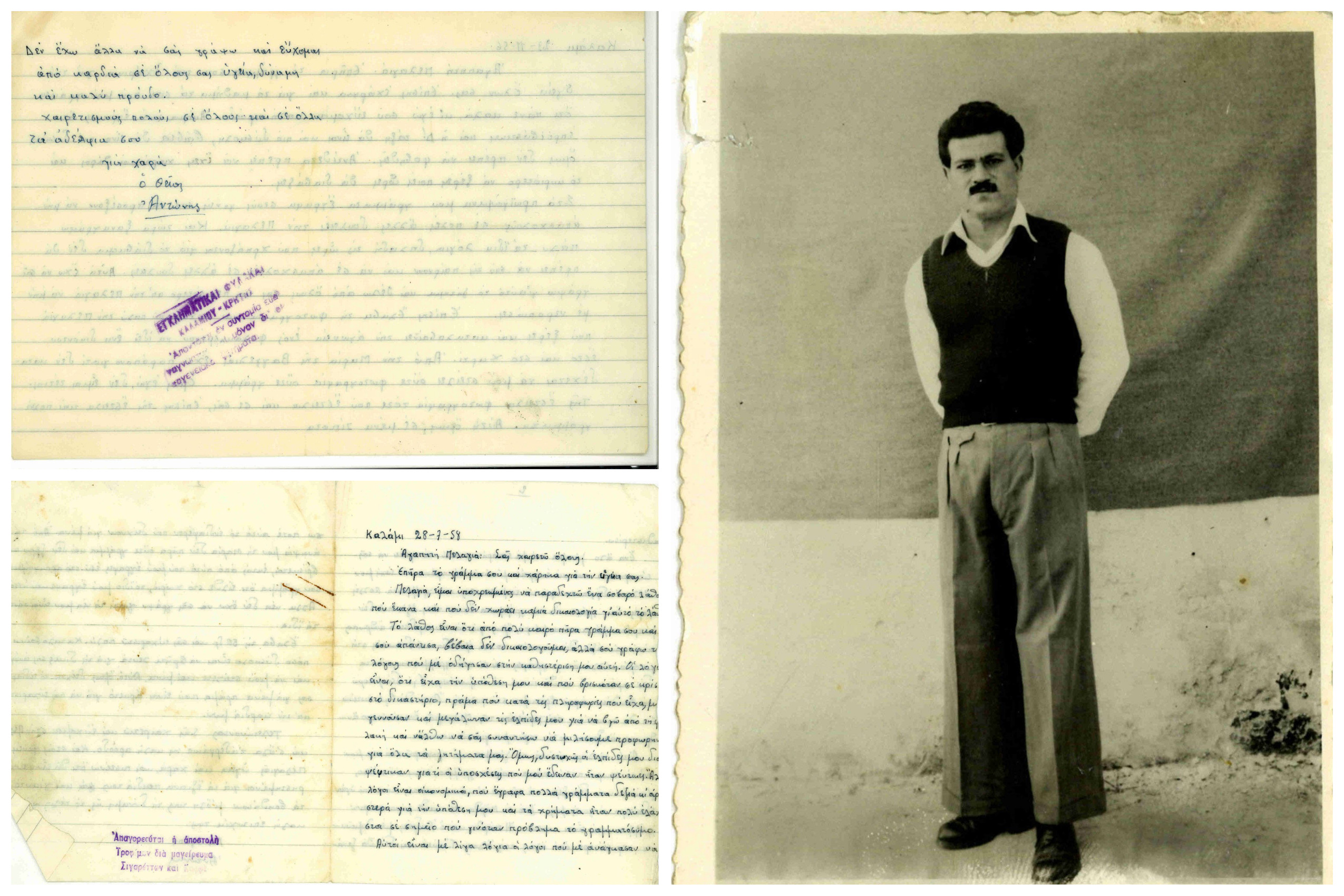 «Οι φυλακές “Καλαμίου Κρήτης” όπως τις έλεγε το επίσημο κράτος για να μη θυμίζει η ονομασία τους το φοβερό κάτεργο του Ιντζεδίν, θεωρούνταν από τα πιο σκληρά δεσμωτήρια. Στην “ακτίνα” των πολιτικών είμαστε κρατούμενοι ηλικίας από είκοσι τριών μέχρι και εξήντα. Μεταξύ μας είχαμε καταδικασμένους για τη δράση τους στην Αντίσταση, τον εμφύλιο και είμαστε και εμείς οι υπόδικοι του Ν. 375/36 για το αδίκημα της “κατασκοπείας”. Κατά περιόδους μας έφερναν και καταδικασμένους με τον Ν. 509/47 για διανομή προκηρύξεων και λοιπών “κομμουνιστικών δραστηριοτήτων”, όπως έγραφαν τα κατηγορητήρια της εποχής. Όλοι μαζί είμαστε περίπου διακόσιοι. Μαζί με τα ανώτατα κομματικά στελέχη, Ερυθριάδης, Λουλές, Δάλας, τα μεσαία στελέχη που ήταν πολλά, υπήρχαν και οι απλοί αγωνιστές οι οποίοι με είχαν εντυπωσιάσει. Πράγματι ήταν αξιοθαύμαστοι οι απλοί αυτοί άνθρωποι που υπέφεραν το μαρτύριο της φυλακής χρόνια ατέλειωτα, μετά μάλιστα από δύο ήττες του κινήματος, όταν μπορούσαν με μια δήλωση αποκήρυξης του Κ.Κ.Ε., στο οποίο πολλοί δεν υπήρξαν ποτέ μέλη του, να φύγουν ελεύθεροι στα σπίτια τους κοντά στους αγαπημένους τους, που τόσα βάσανα υπέφεραν κι αυτοί. Τους απλούς αυτούς αγωνιστές που θυσίαζαν τα πάντα γι’ αυτό που πίστευαν χωρίς καμιά ιδιοτέλεια και υστεροβουλία, όταν τους συνέκρινες με τους πολλούς συμφεροντολόγους και μικρούς ανθρώπους της κοινωνίας μας, ακόμα κι αν διαφωνούσες μ’ αυτό που πίστευαν, τους θαύμαζες. Ήταν το “αλάτι της Γης”, ήταν δείγμα του μεγαλείου του λαού που πετυχαίνει τα ακατόρθωτα όταν πιστέψει σε κάτι. Δυστυχώς οι θυσίες αυτές των απλών ανθρώπων δεν αξιοποιήθηκαν για το καλό του τόπου. Μέσα στο μυαλό μου έρχονται οι ταλαιπωρημένες φιγούρες πολλών απ’ αυτούς που δεν υπάρχουν πια, που μοιράστηκα μαζί τους το πικρό ψωμί της φυλακής, που γνώρισα από κοντά πόση αγάπη είχαν μέσα τους για τον άνθρωπο, πόσο ακέραιος ήταν ο χαρακτήρας τους. Γιατί πρέπει να πω πως στη φυλακή, όταν ζεις συνεχώς μέρα και νύχτα με κάποιους ανθρώπους, τους “διαβάζεις” σε όλες τους τις λεπτομέρειες.