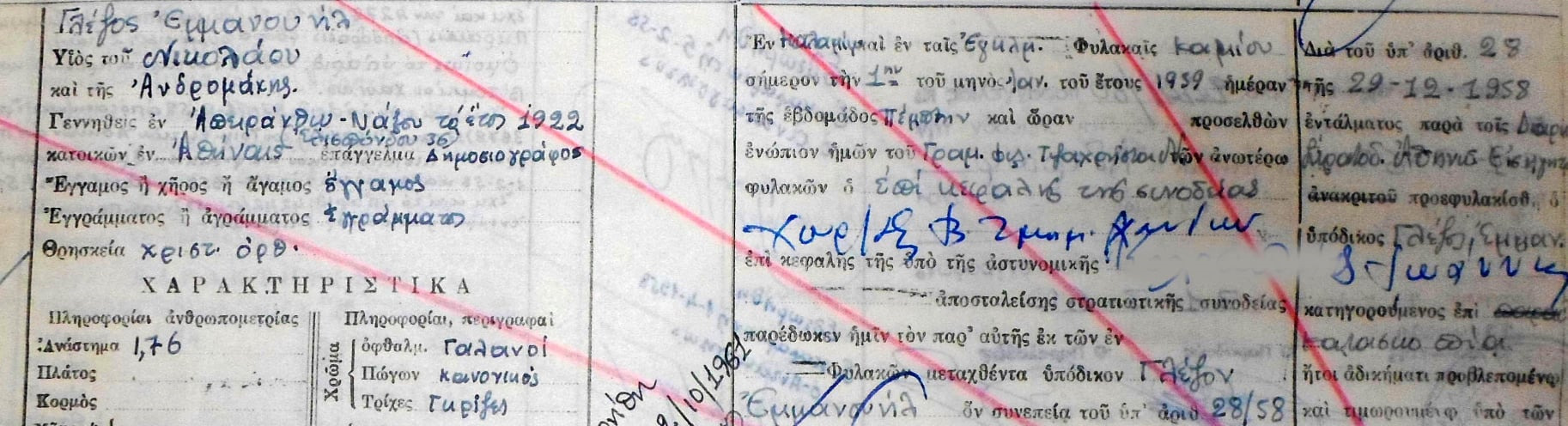 Απόσπασμα από το αδημοσίευτο αρχείο των φυλακών Ιτζεδίν που αναφέρεται στην μεταγωγή του υπόδικου Μανώλη Γλέζου την 1η Ιανουαρίου 1959 στις Εγκληματικές Φυλακές Καλαμίου Κρήτης.