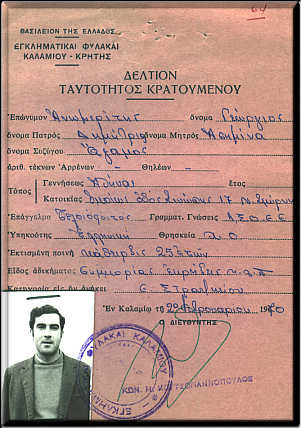 Το Δελτίον Ταυτότητος Κρατουμένου του Γιώργου Ανωμερίτη στις φυλακές Ιτζεδίν.