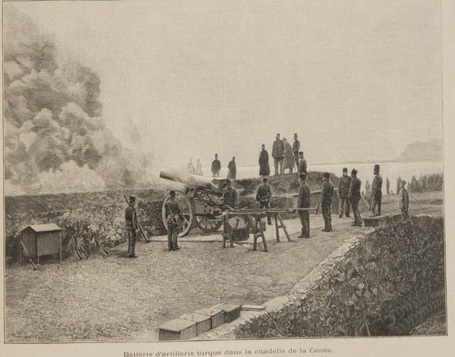 Ασκήσεις Οθωμανών στρατιωτών στο φρούριο Ιτζεδίν λίγο πριν την παρουσία των Ευρωπαϊκών δυνάμεων