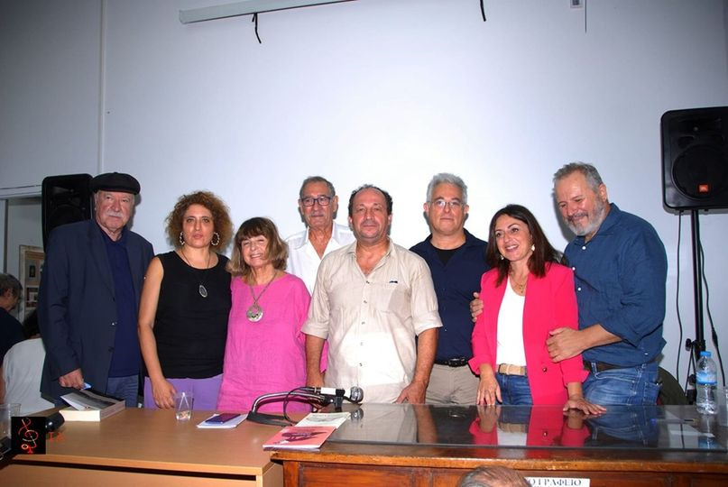 Φωτογραφία από την παρουσίαση του βιβλίου για το φρούριο Ιτζεδίν που έγινε την Τετάρτη 25 Οκτωβρίου 2023 στα γραφεία του ΣΦΕΑ στην Αθήνα (πρώην ΕΑΤ-ΕΣΑ). Διακρίνονται (από αριστερά προς δεξιά): Γιώργος Ανωμερίτης, Αρετή Κοκκίνου, Νατάσα Παπαδοπούλου-Τζαβέλλα, Πέτρος Κουλουφάκος, Δημήτρης Δαμασκηνός, Τάσος Κωστόπουλος, Βασιλική Λάζου και Χάρης Αθανασιάδης.