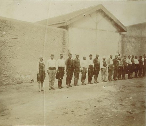 Φωτογραφία του 1915 που απεικονίζει ποινικούς κατάδικους στο εσωτερικό αύλειο χώρο των φυλακών Ιτζεδίν