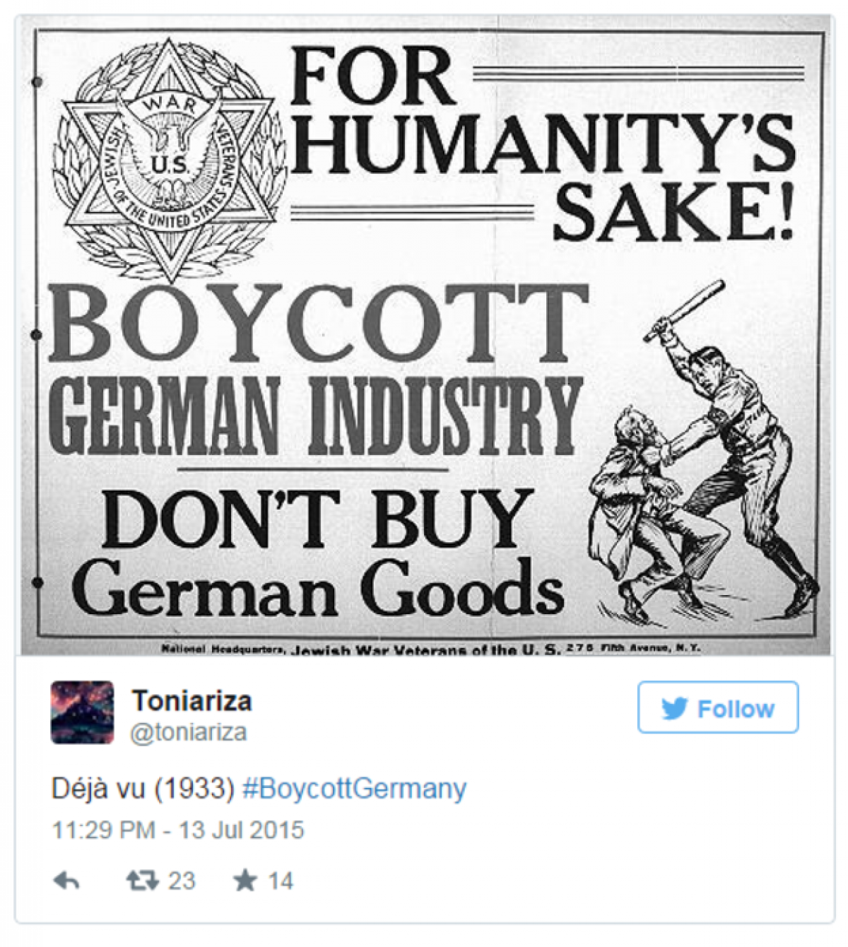 Άλλοι καλούν τους πολίτες να μποϊκοτάρουν γερμανικά προϊόντα πολυτελείας: “Μην αγοράζετε Volkswagen ή Miele”. Επίσης κάποιοι ποστάρουν πόστερς με αντιναζιστική προπαγάνδα.