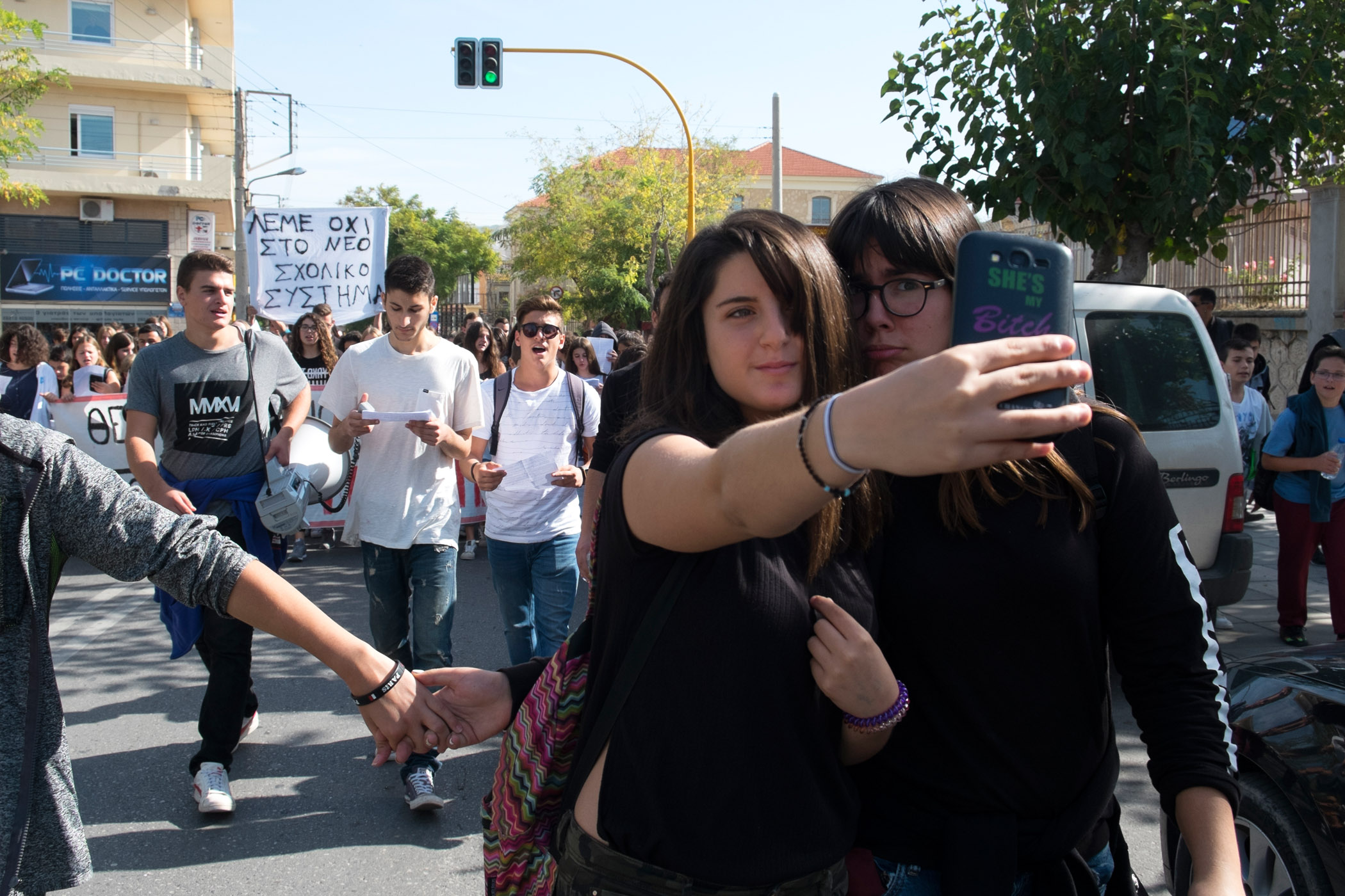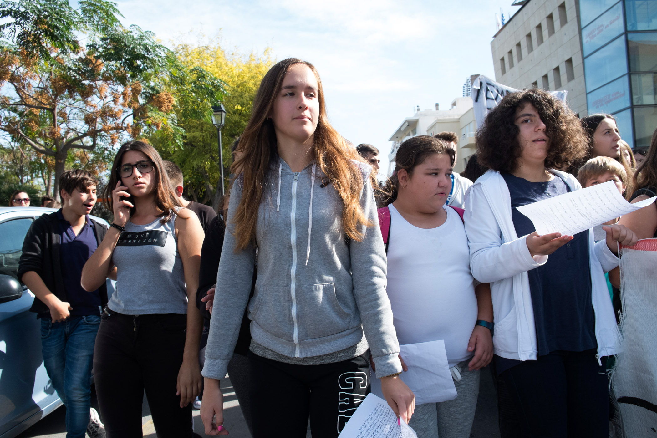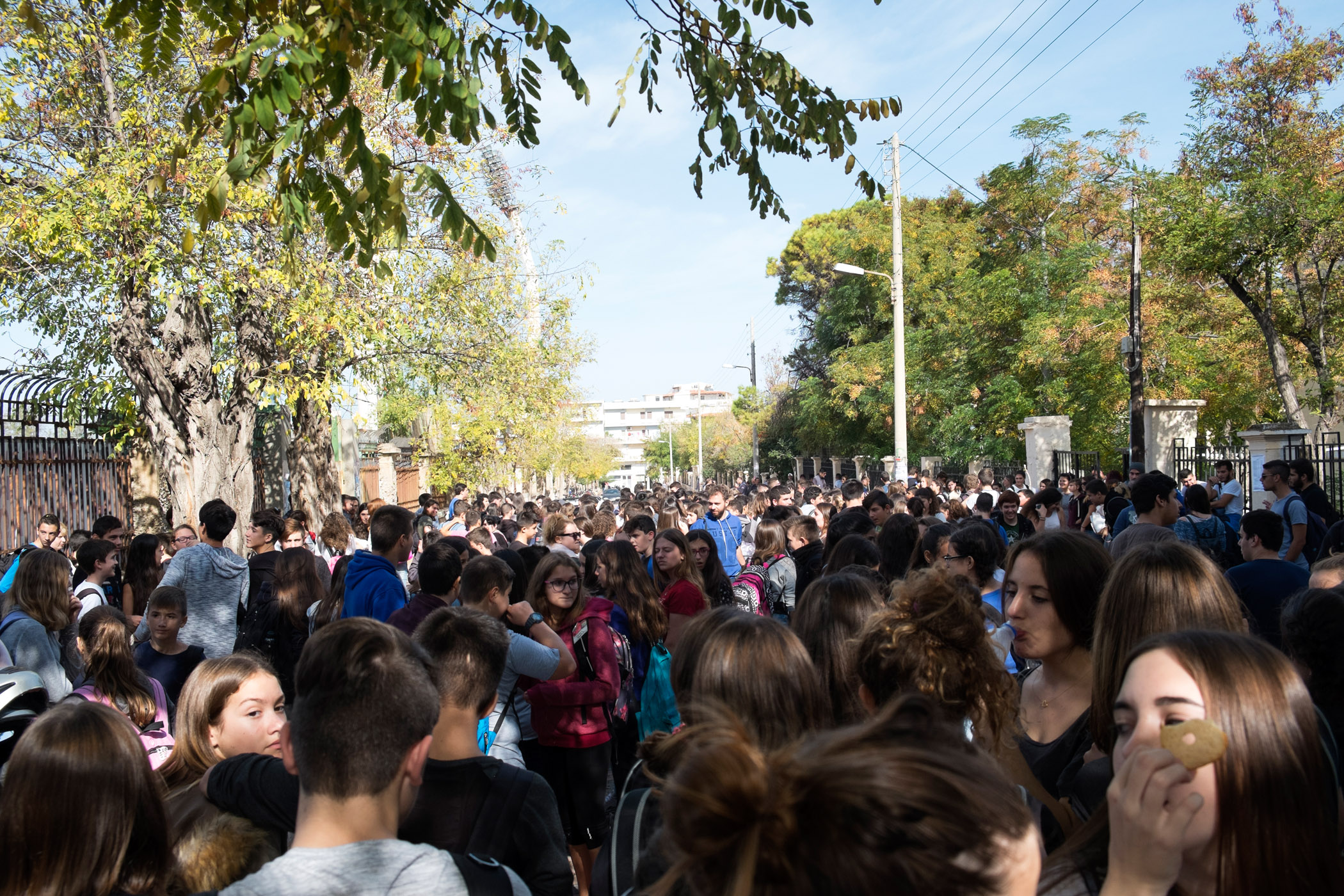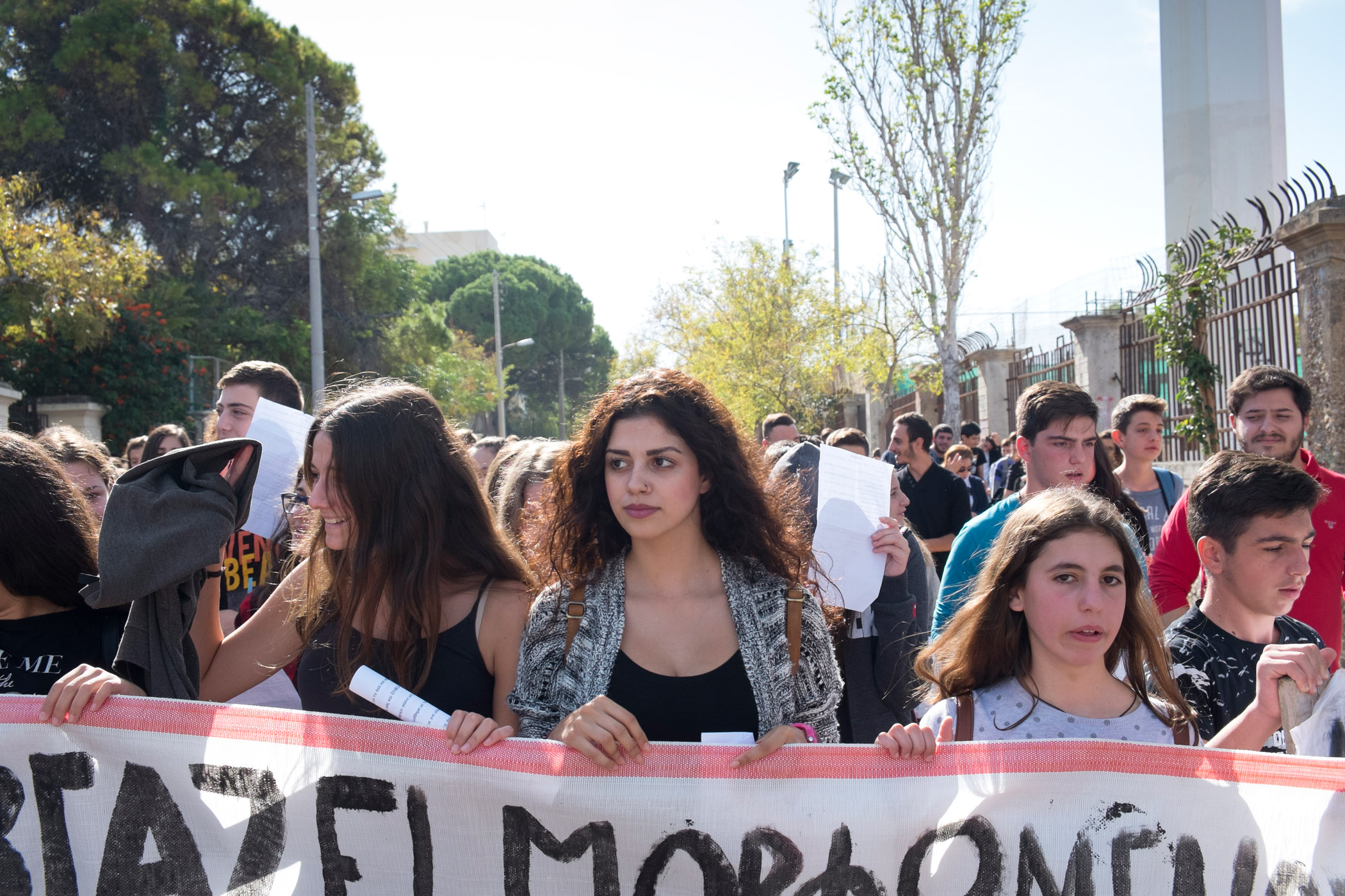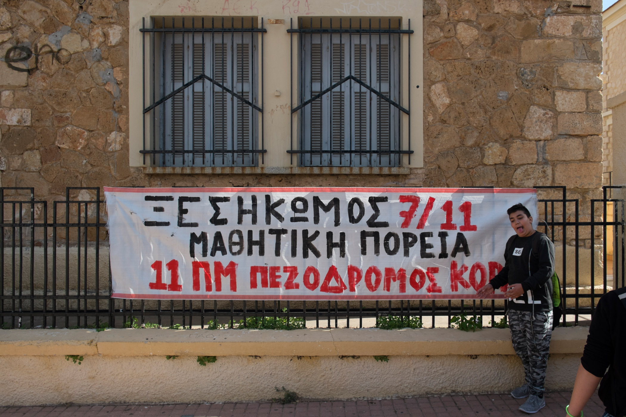 Οι εκατοντάδες μαθητές ήταν στην Κοραή ήδη από τις 11 το πρωί και σύντομα μετά ξεκίνησε η πορεία, με παλμό και πολλά συνθήματα: