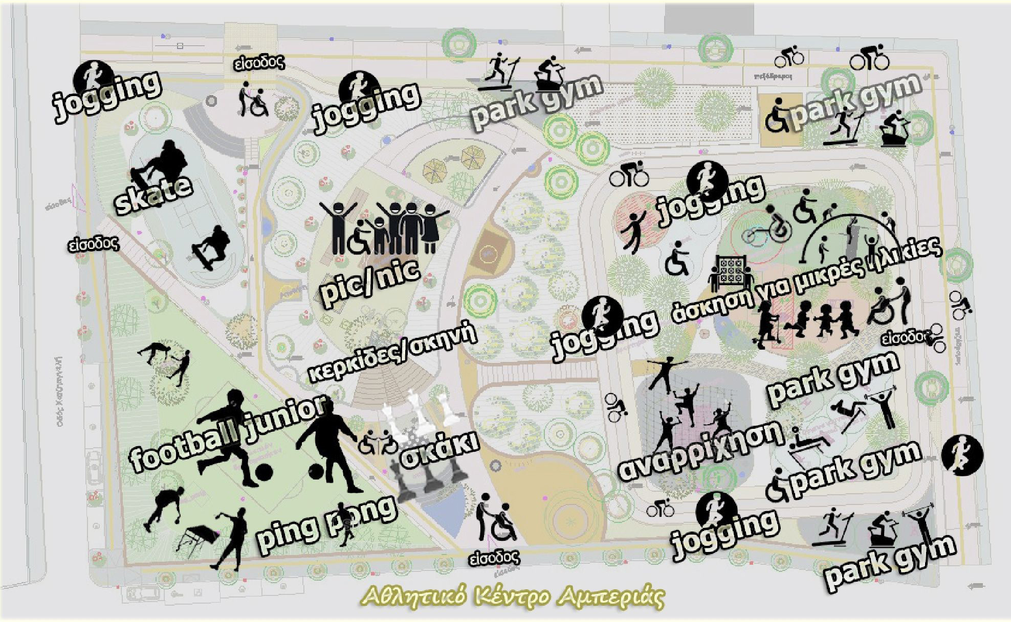 - περιοχή υπαίθριας άθλησης με πιστοποιημένα όργανα γυμναστικής εξωτερικού χώρου, που απευθύνονται σε άτομα όλων των ηλικιών