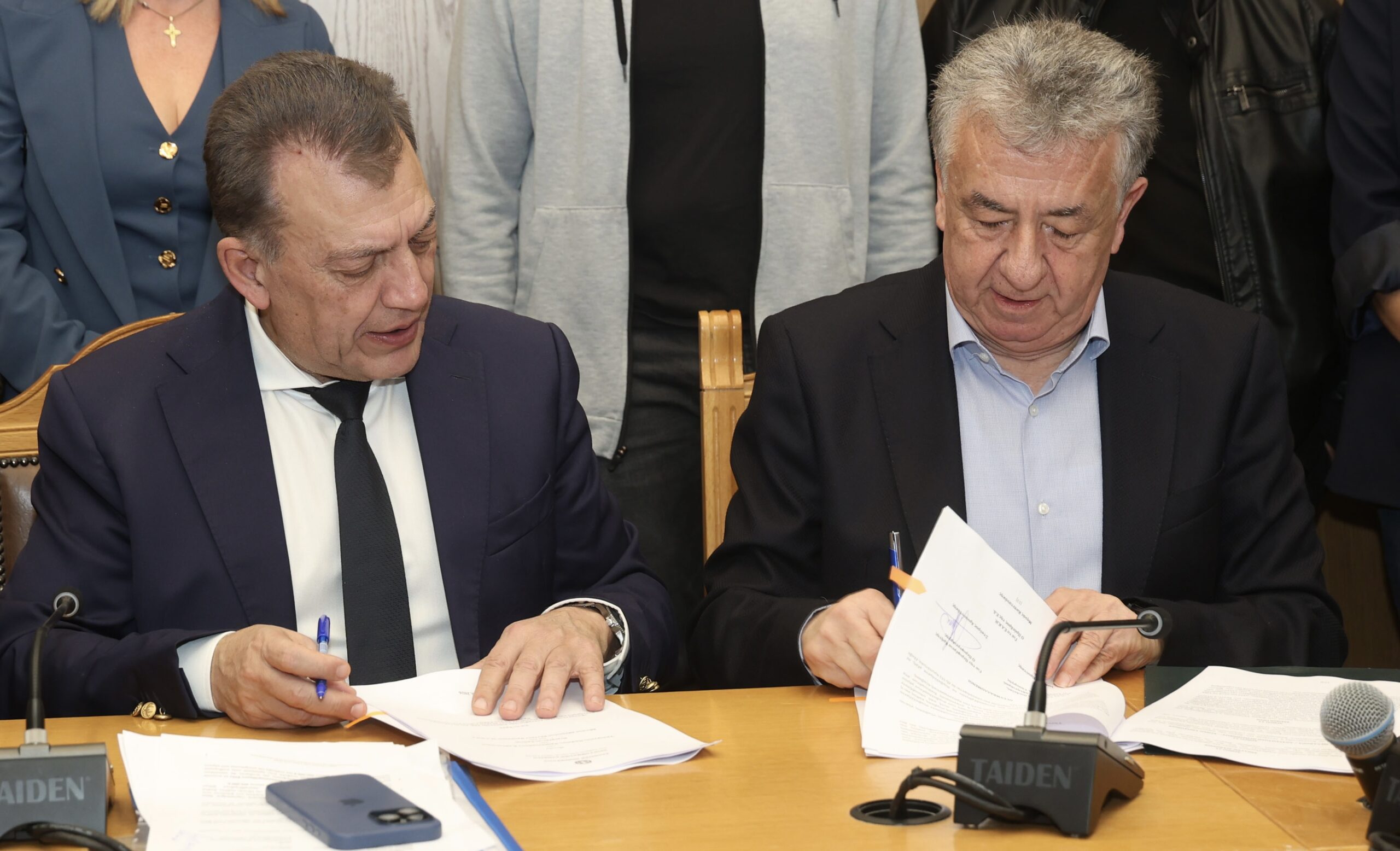 Την προγραμματική σύμβαση για την αναβάθμιση των αθλητικών υποδομών του Εθνικού Αθλητικού Κέντρου Ηρακλείου (ΕΑΚΗ) υπέγραψαν σήμερα στο Ηράκλειο ο Υπουργός Αθλητισμού Γιάννης Βρούτσης, ο Περιφερειάρχης Κρήτης Σταύρος Αρναουτάκης και ο Πρόεδρος του ΕΑΚΗ Μηνάς Καπετανάκης. Το έργο, συνολικού προϋπολογισμού 1.200.000 ευρώ, χρηματοδοτείται από το Υπουργείο Αθλητισμού και υλοποιείται με την παρακολούθηση της Περιφέρειας Κρήτης.