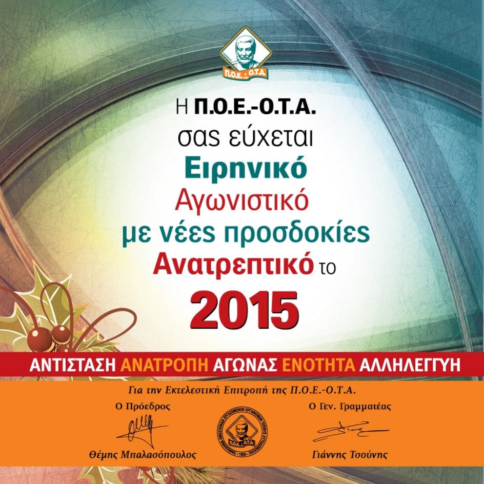 Σε οποιαδήποτε περίπτωση, ευχαριστούμε και ευχόμαστε και εμείς με τη σειρά μας, χρόνια πολλά, χαρούμενα Χριστούγεννα με υγεία σε όσους μας ευχήθηκαν και σε όλους τους αναγνώστες της εφημερίδας.