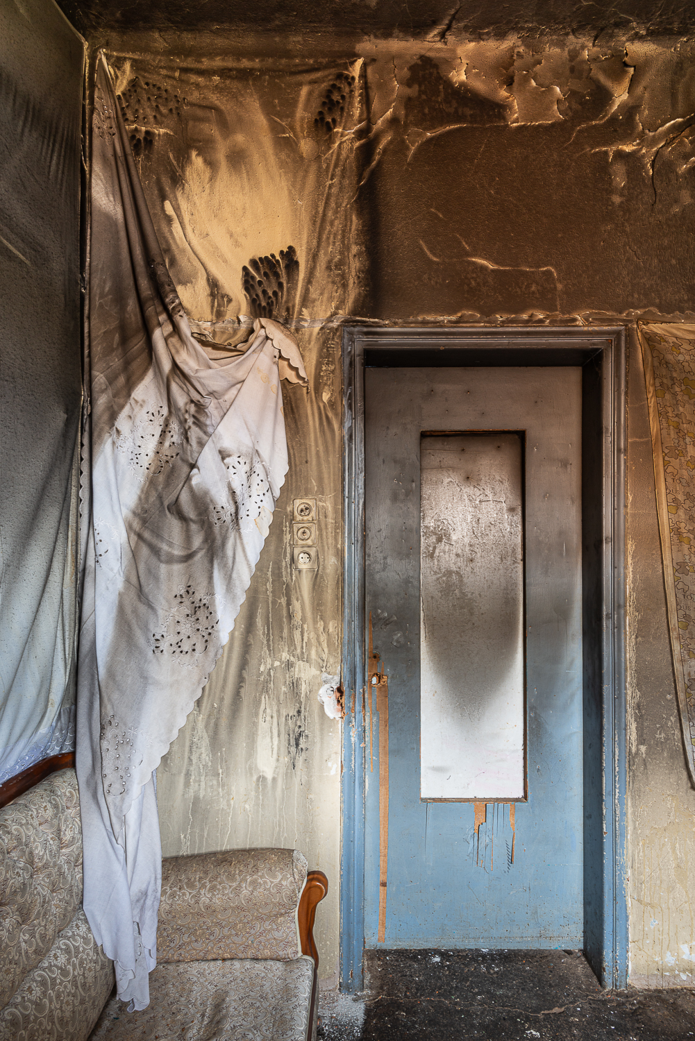 Στην καρδιά της έκθεσης δεν βρίσκεται η ίδια η καταστροφή, αλλά το ίχνος που αφήνει στο βλέμμα, στο συναίσθημα, στην ψυχική διεργασία. Οι εικόνες των καμένων τόπων, των ερειπίων και των ιχνών της φωτιάς δεν λειτουργούν ως τεκμήρια γεγονότων, αλλά ως σύμβολα ενός κόσμου που διαρκώς καίγεται και μετασχηματίζεται.