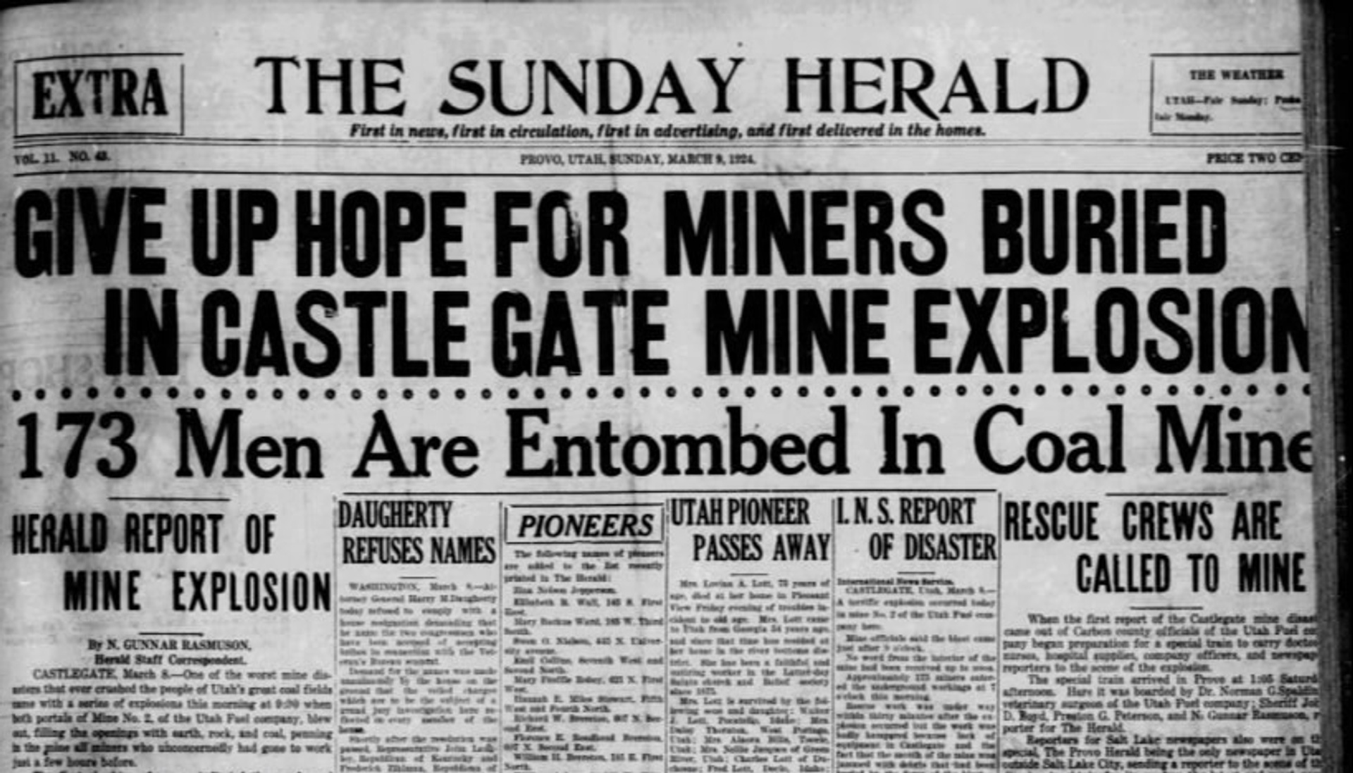 Στις 8 Μαρτίου 1924, στα ορυχεία του Castle Gate στην πολιτεία Γιούτα των Ηνωμένων Πολιτειών, η γη άνοιξε και κατάπιε 171 εργάτες μέσα σε λίγα λεπτά. Ήταν το δεύτερο πιο φονικό δυστύχημα σε ορυχείο στην αμερικανική ιστορία έως τότε, και το δέκατο συνολικά μέχρι σήμερα. Εκείνη τη μέρα, η ιστορία της ελληνικής μετανάστευσης στην Αμερική βάφτηκε με αίμα – 50 από τα θύματα ήταν Έλληνες και 48 εξ αυτών Κρητικοί.