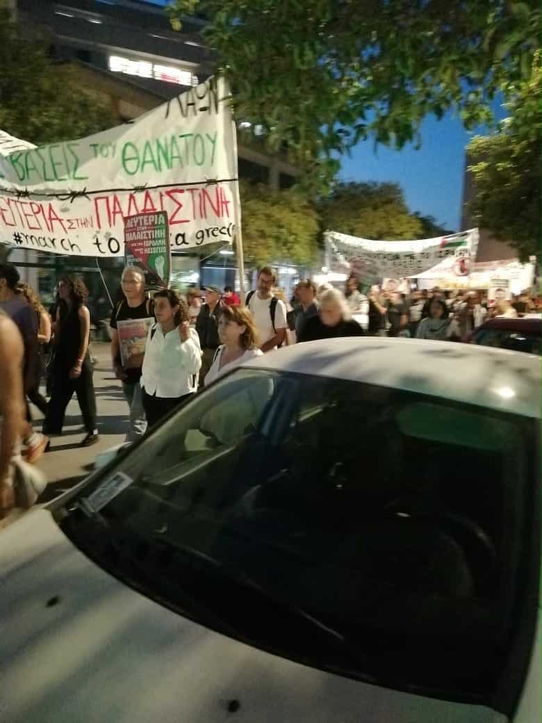 Ακολούθησε πορεία στο κέντρο της πόλης, με κατάληξη το Πάρκο Ειρήνης και Φιλίας, όπου πραγματοποιήθηκε εκδήλωση σε συνδιοργάνωση του Παγκρήτιου Συντονιστικού για την Παλαιστίνη και της συλλογικότητας March to Gaza Greece.