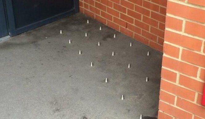 Αξίζει να σημειώσουμε εδώ, ότι η ίδια λογική που χρησιμοποιείται για να αποδιώχνουν πουλιά και άλλου είδους ζώα, έχει επεκταθεί πλέον και σε ανθρώπους αφού σε πολλές περιοχές του κόσμου, τοποθετούν καρφιά ενάντια στους ανθρώπους που έχουν μείνει χωρίς στέγη, ώστε να μην κοιμούνται σε συγκεκριμένα σημεία. Η αρχιτεκτονική του αστικού τοπίου αλλάζει και γίνεται πιο εχθρική σε συγκεκριμένες “μη οικονομικές” κοινωνικές ομάδες αλλά και σε σχέση με πουλιά και άλλα ζώα.