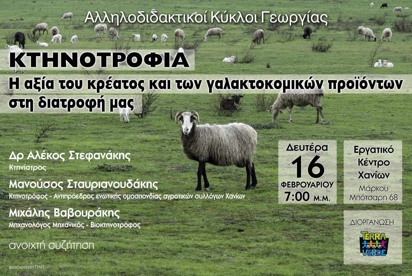 Σε μια εποχή κατά την οποία η αγροδιατροφική αλυσίδα αντιμετωπίζει πιέσεις τόσο ως προς την επιβίωση των παραγωγών όσο και ως προς την ασφάλεια των καταναλωτών, οι «Αλληλοδιδακτικοί Κύκλοι Γεωργίας» τη Δευτέρα 16 Φεβρουαρίου στα Χανιά, στα δέκα χρόνια δράσεων, επικεντρώθηκαν σε αυτό ακριβώς το θέμα. Η εκδήλωση, που πραγματοποιήθηκε στις 19:00 στο Εργατικό Κέντρο Χανίων (Μάρκου Μπότσαρη 68), εστίασε στην κτηνοτροφία της Κρήτης — αναδεικνύοντας τη μοναδικότητα των κτηνοτροφικών προϊόντων του νησιού, αλλά και τις δομικές αδυναμίες που απειλούν τον παραδοσιακό τρόπο παραγωγής.