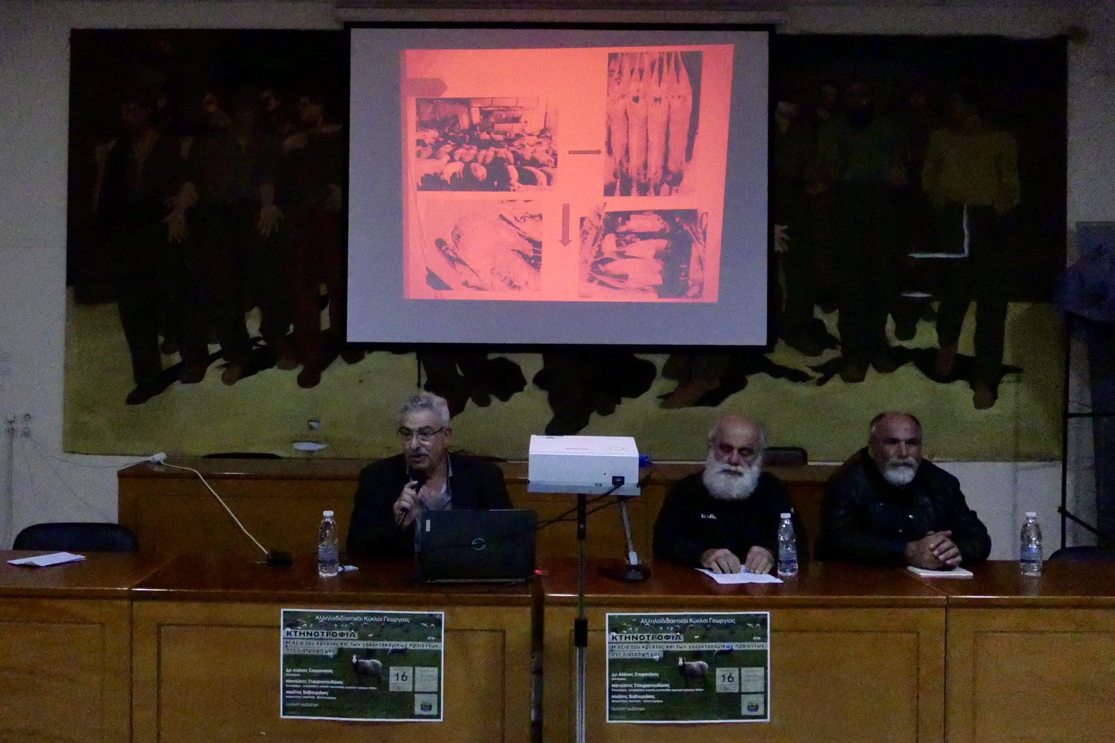 Τις εισηγήσεις της εκδήλωσης πραγματοποίησαν τρεις ομιλητές με διαφορετικό αλλά συμπληρωματικό υπόβαθρο. Ο Αλέκος Στεφανάκης, κτηνίατρος, πρόσφερε την επιστημονική διάσταση. Ο Μανούσος Σταυριανουδάκης, κτηνοτρόφος και αντιπρόεδρος της Ενωτικής Ομοσπονδίας Αγροτικών Συλλογών Χανίων, κατέθεσε τη βιωμένη εμπειρία από τον χώρο της παραγωγής και τη συλλογική εκπροσώπηση. Ο Μιχάλης Βαβουράκης, μηχανολόγος μηχανικός και βιοκτηνοτρόφος, έφερε τη σύζευξη τεχνολογίας και βιολογικής κτηνοτροφίας. Η παρουσία τους αντικατοπτρίζει την πολυδιάστατη φύση του ζητήματος, που αγγίζει τόσο την επιστήμη όσο και την καθημερινή πρακτική.