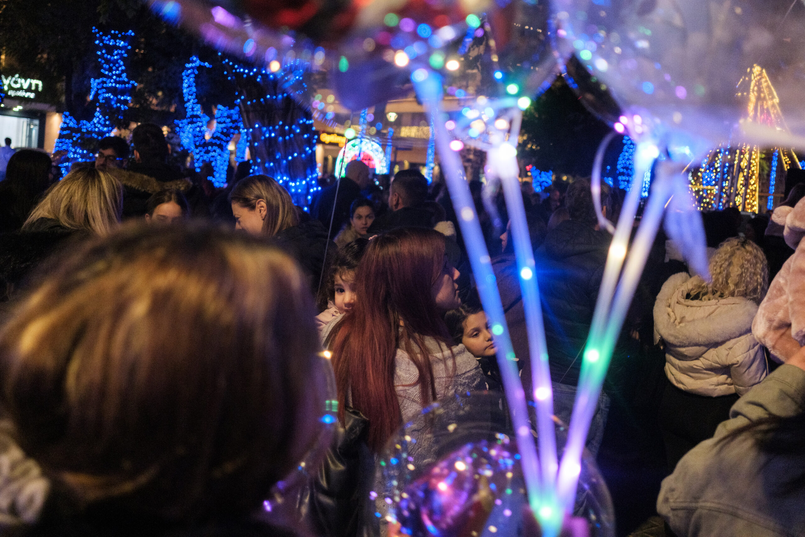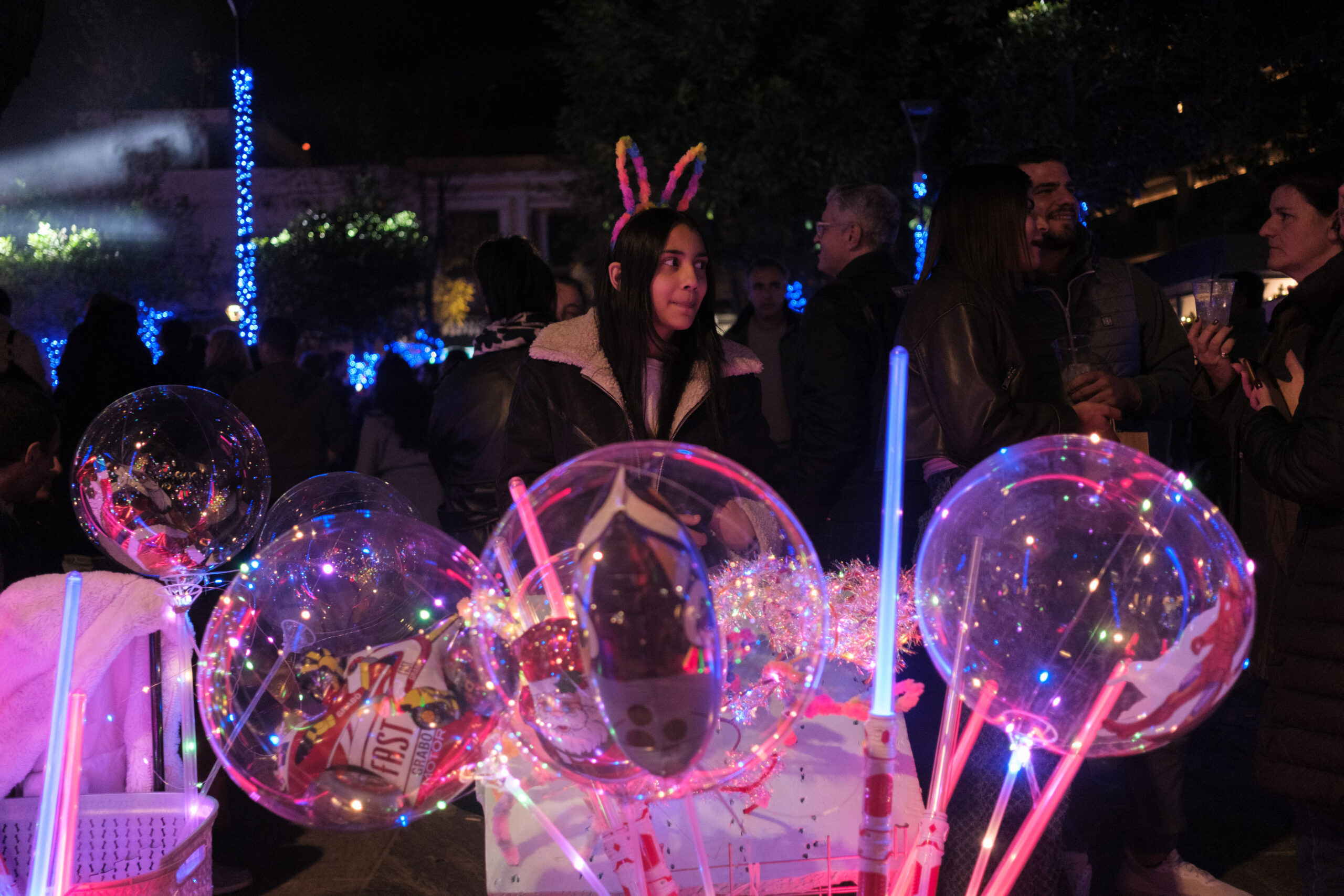 Πλήθος κόσμου, κάτοικοι και επισκέπτες, κατέκλυσαν τον χώρο της πλατείας για να περιηγηθούν στο νέο εορταστικό σκηνικό που δημιούργησε ο Δήμος. Η βραδιά των εγκαινίων κορυφώθηκε με τη συναυλία του συγκροτήματος ONIRAMA, οι οποίοι ανέβηκαν στη σκηνή προσφέροντας ένα δυναμικό μουσικό πρόγραμμα και ενισχύοντας τη διασκεδαστική διάσταση της διοργάνωσης.