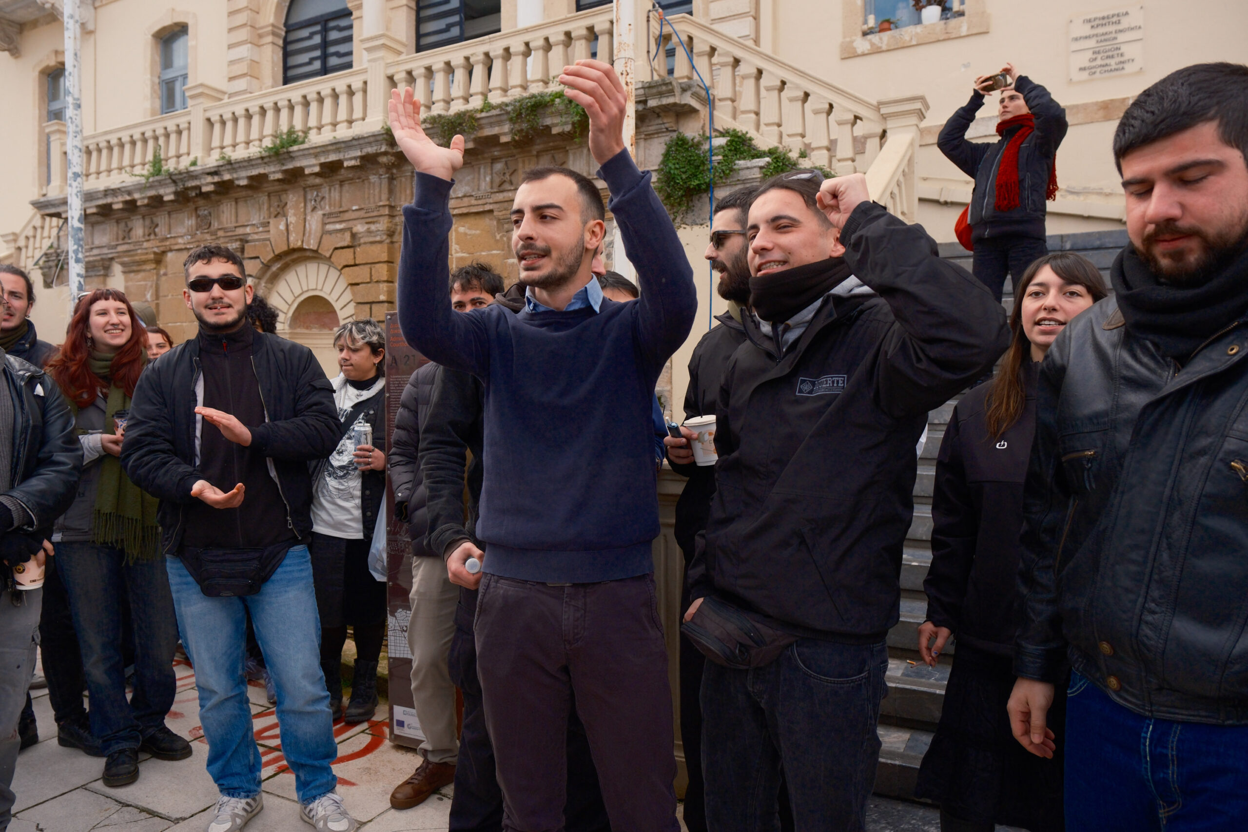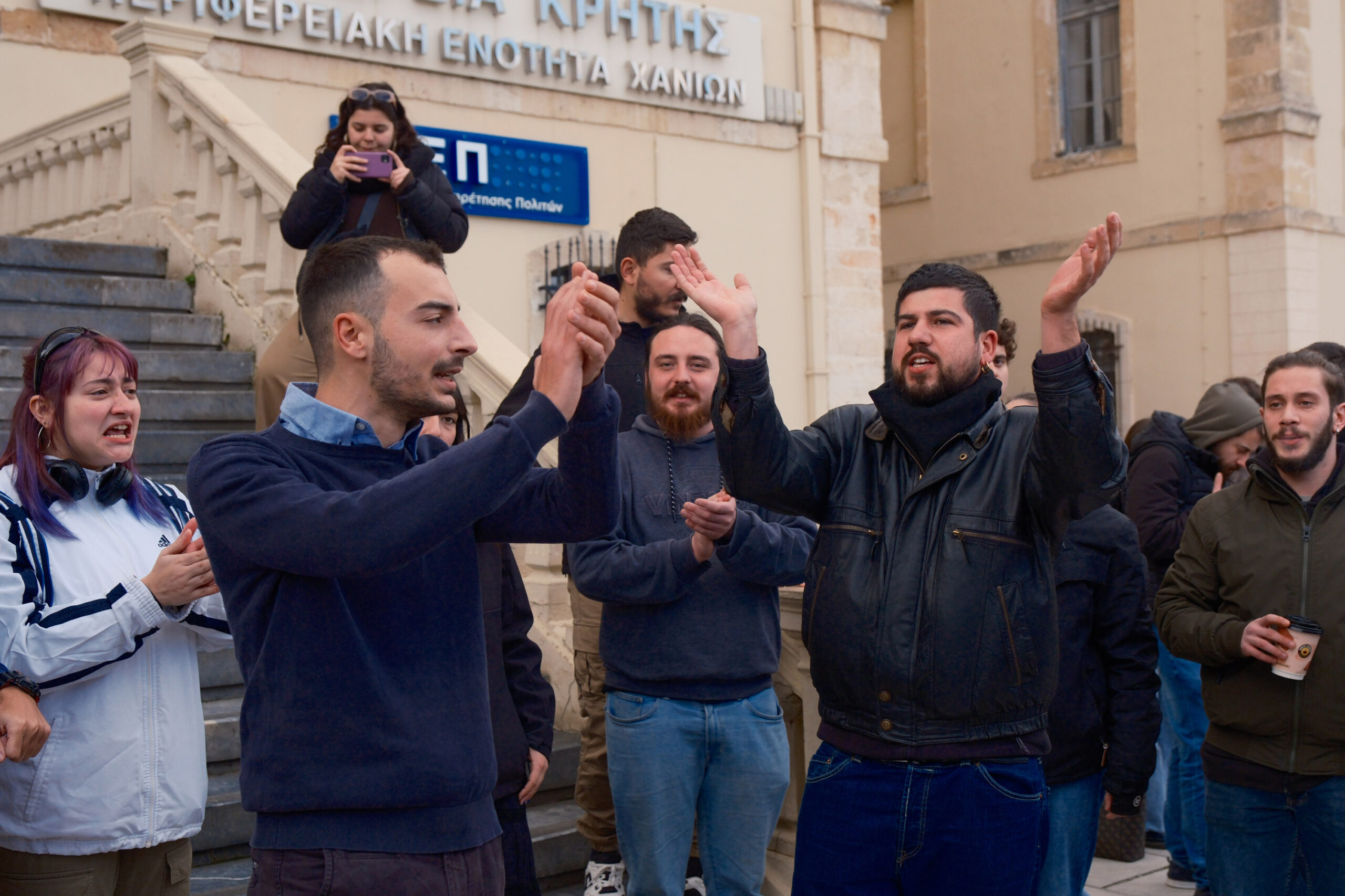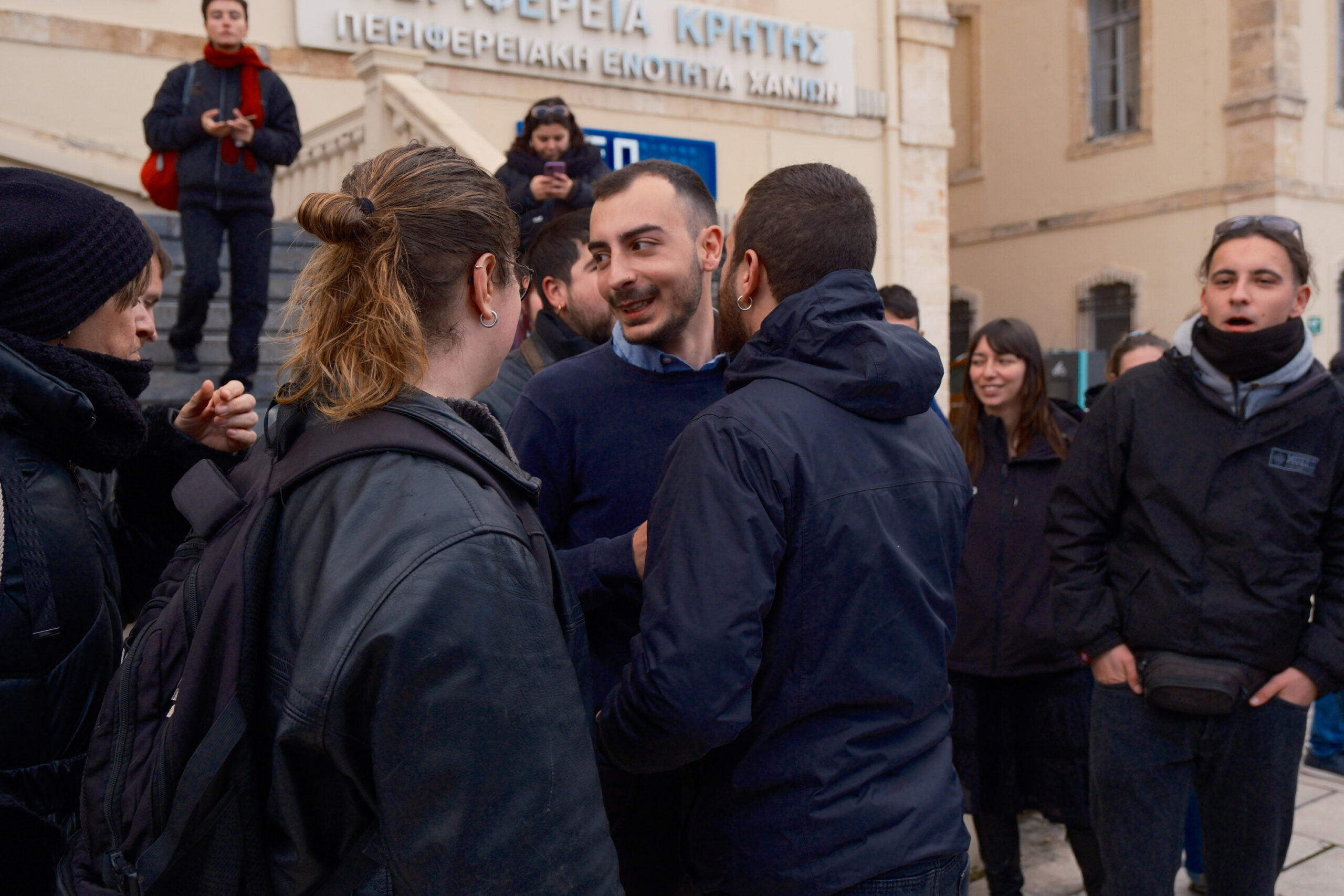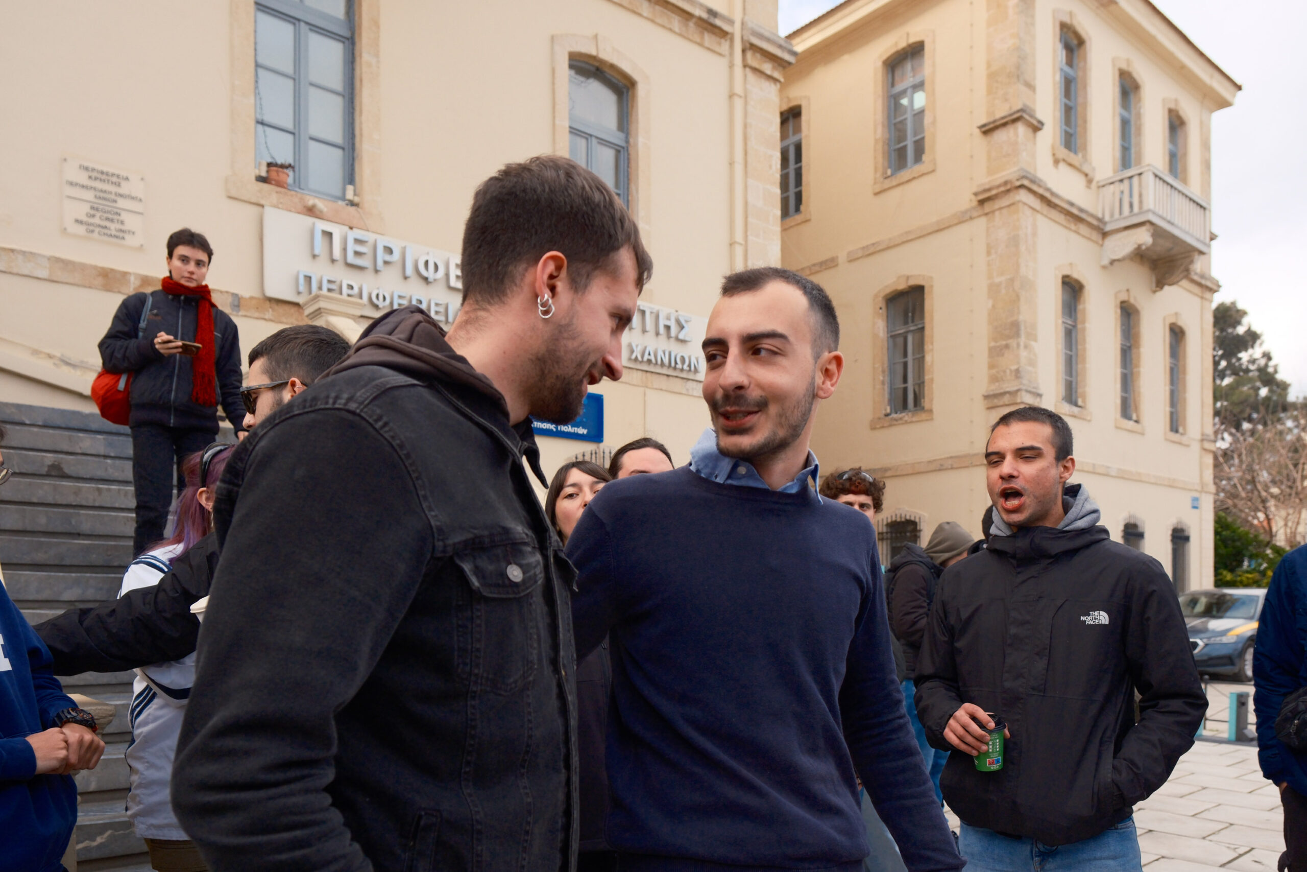 Στις αγκαλιές των συμφοιτητών και συντρόφων του έπεσε ο Αντιπρόεδρος του Ενιαίου Φοιτητικού Συλλόγου του Πολυτεχνείου Κρήτης μετά την πανηγυρική αθώωσή του σήμερα στα Δικαστήρια Χανίων.