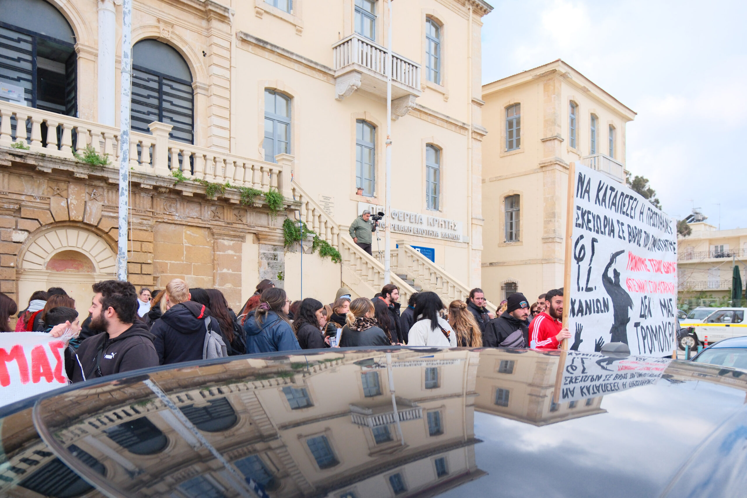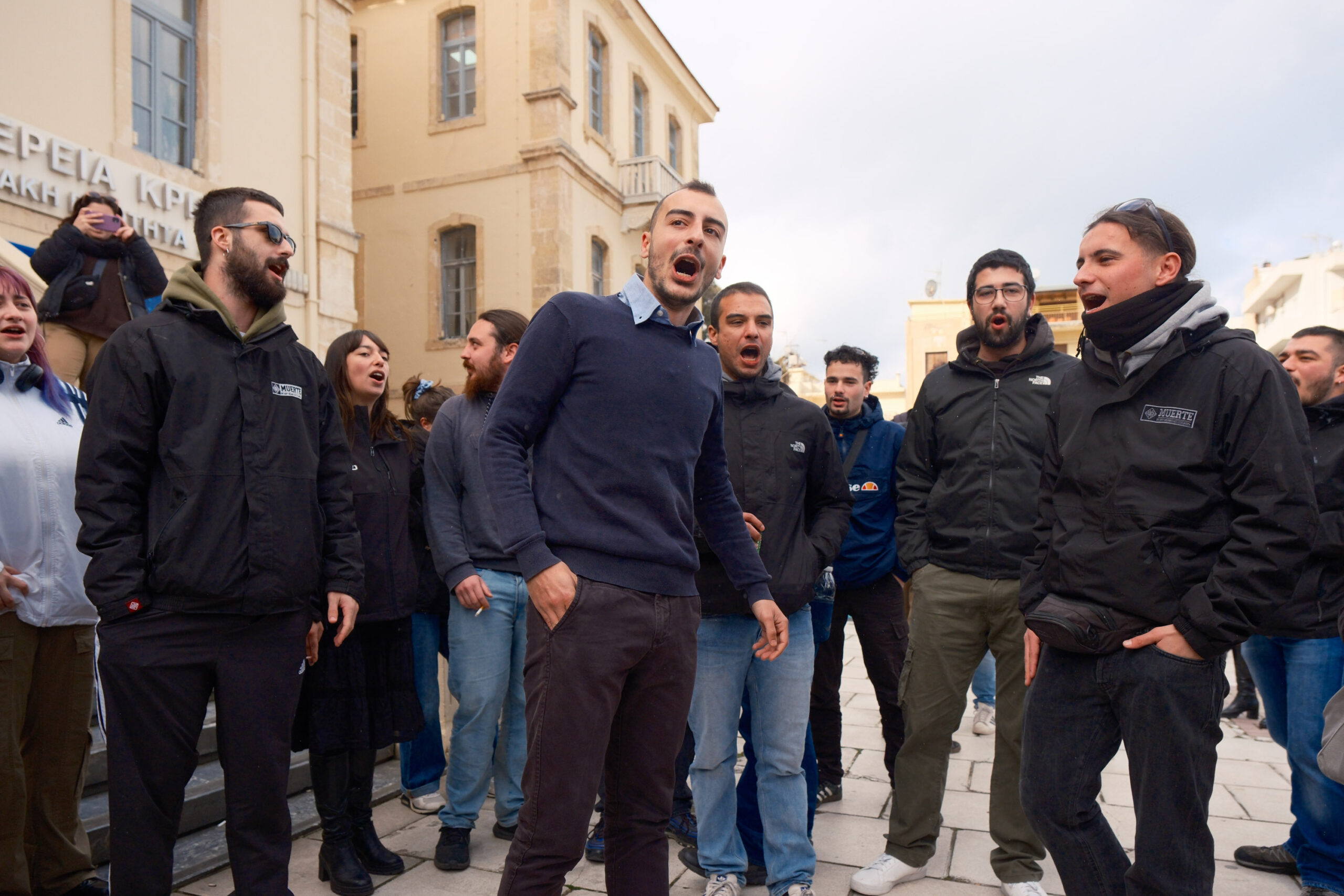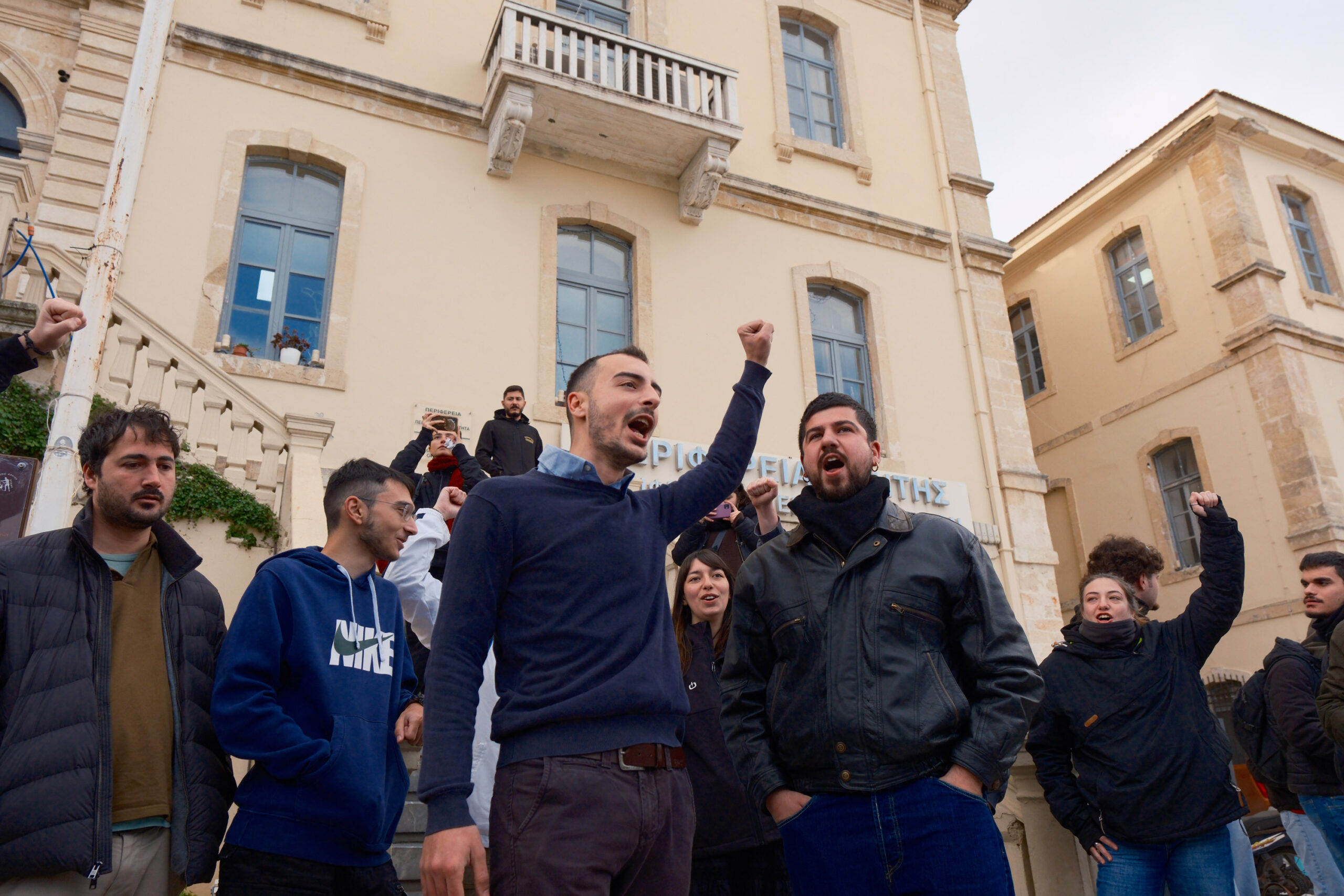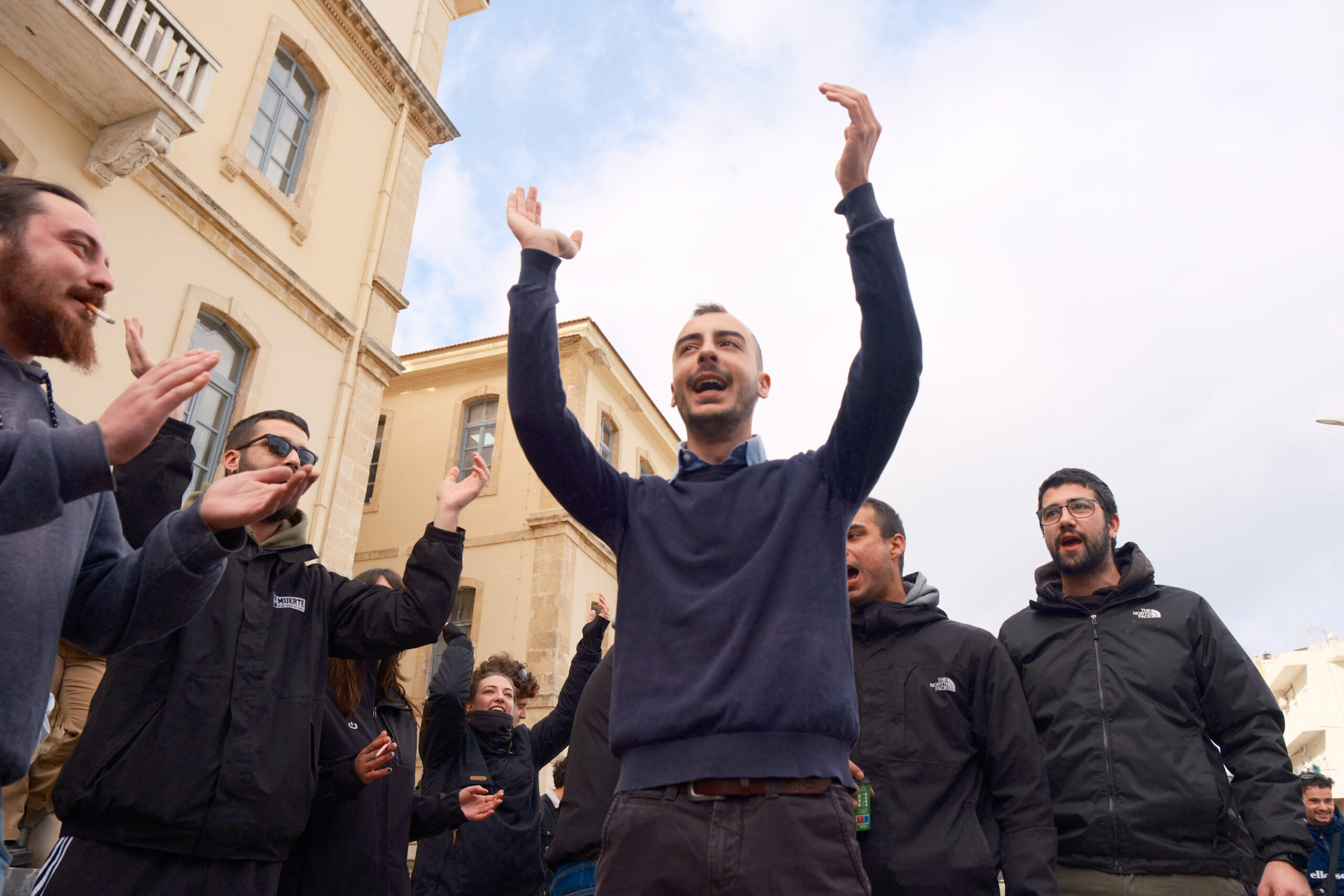 Στις αγκαλιές των συμφοιτητών και συντρόφων του έπεσε ο Αντιπρόεδρος του Ενιαίου Φοιτητικού Συλλόγου του Πολυτεχνείου Κρήτης μετά την πανηγυρική αθώωσή του σήμερα στα Δικαστήρια Χανίων.