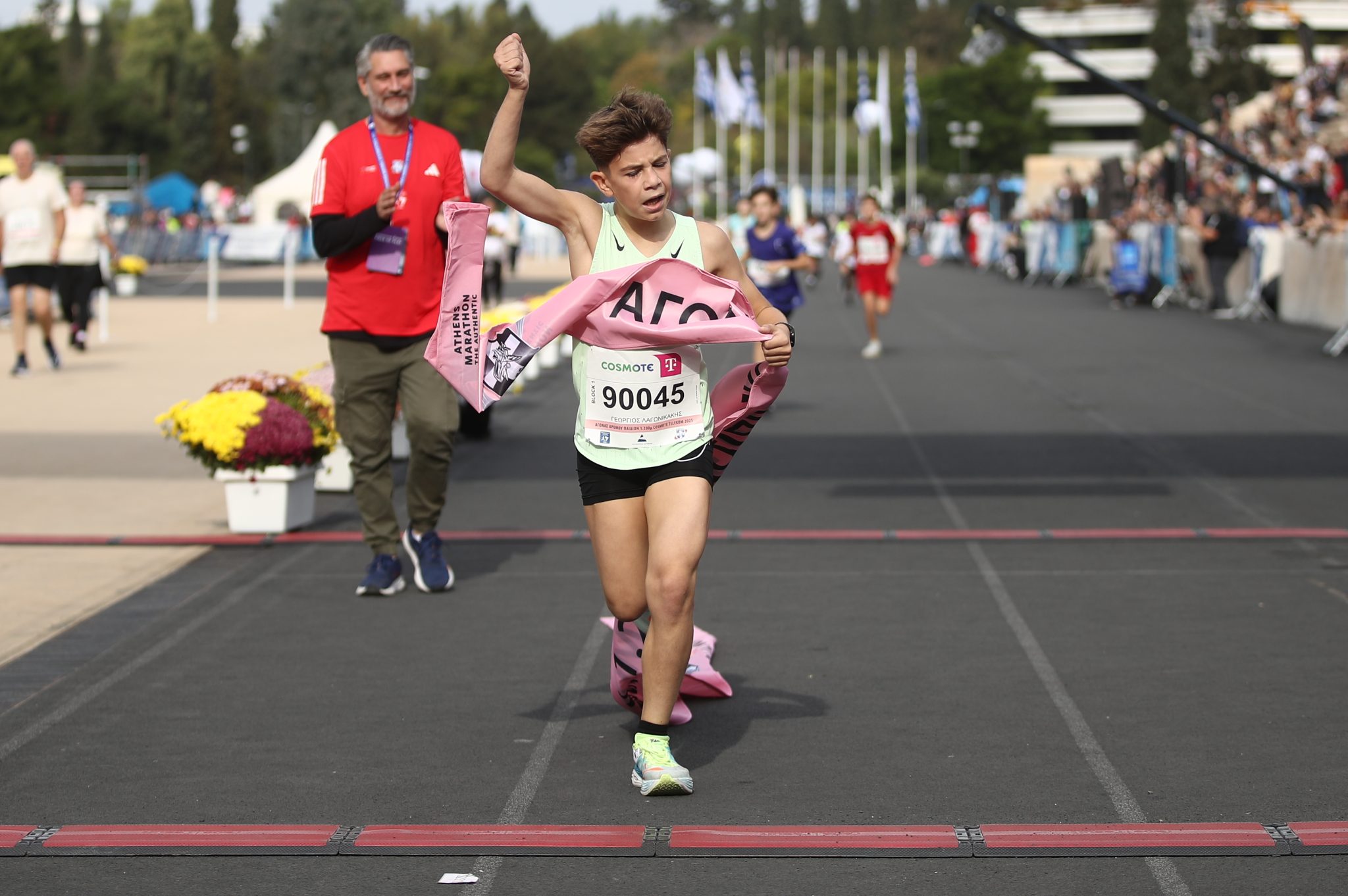 Ο πρώτος που τερμάτισε, μαθητής δημοτικού, μίλησε για την εμπειρία του: «Ήταν πολύ ωραία! Το έχω ξανακάνει άλλη μια φορά. Ήρθαν οι γονείς μου από την Κρήτη να με δουν!»