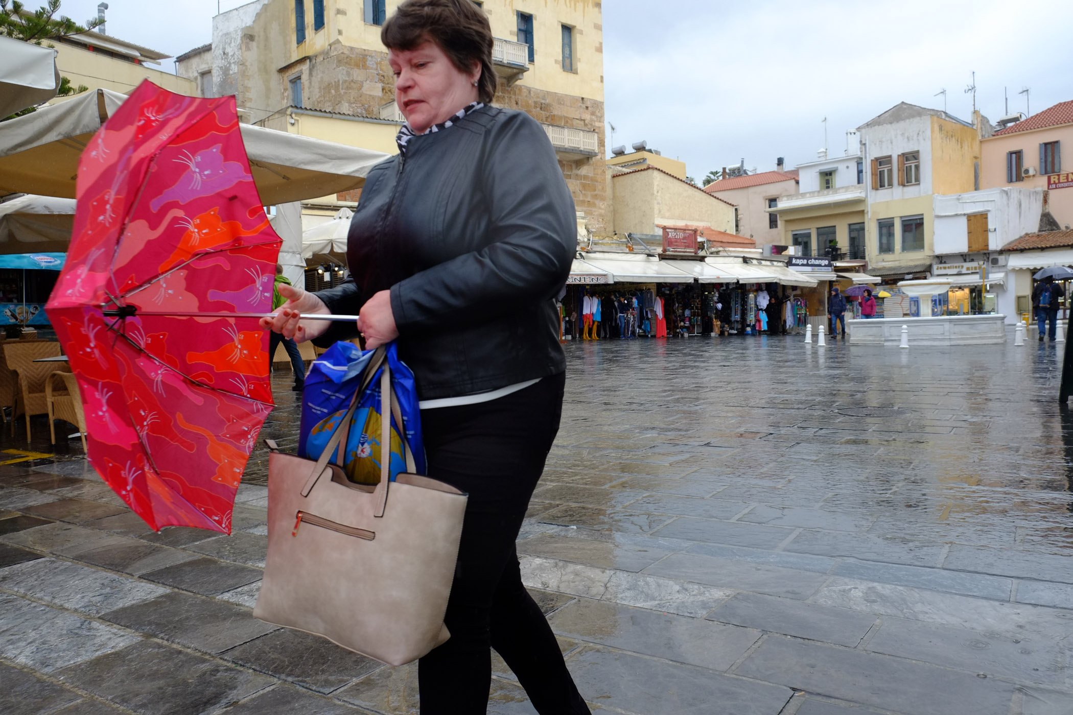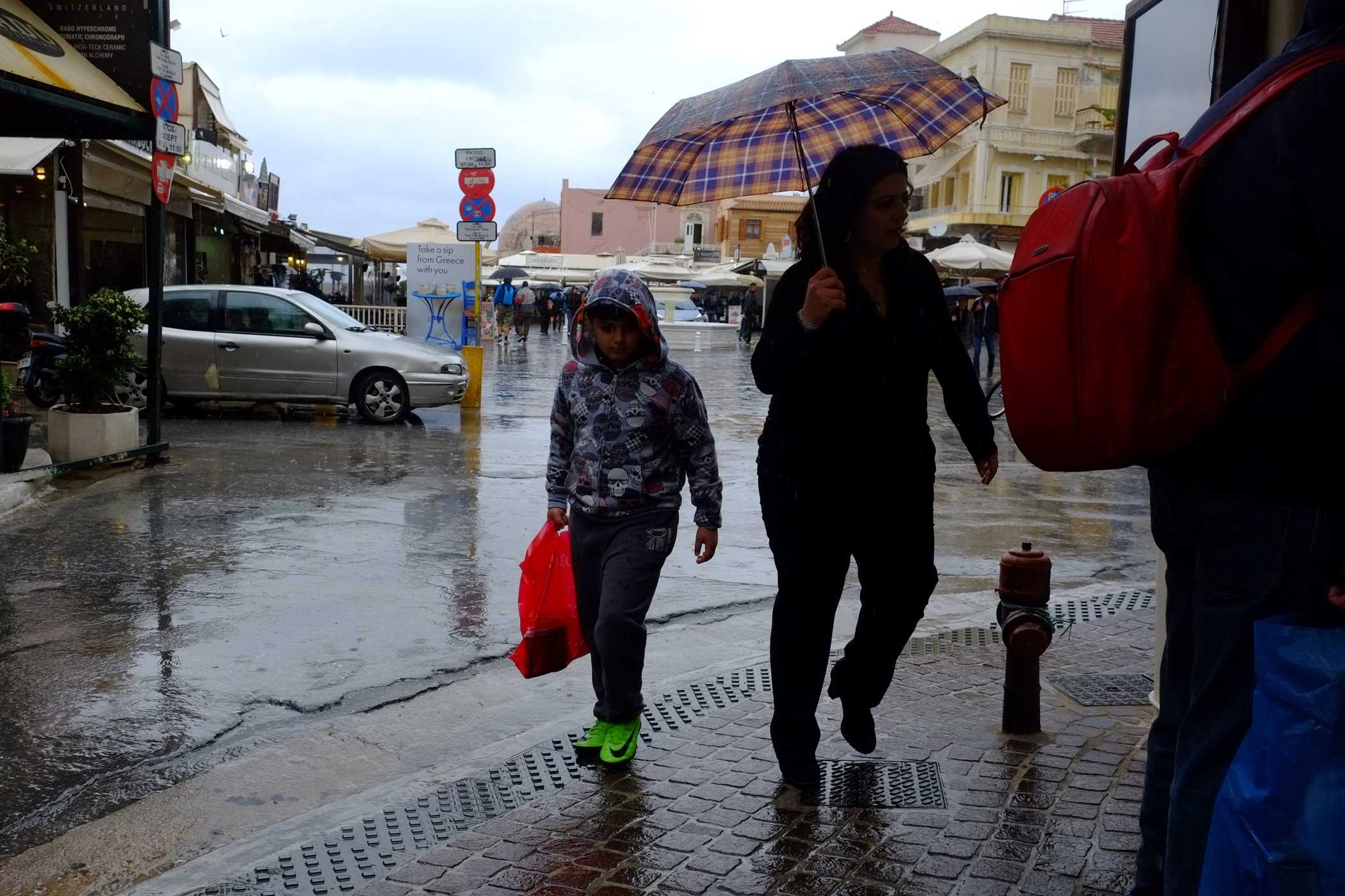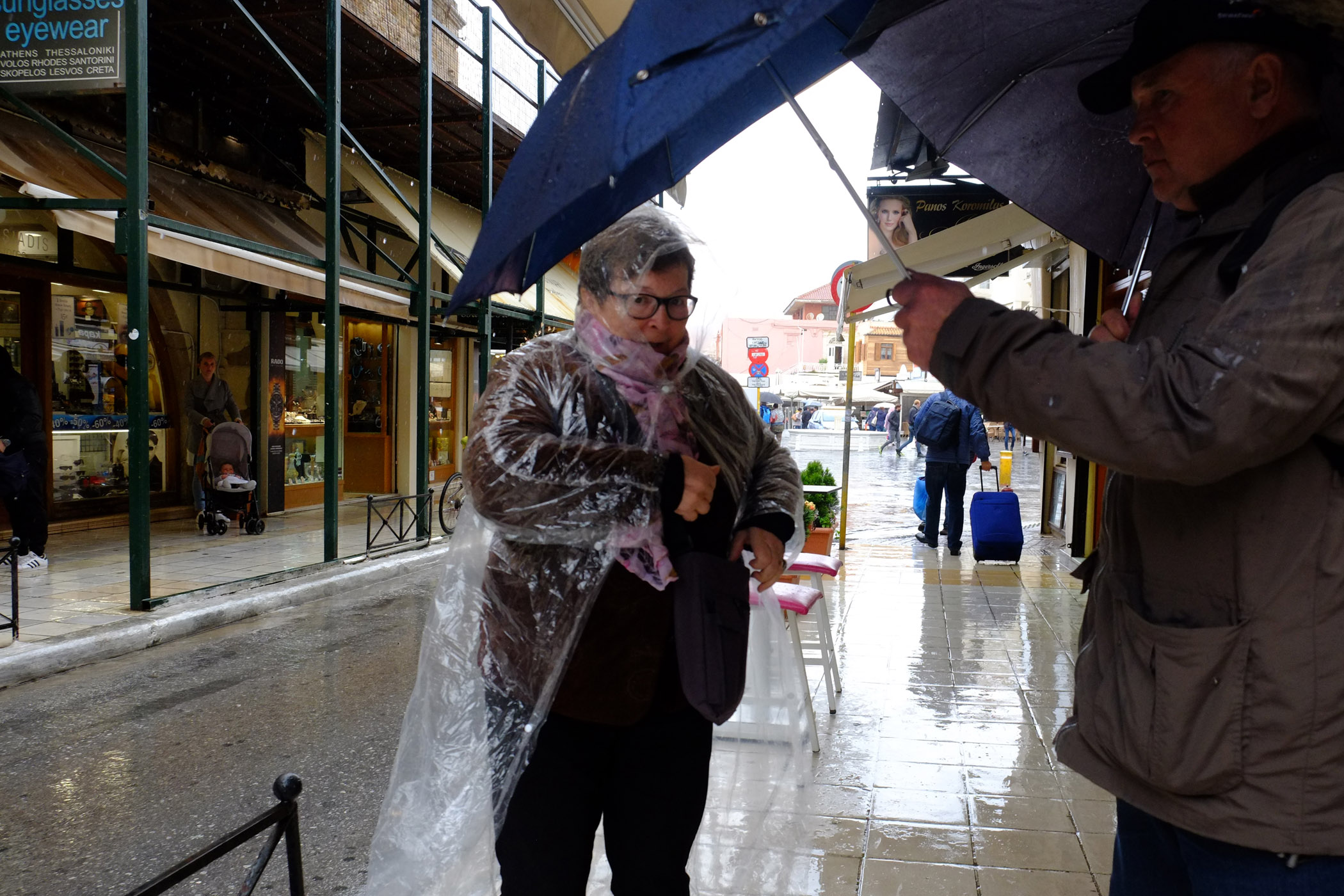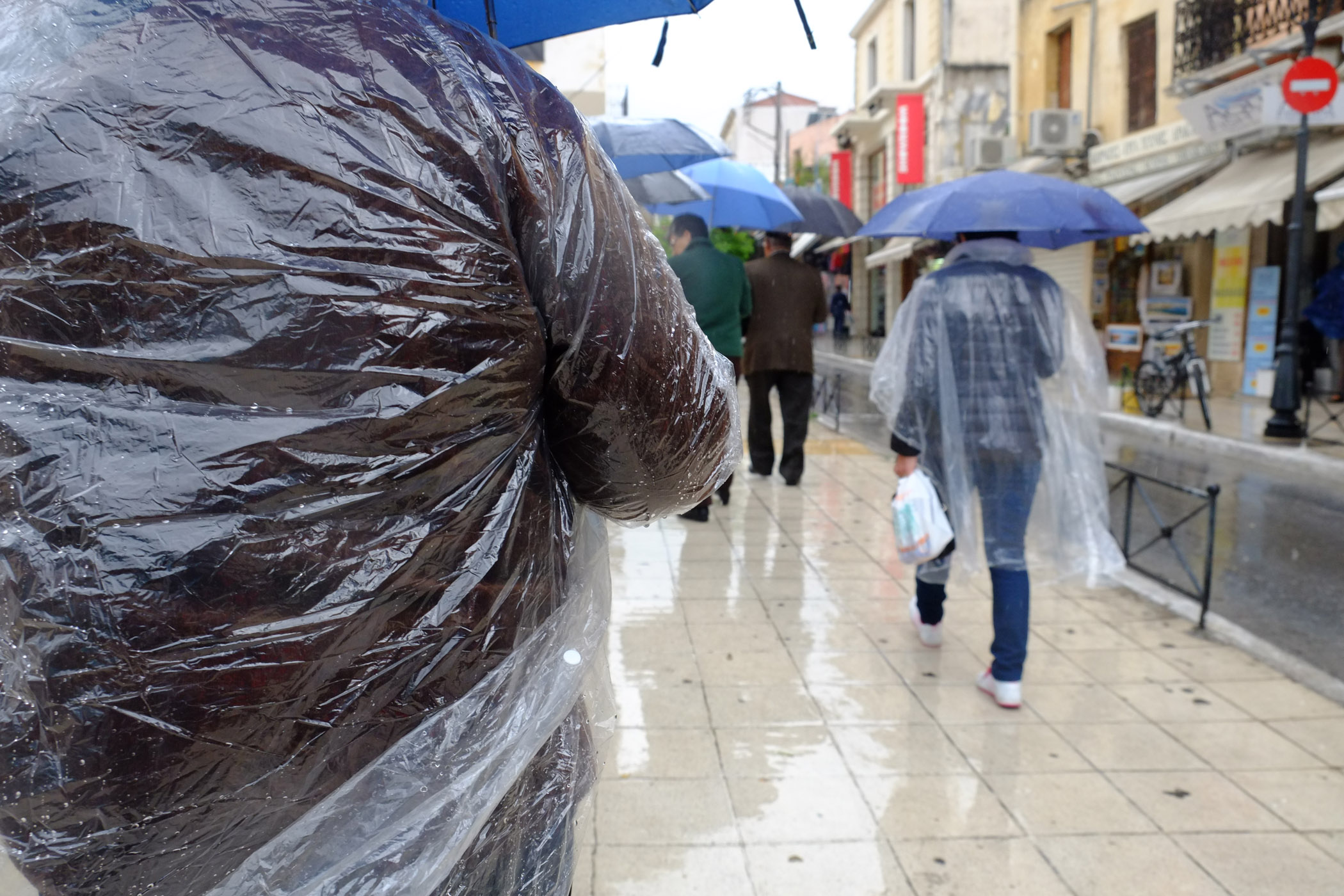 Χαρακτηριστικές είναι και οι εικόνες που καταγράψαμε από κεντρικούς δρόμους των Χανίων, με τους ανθρώπους να φοράνε αδιάβροχα και να κρατούν ομπρέλες.