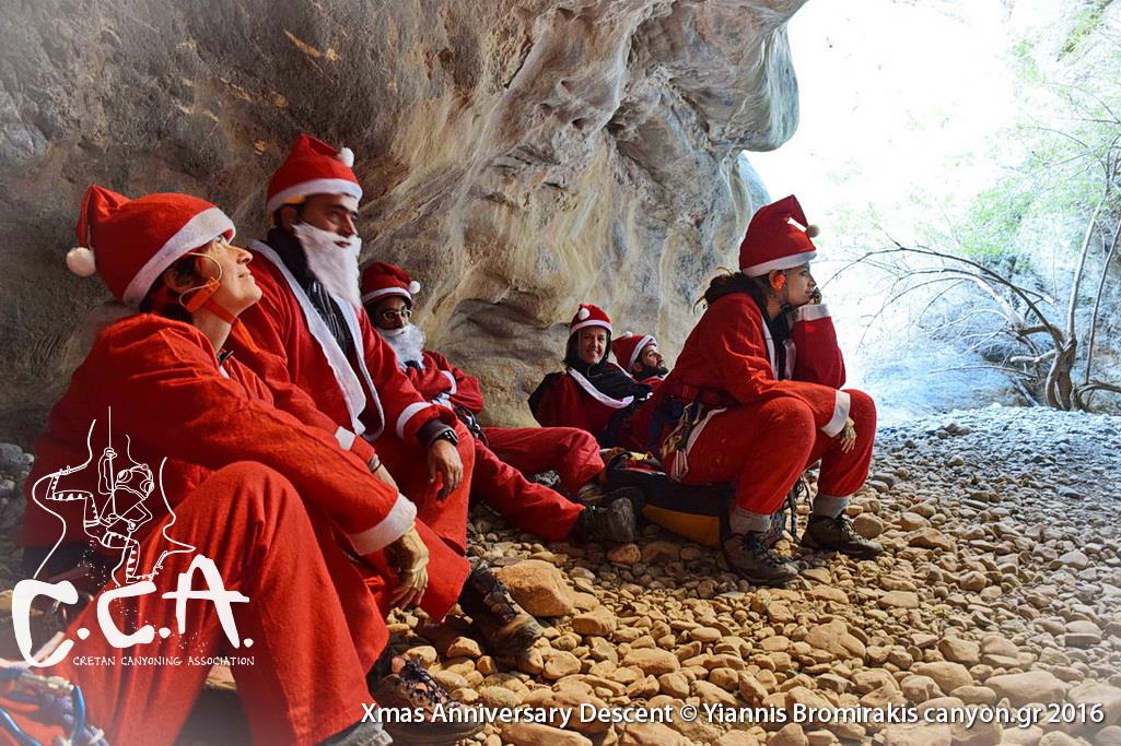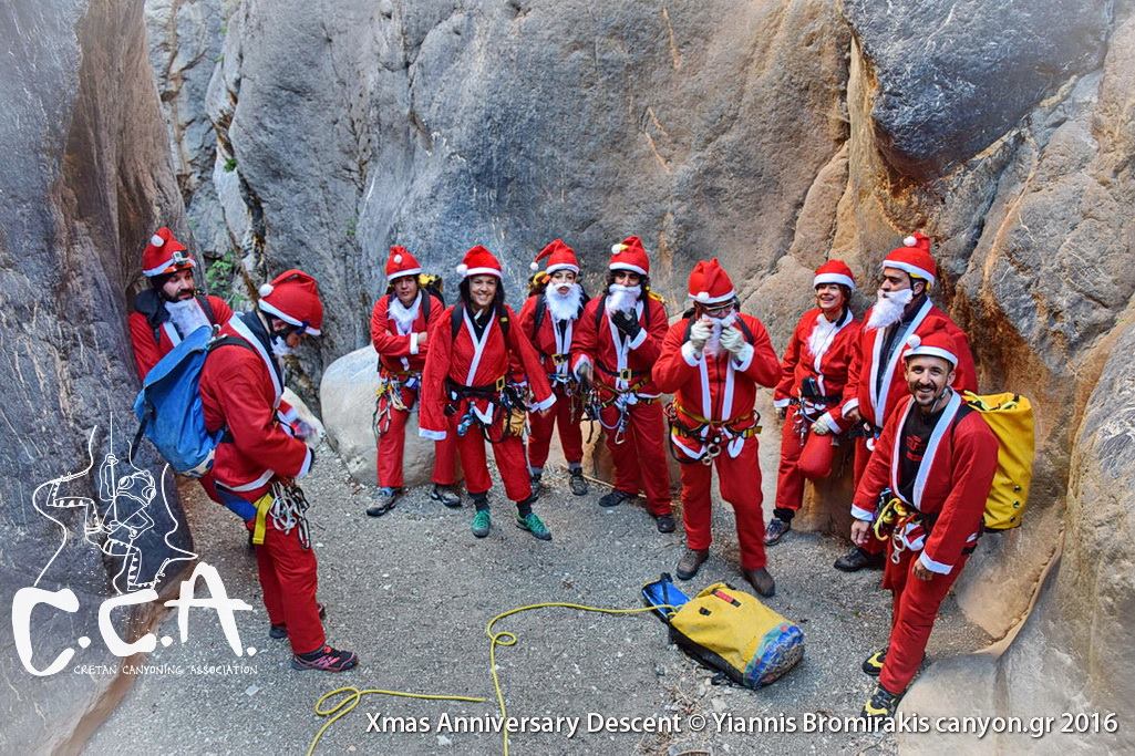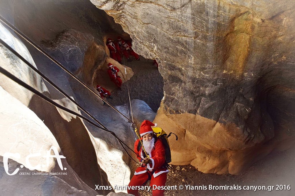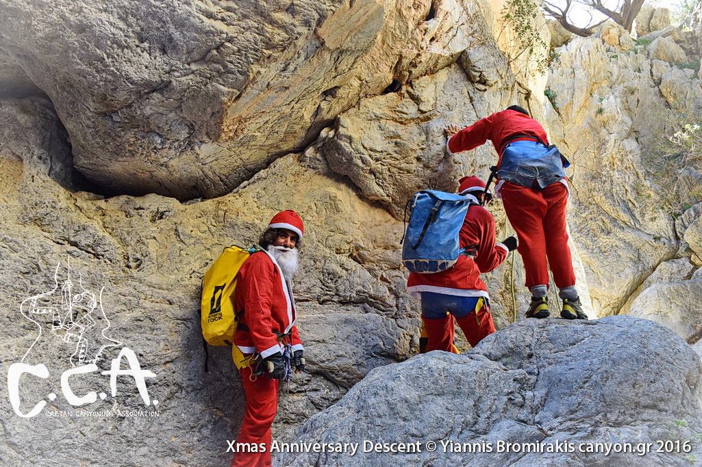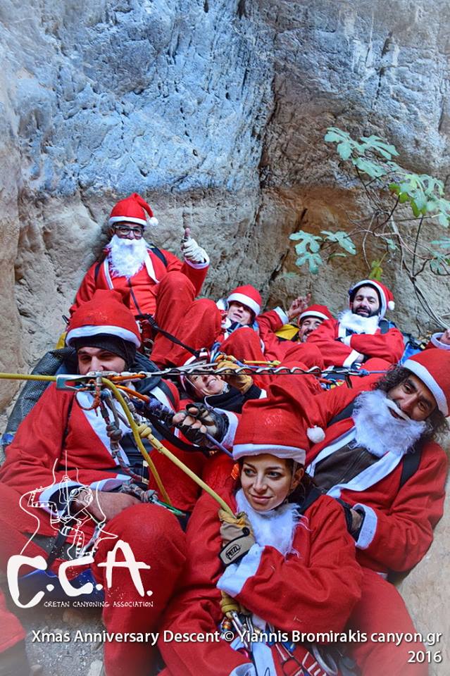 Με γιορτινή διάθεση και τη στολή του Άγιου Βασίλη, 12 μέλη του ομίλου πραγματοποίησαν τεχνική κατάβαση του φαραγγιού.