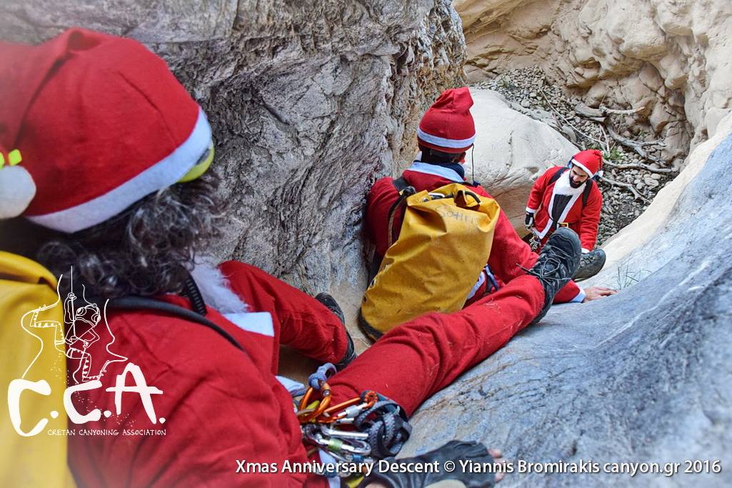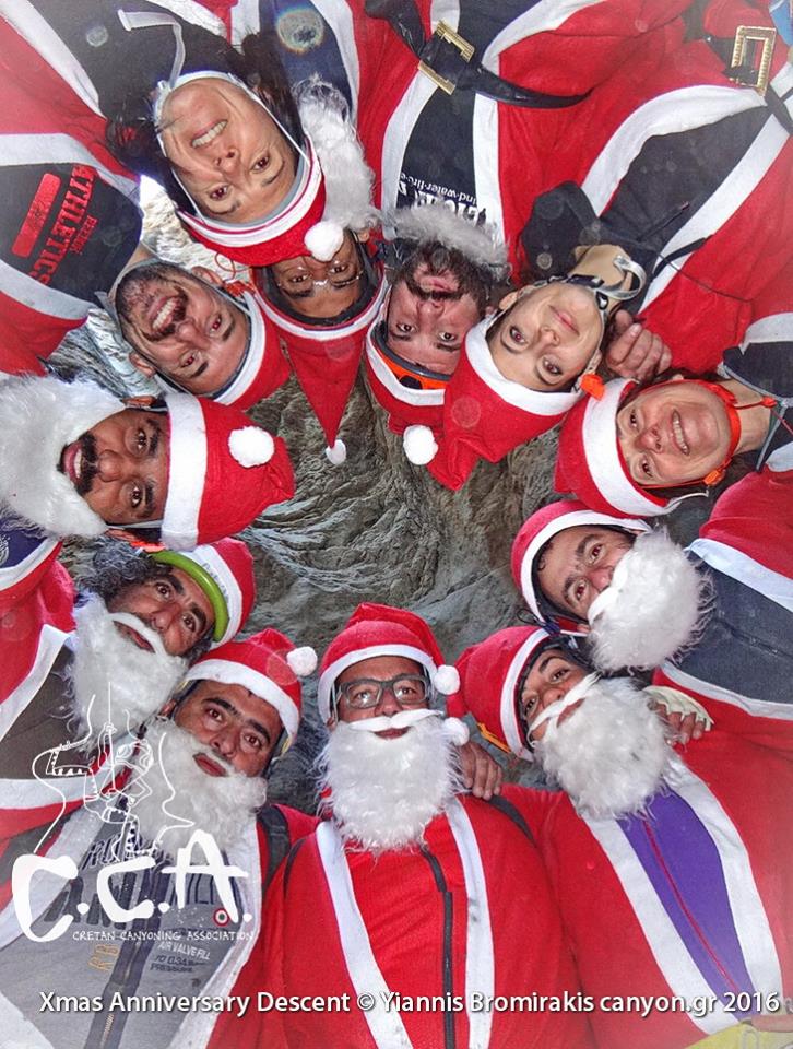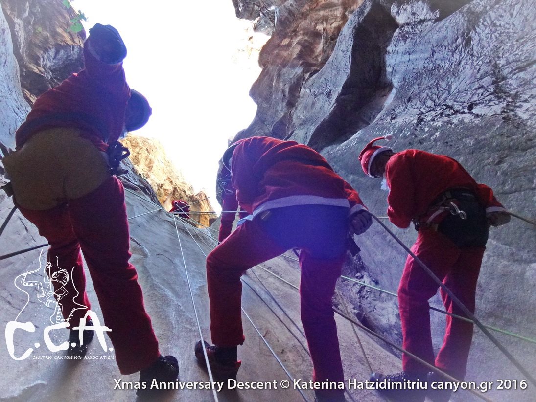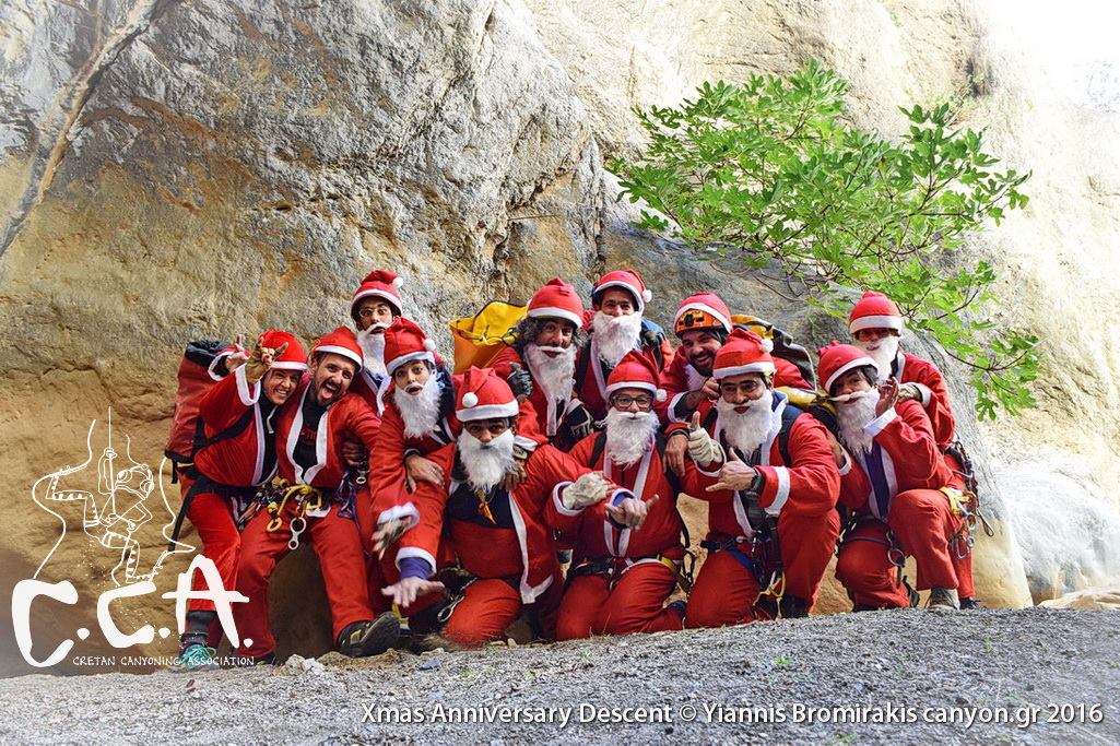 Με γιορτινή διάθεση και τη στολή του Άγιου Βασίλη, 12 μέλη του ομίλου πραγματοποίησαν τεχνική κατάβαση του φαραγγιού.