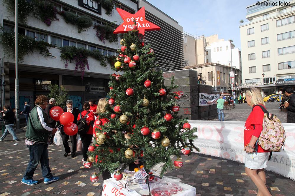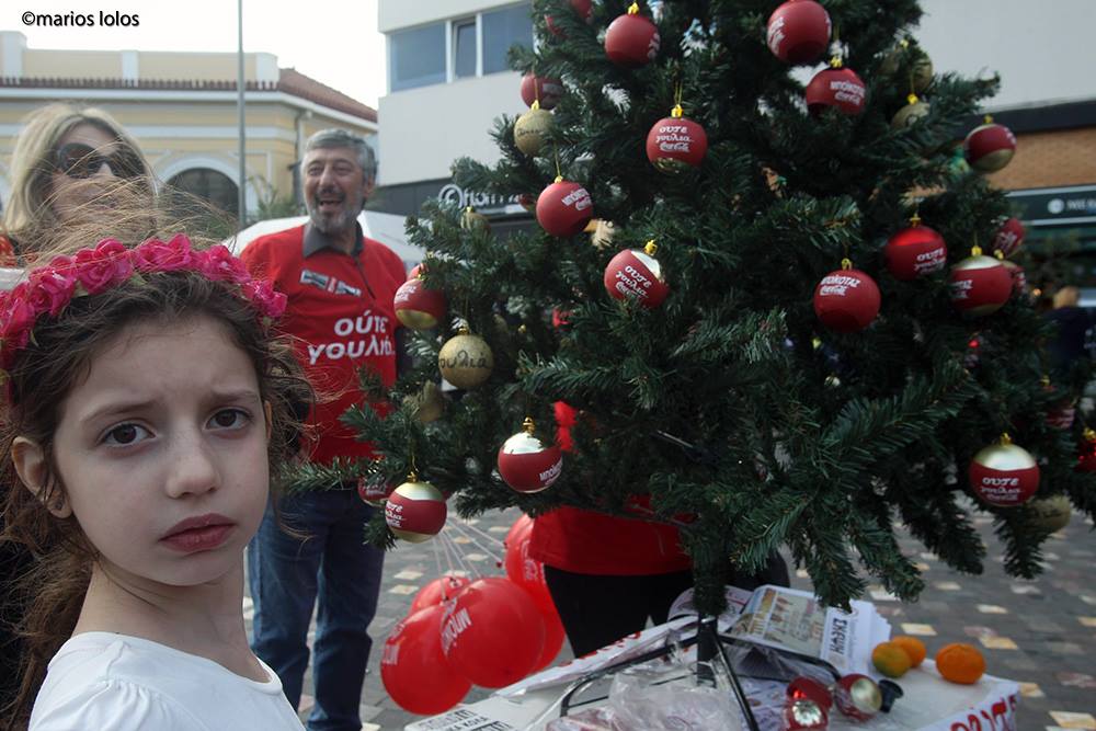 Η Ένωση Γυναικών Εμφιαλωμένων Ποτών Μακεδονίας-Θράκης στόλισε το χριστουγεννιάτικο δέντρο γεμάτο κόκκινες μπάλες που έγραφαν “Μποϊκοτάζ”. Αυτό έγινε στο πλαίσιο δραστηριοτήτων για την ενημέρωση του καταναλωτικού κοινού όλης της Ελλάδας για την απεργία στην Coca Cola Θεσσαλονίκης. Μαζί τους και αλληλέγγυοι όπου στηρίζουν τον αγώνα τους.