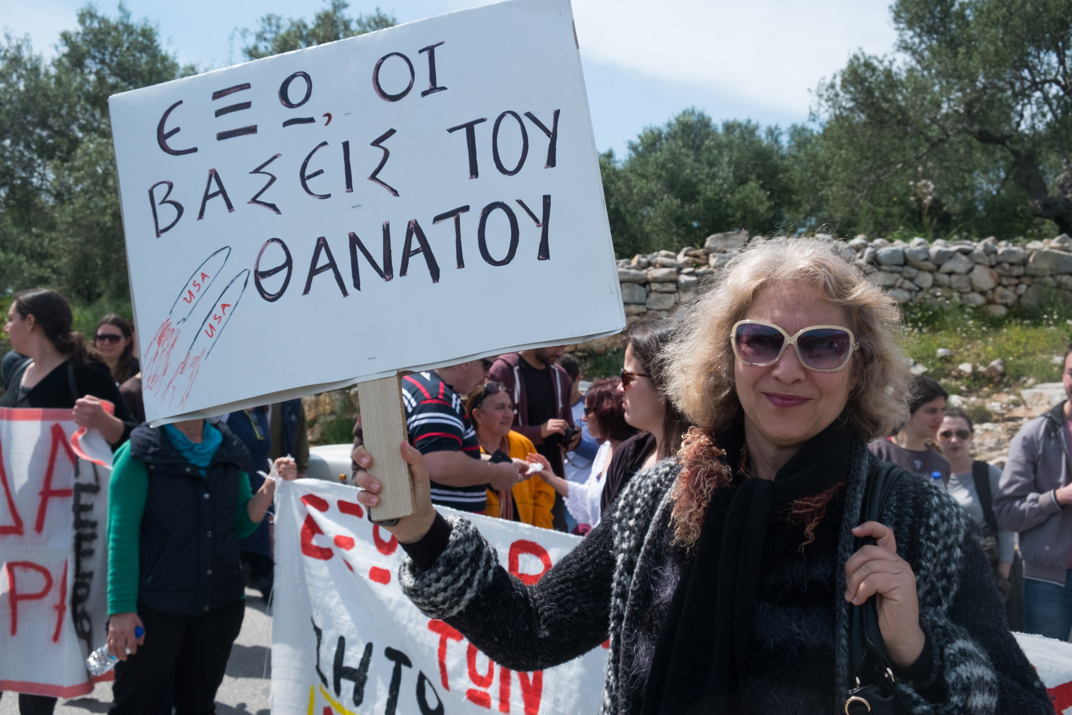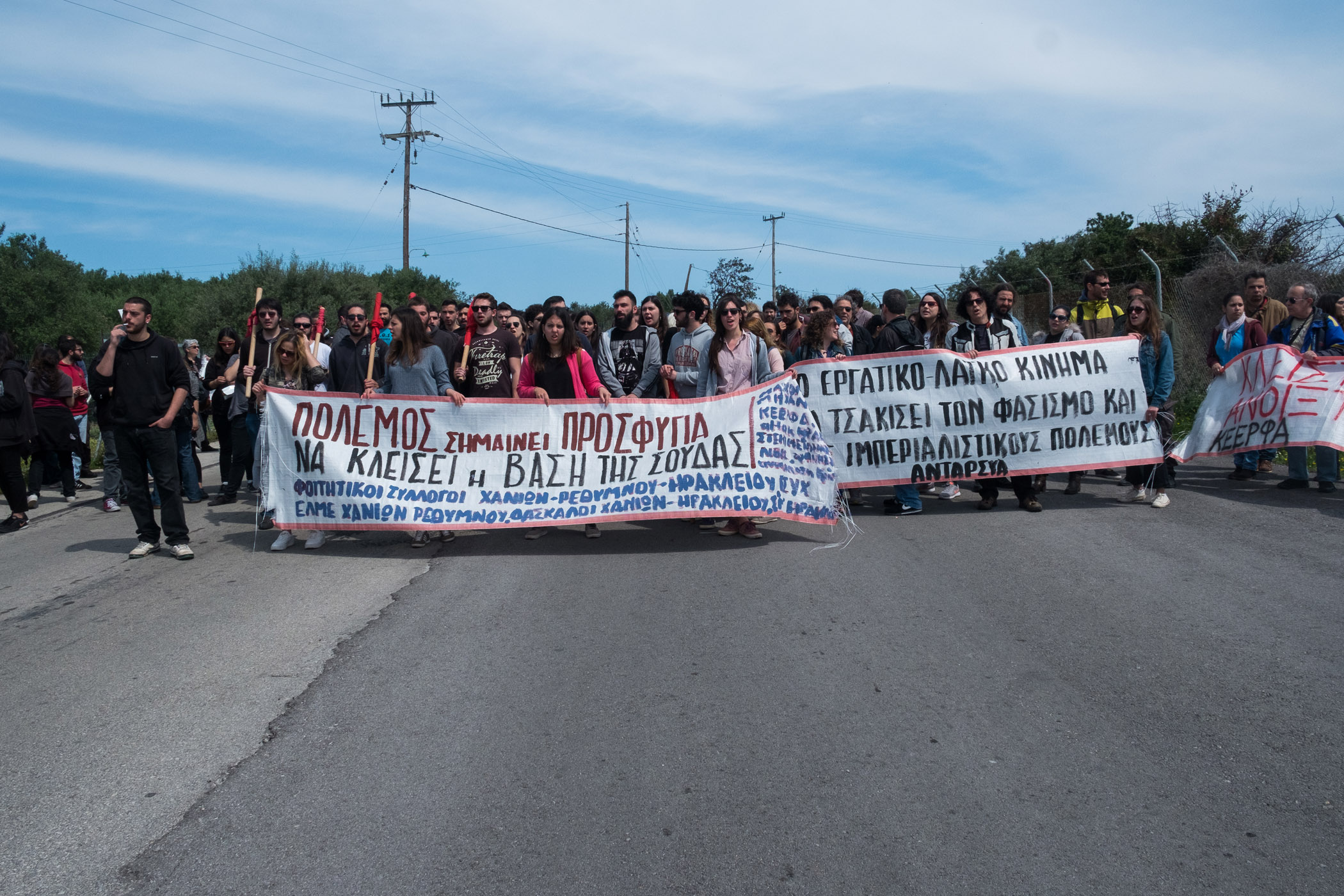 Νομίζουμε ότι πρέπει να αναδείξουμε αυτή την αντίφαση που υπάρχει σε αυτό τον τόπο, δηλαδή από τη μία να έχουμε πρόσφυγες – μετανάστες από εμπόλεμες περιοχές τους οποίους κλάδοι , όπως οι ξενοδόχοι, λένε ξεκάθαρα ότι δε τους θέλουνε, και από την άλλη έχουμε τους φονιάδες που κάνουν τους πολέμους που είναι για κάποιους καλοδεχούμενοι. Δεν πρέπει να ξεχνάμε, ότι οι αμερικάνικες βάσεις παίζουν σημαντικό ρόλο σε κάθε πόλεμο.”
