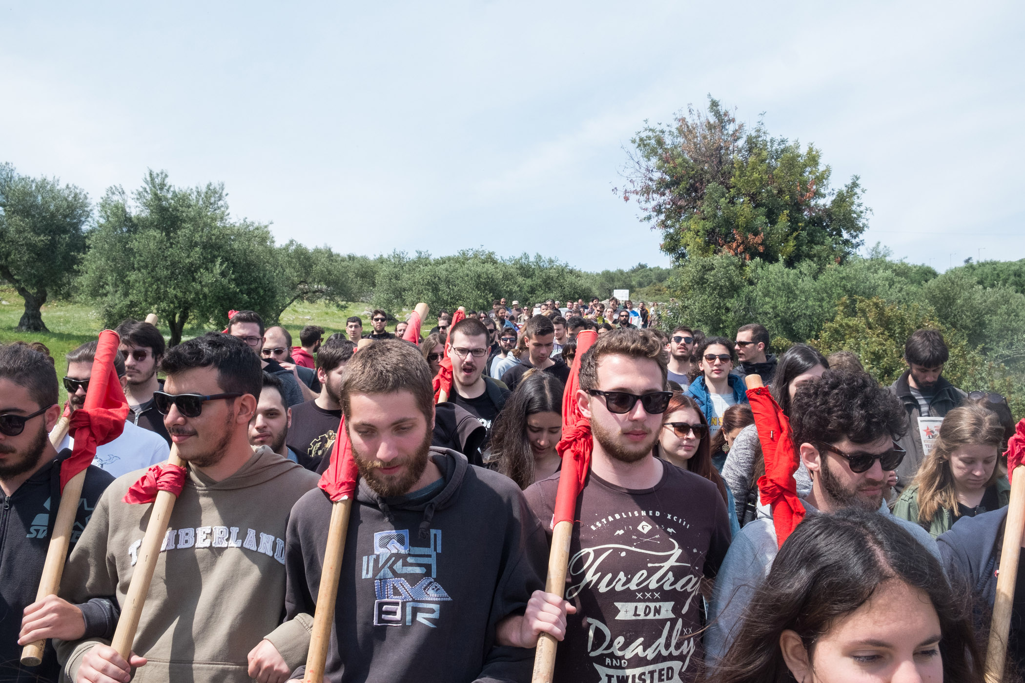 Η πορεία ξεκίνησε περίπου στις 11.30 το πρωί. Η πλειοψηφία των διαδηλωτών ήταν φοιτητές που συμμετείχαν στο διήμερο 16ο Αντιπολεμικό Φεστιβάλ που πραγματοποιήθηκε στο Πάρκο Ειρήνης και Φιλίας, όμως δεν απουσίαζαν και εκπρόσωποι φορέων.