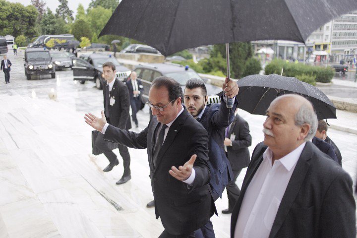 Το ενδιαφέρον είναι ότι όπου πηγαίνει ο Γάλλος Πρόεδρος βρέχει.