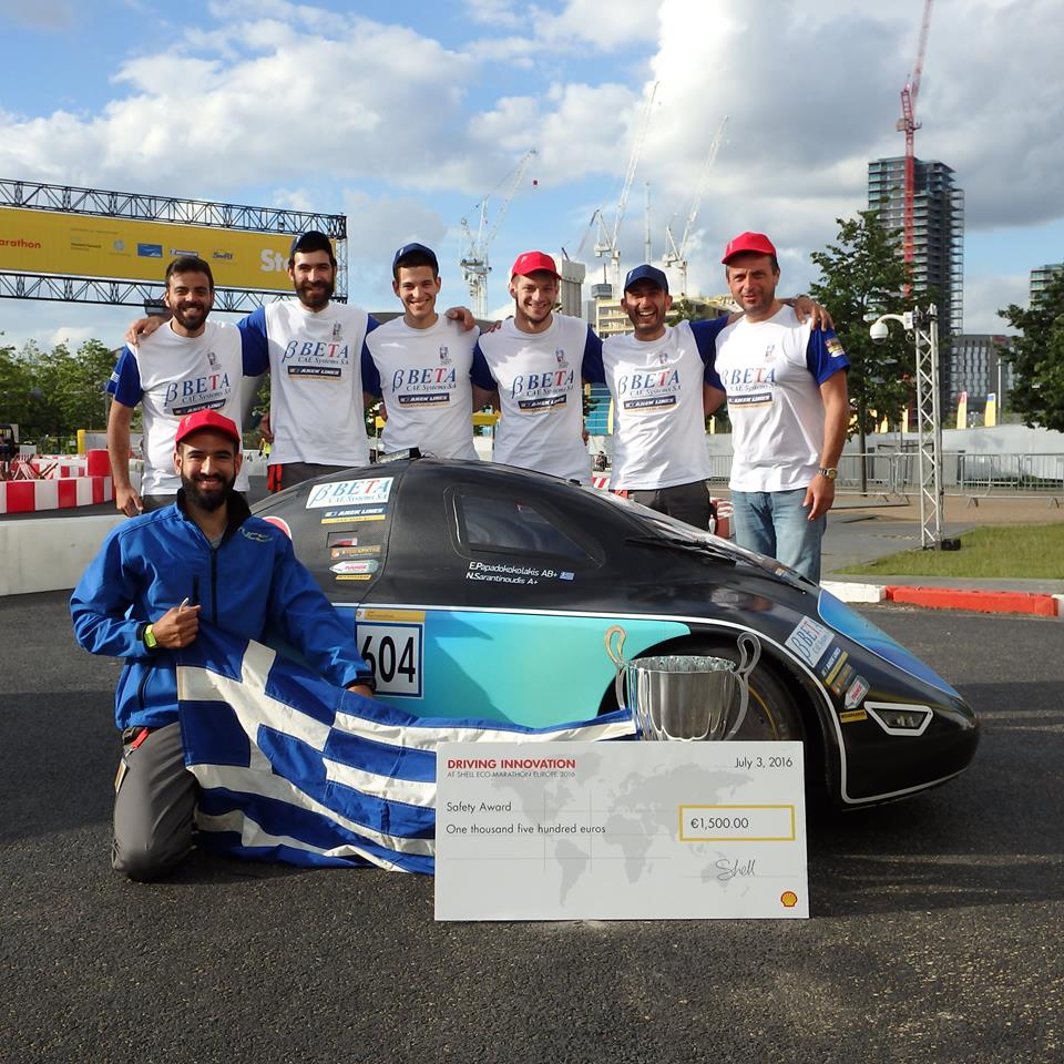 Η ομάδα, από τη Σχολή Μηχανικών Παραγωγής & Διοίκησης του Πολυτεχνείου Κρήτης, µε το εξελιγμένο όχημα πόλης Σπύρος Λούης, κέρδισε το 1ο Βραβείο Ασφάλειας Οχημάτων (Safety Award) στο διαγωνισμό που πραγματοποιήθηκε στο Λονδίνο!