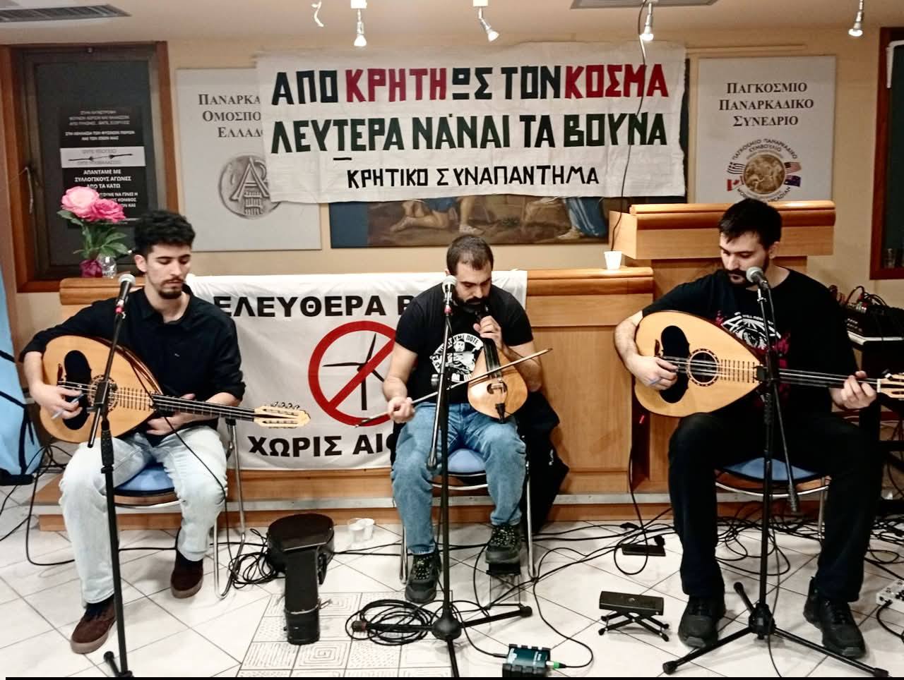 Με μαζική συμμετοχή, έντονο παλμό και βαθιά συγκίνηση πραγματοποιήθηκε το 1ο Κρητικό Συναπάντημα, ένα πλατύ αγωνιστικό αντάμωμα κινημάτων, συλλογικοτήτων και αγωνιζόμενων ανθρώπων από την Κρήτη και την Αθήνα. Ο χώρος της εκδήλωσης γέμισε ασφυκτικά από κόσμο που δεν αποδέχεται την καταστροφή που προωθείται στο νησί στο όνομα της λεγόμενης «ανάπτυξης», από ανθρώπους που υπερασπίζονται τα βουνά, τις θάλασσες, τις πεδιάδες, τα χωριά και την ίδια τη ζωή τους.