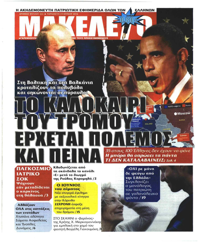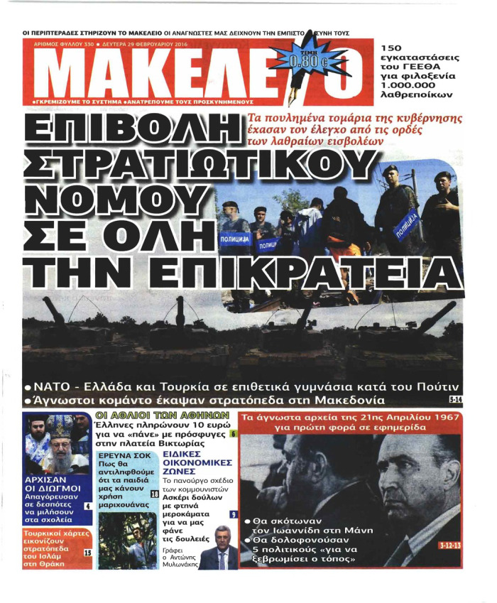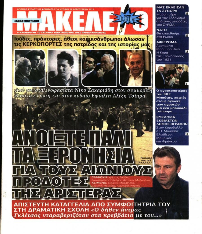 Στην περίπτωση που μέχρι να διαβάσετε αυτές τις γραμμές, ο γνωστός δημοσιολόγος με το 12ο σε επισκεψιμότητα site της Ελλάδας, δεν έχει βγει ακόμα από τα μπουντρούμια όπου τον χώσανε, μπορείτε παρακάτω να απολαύσετε μερικά παλιότερα πρωτοσέλιδα, για να πάρετε μια γεύση από το τι δε θα σας λείψει μέχρι αύριο:
