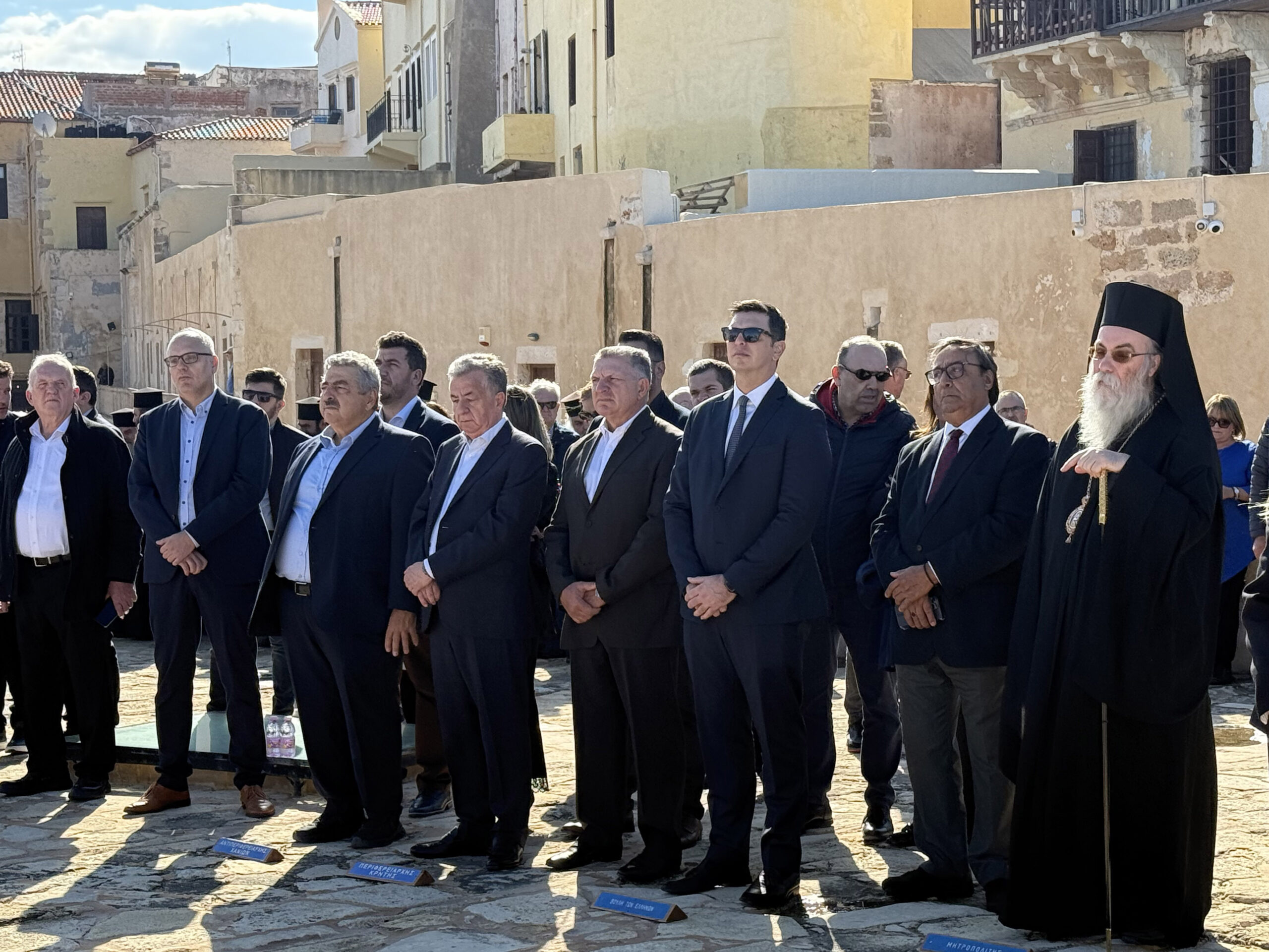 Η αρχή έγινε στον Ιερό Ναό των Εισοδίων της Θεοτόκου, όπου τελέστηκε Δοξολογία παρουσία των στρατιωτικών αρχών, εκπροσώπων των σωμάτων ασφαλείας, των βουλευτών της ΝΔ Σ. Βολουδάκη και Αλ. Μαρκογιαννάκη, του πολιτικού κόσμου και πλήθους πολιτών. Το παρών έδωσε και ο Περιφερειάρχης Κρήτης, Σταύρος Αρναουτάκης, αποτίοντας φόρο τιμής στους αγώνες για την εθνική ολοκλήρωση.