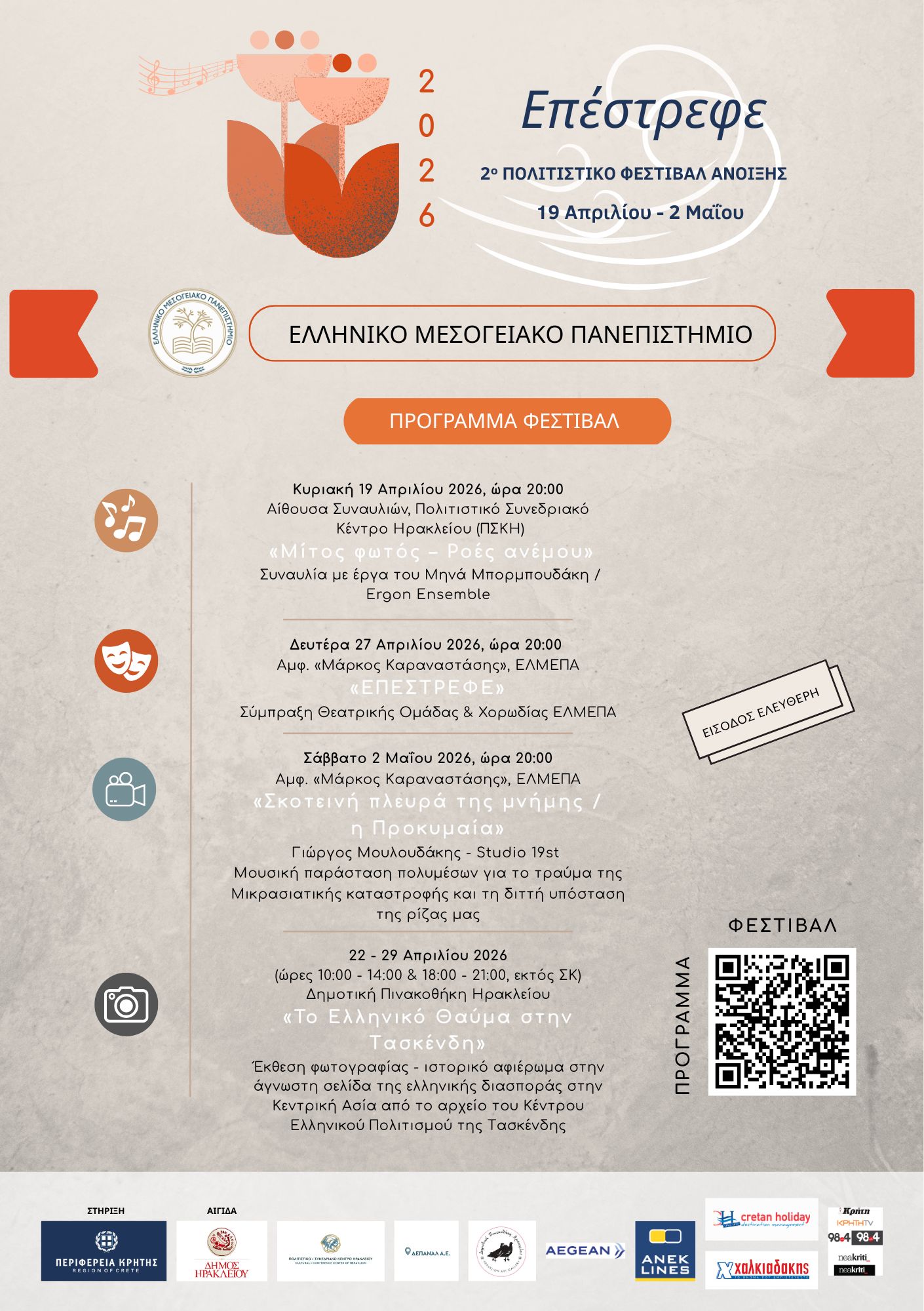 2ο Πολιτιστικό Φεστιβάλ Άνοιξης ΕΛΜΕΠΑ: «Επέστρεφε» στο Ηράκλειο από 19 Απριλίου έως 2 Μαΐου