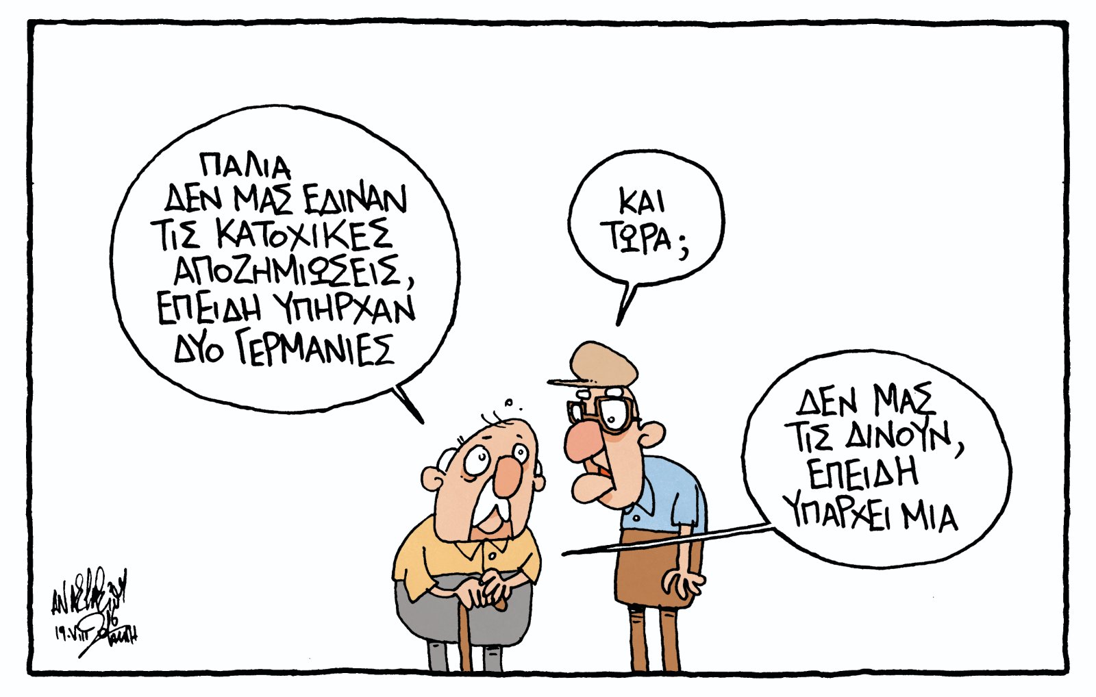 Ο ιστορικός και σκιτσογράφος Γιάννης Αντωνόπουλος αναλύει τις μεταπολεμικές ελληνογερμανικές σχέσεις, συνδέοντας το παρελθόν με το παρόν, μέσα από το πρίσμα της Ιστορίας και της πολιτικής συνείδησης.