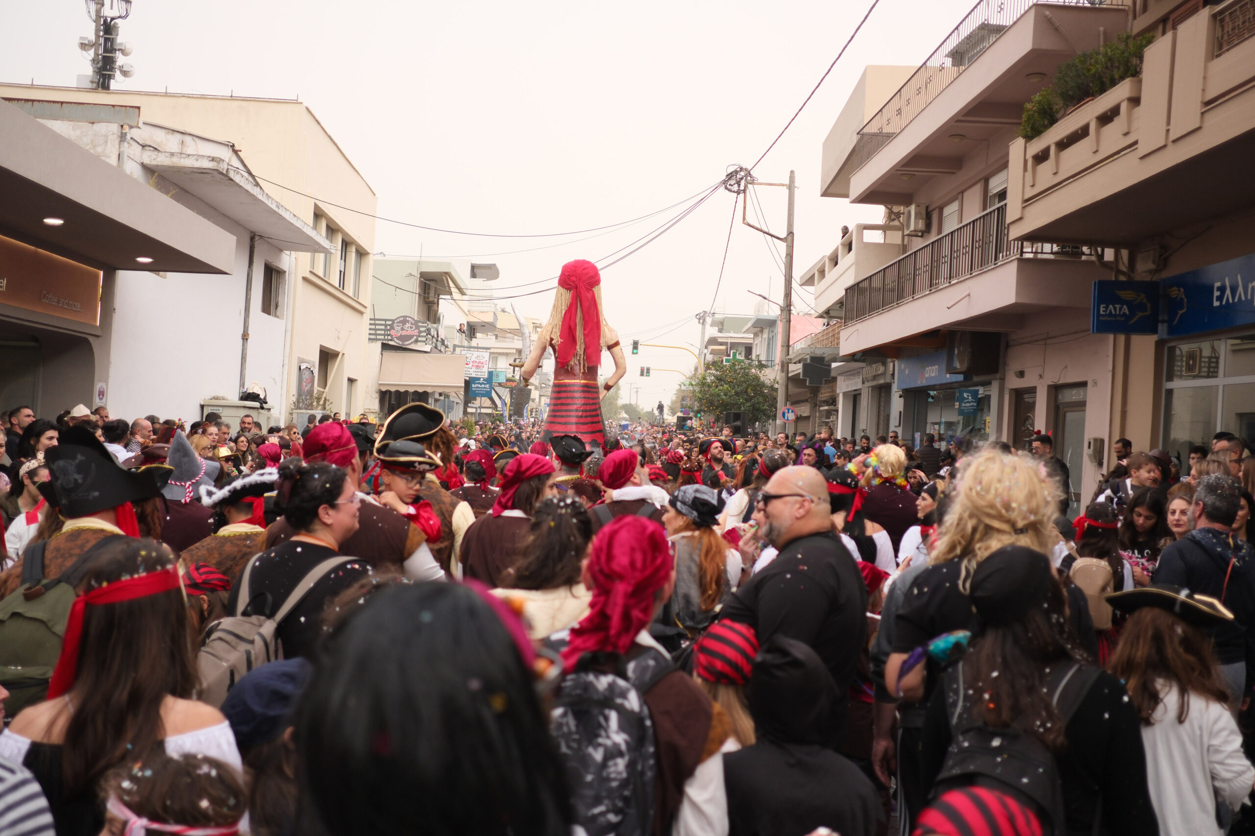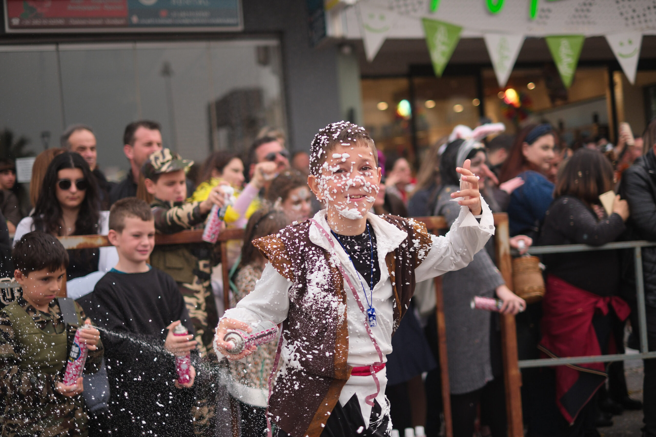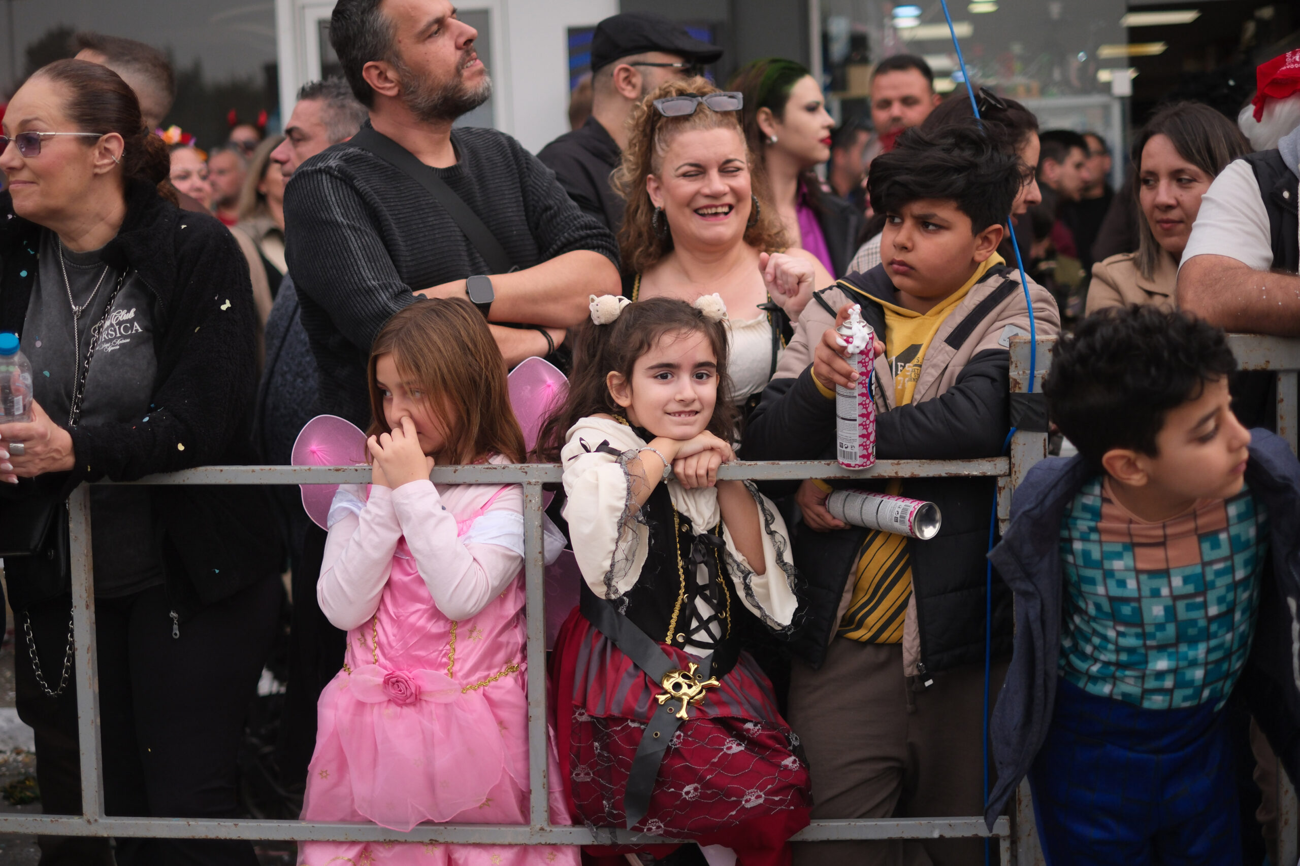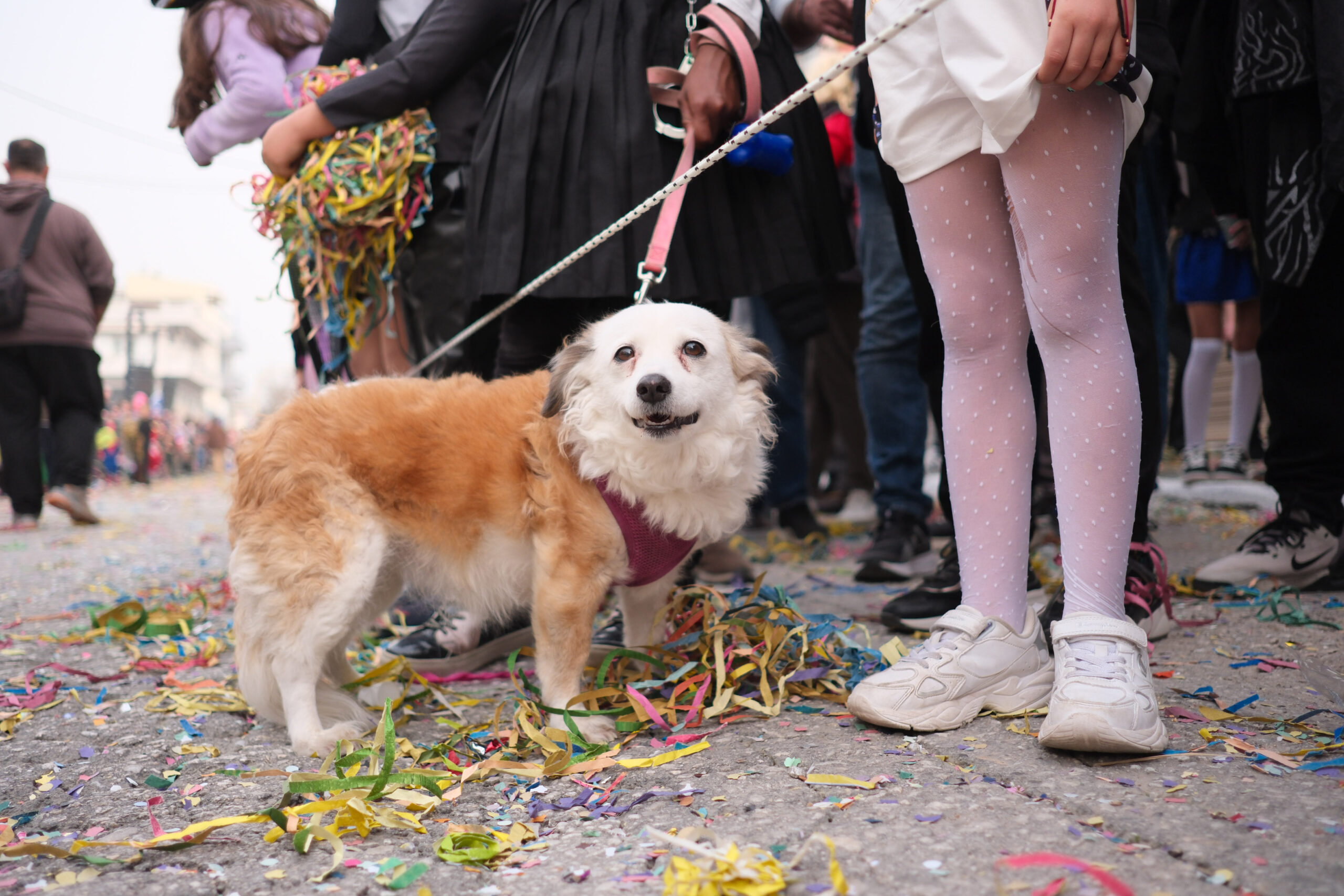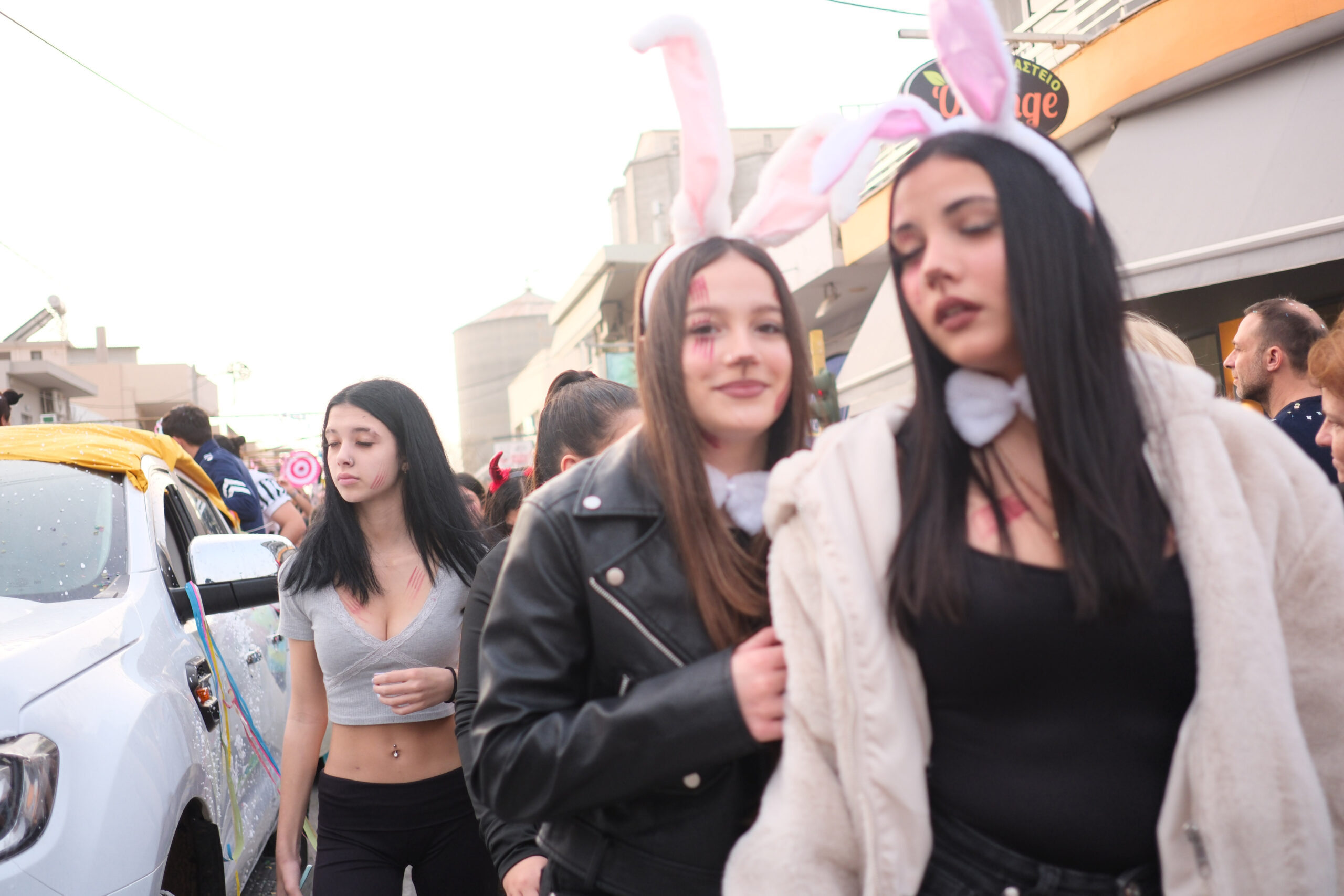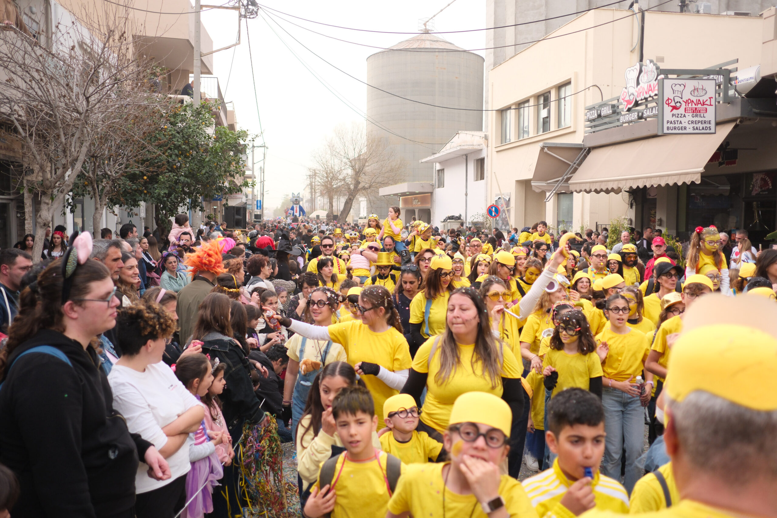 Το σκηνικό της παρέλασης συμπληρώθηκε από τα καθιερωμένα αποκριάτικα αξεσουάρ, με τις σερπαντίνες και τα κονφετί να δημιουργούν μια αίσθηση ατελείωτου πάρτι.