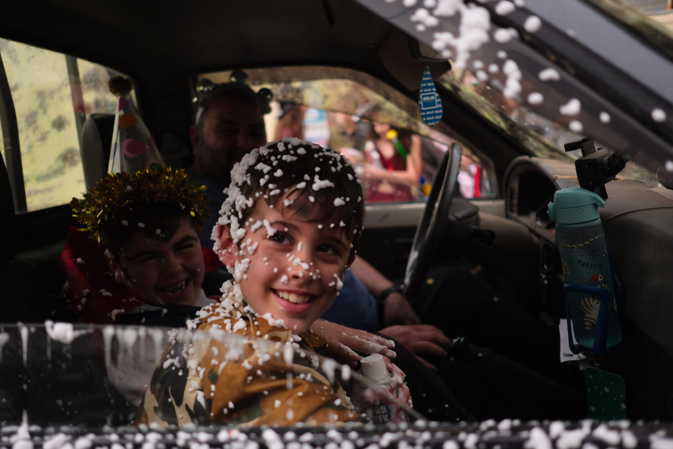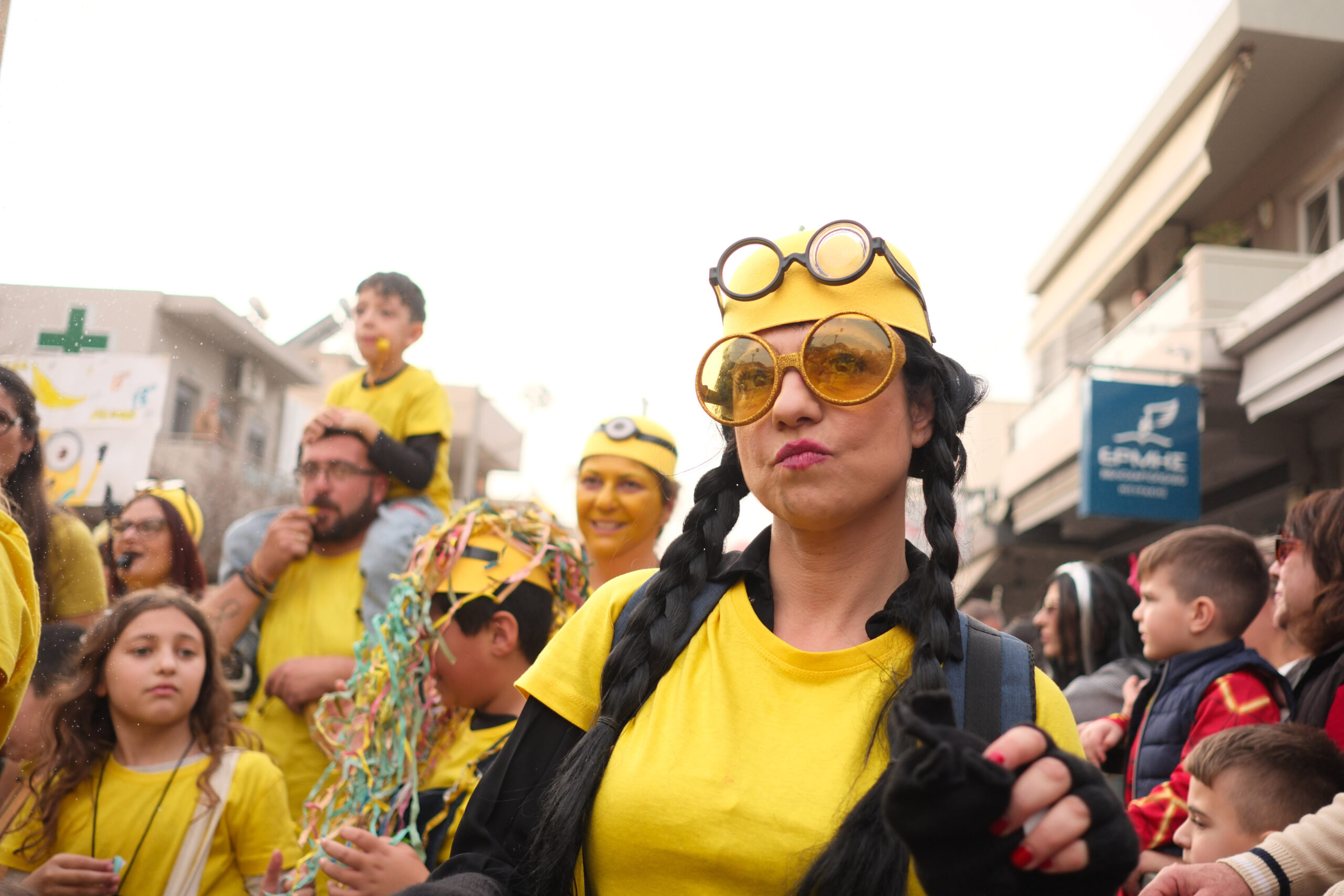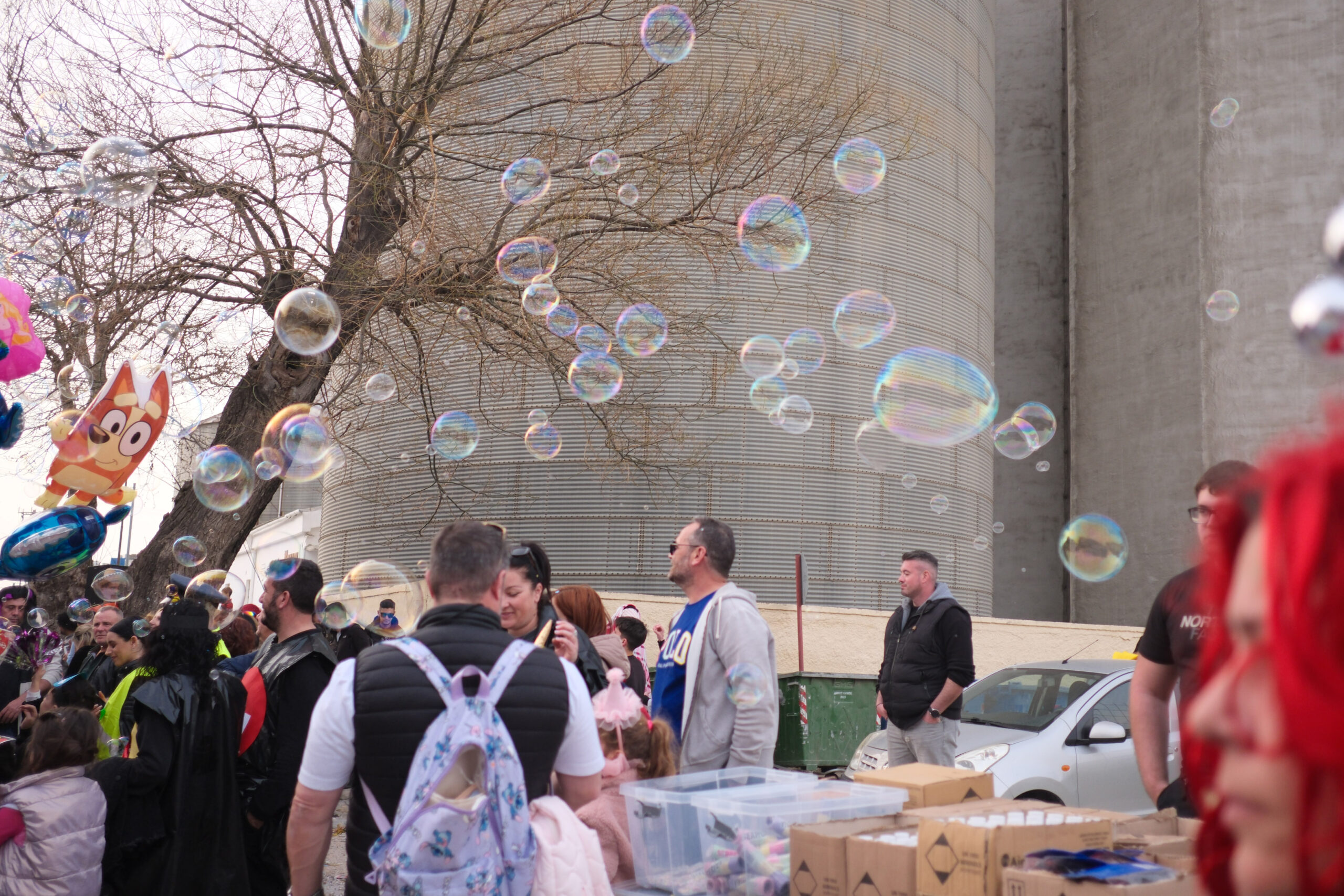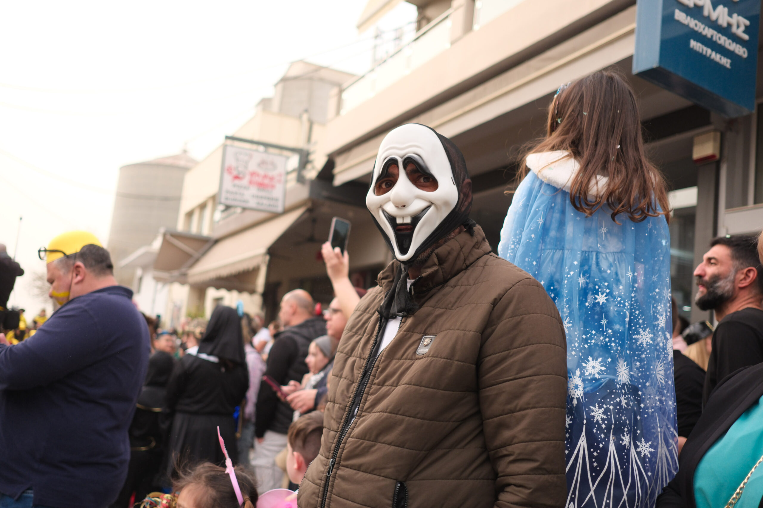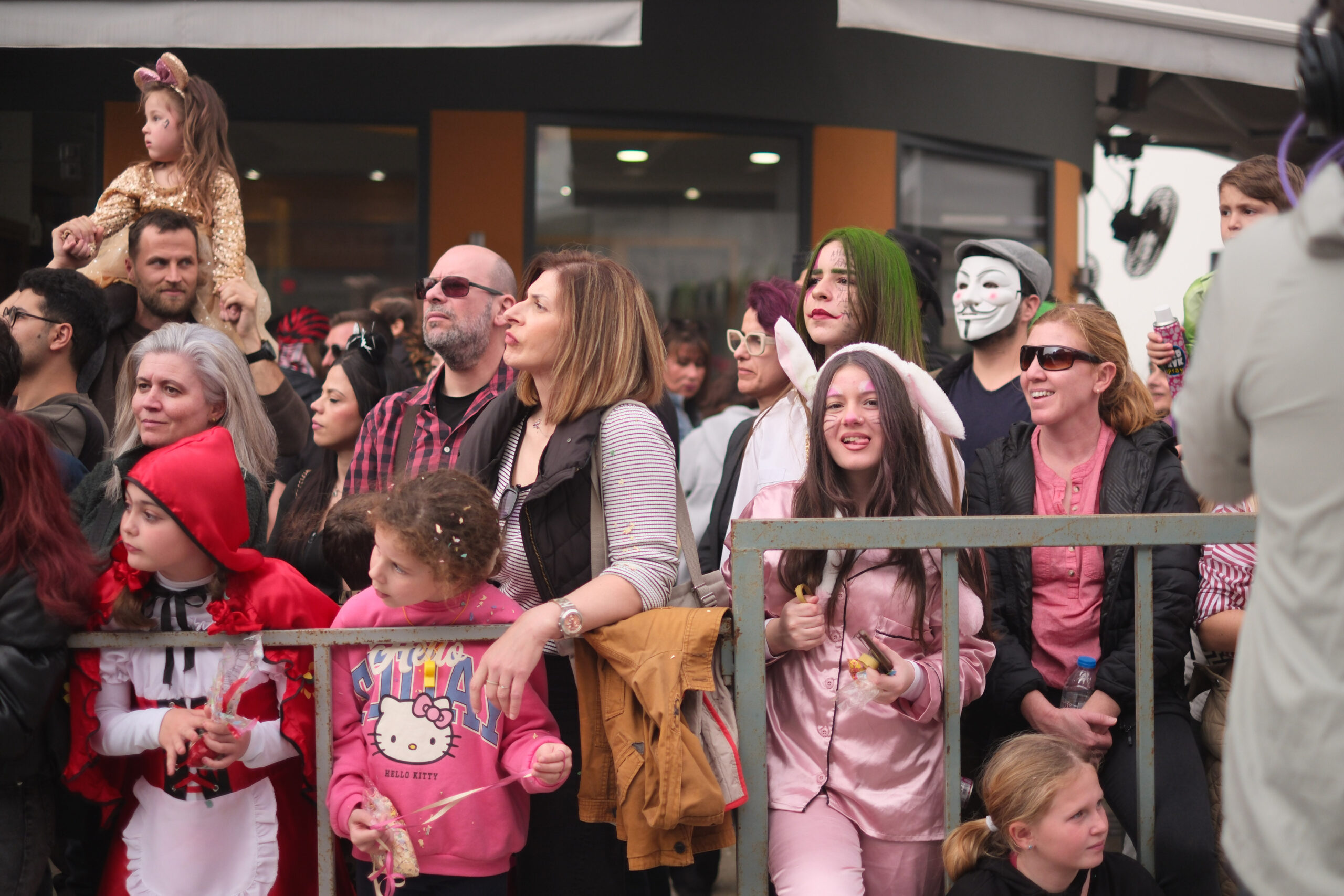 Το σκηνικό της παρέλασης συμπληρώθηκε από τα καθιερωμένα αποκριάτικα αξεσουάρ, με τις σερπαντίνες και τα κονφετί να δημιουργούν μια αίσθηση ατελείωτου πάρτι.