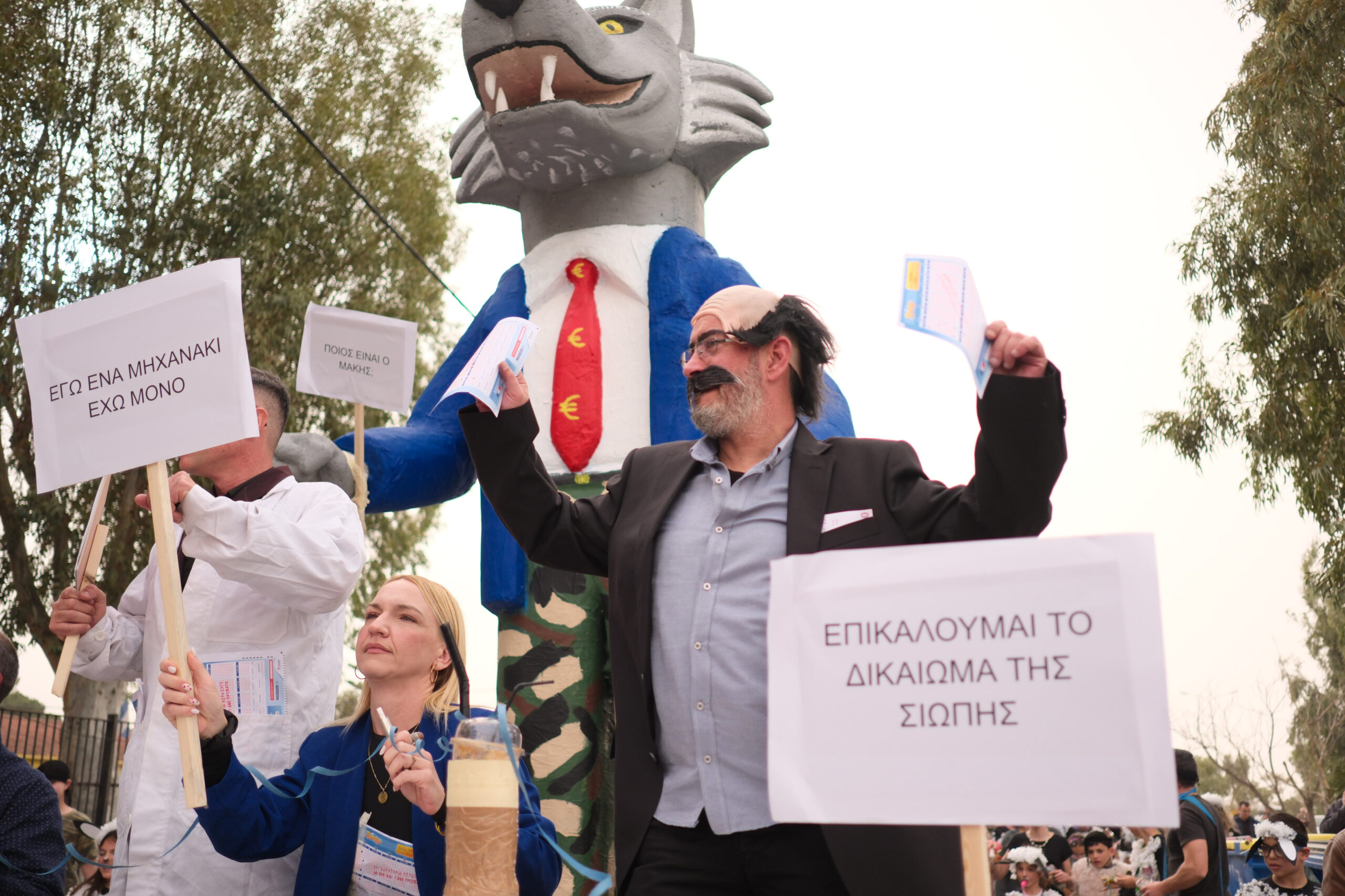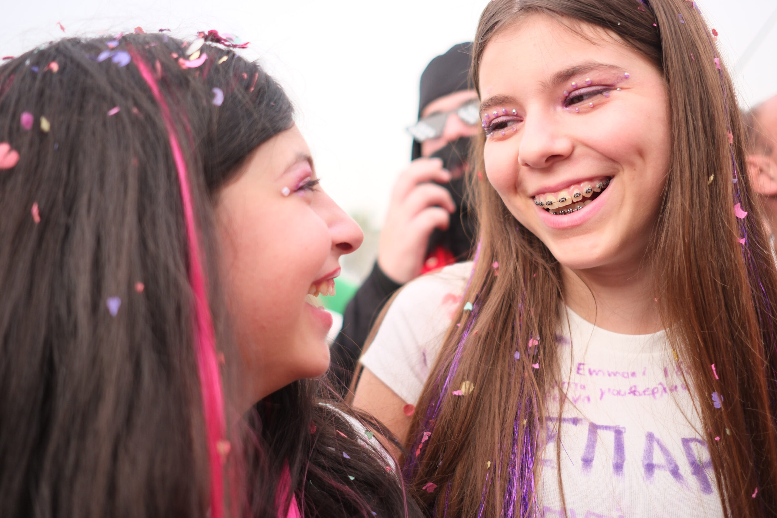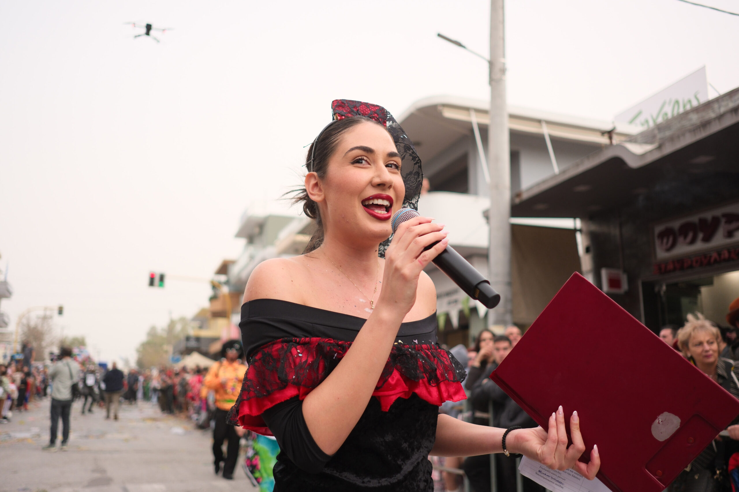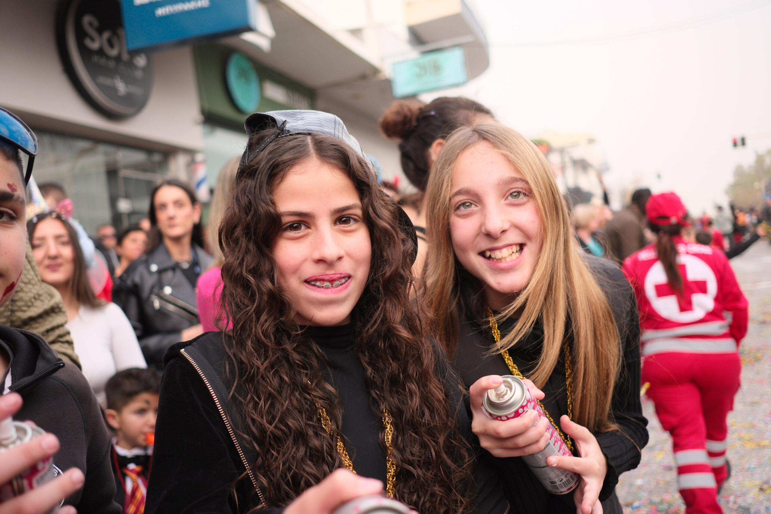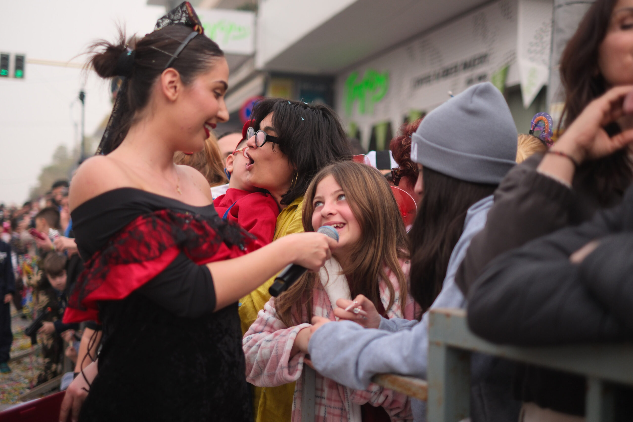 Το σκηνικό της παρέλασης συμπληρώθηκε από τα καθιερωμένα αποκριάτικα αξεσουάρ, με τις σερπαντίνες και τα κονφετί να δημιουργούν μια αίσθηση ατελείωτου πάρτι.