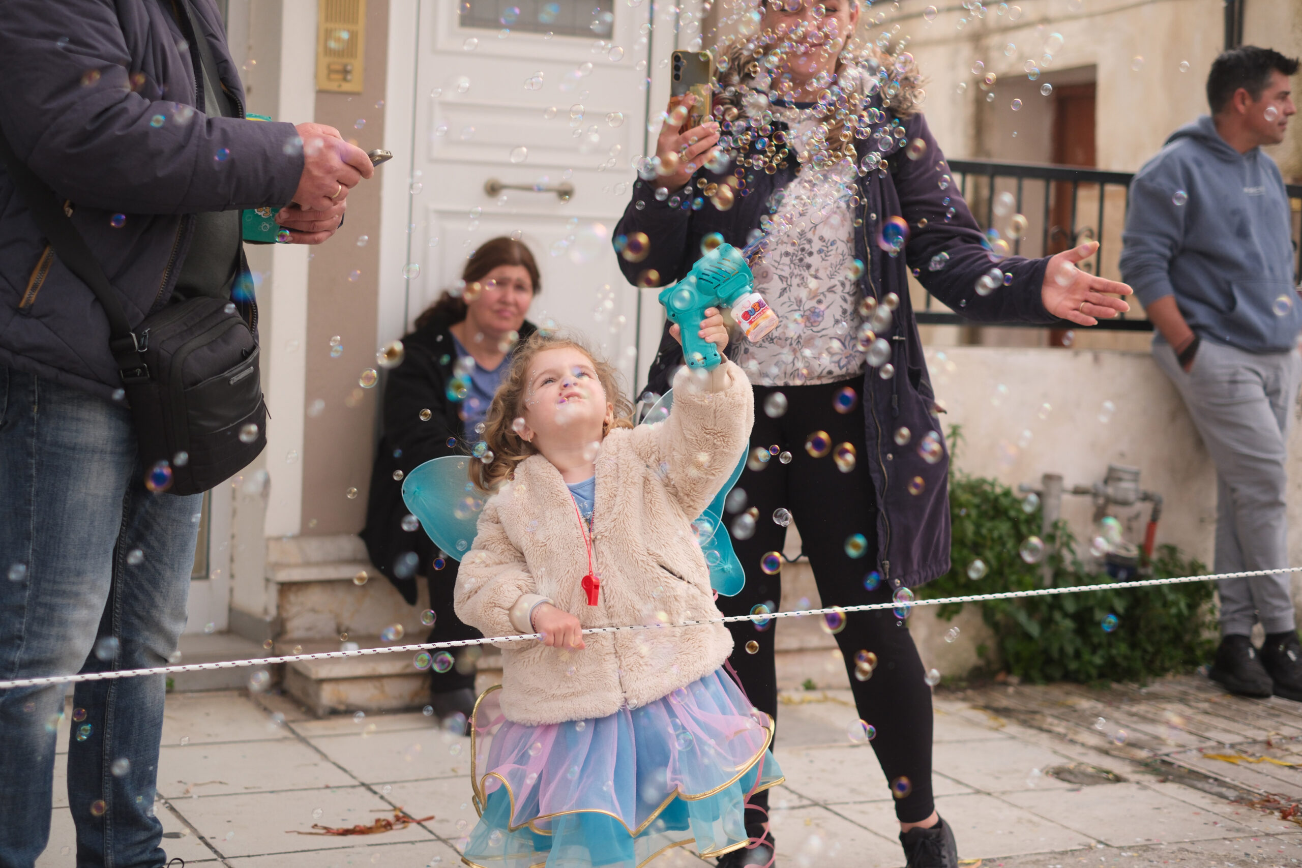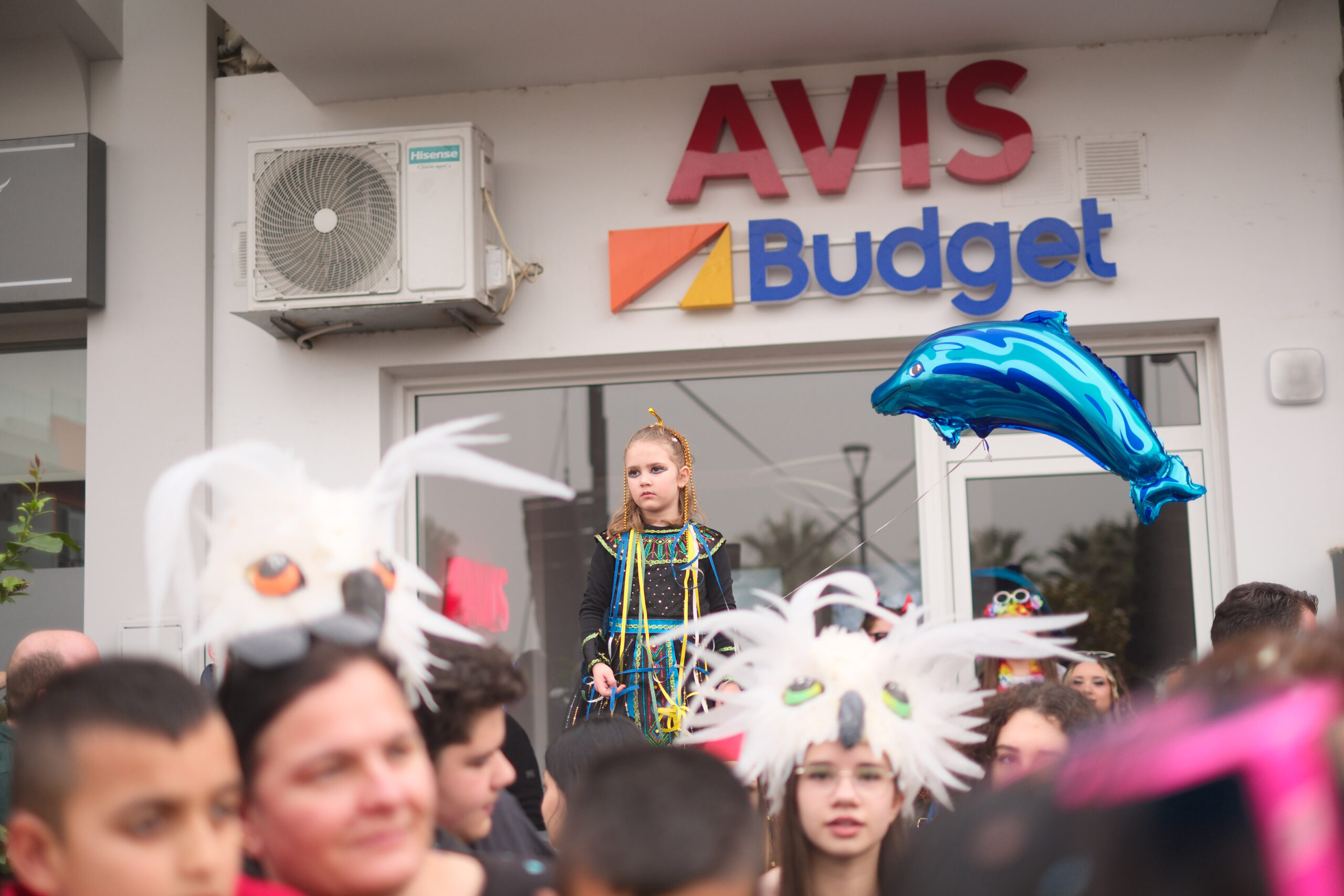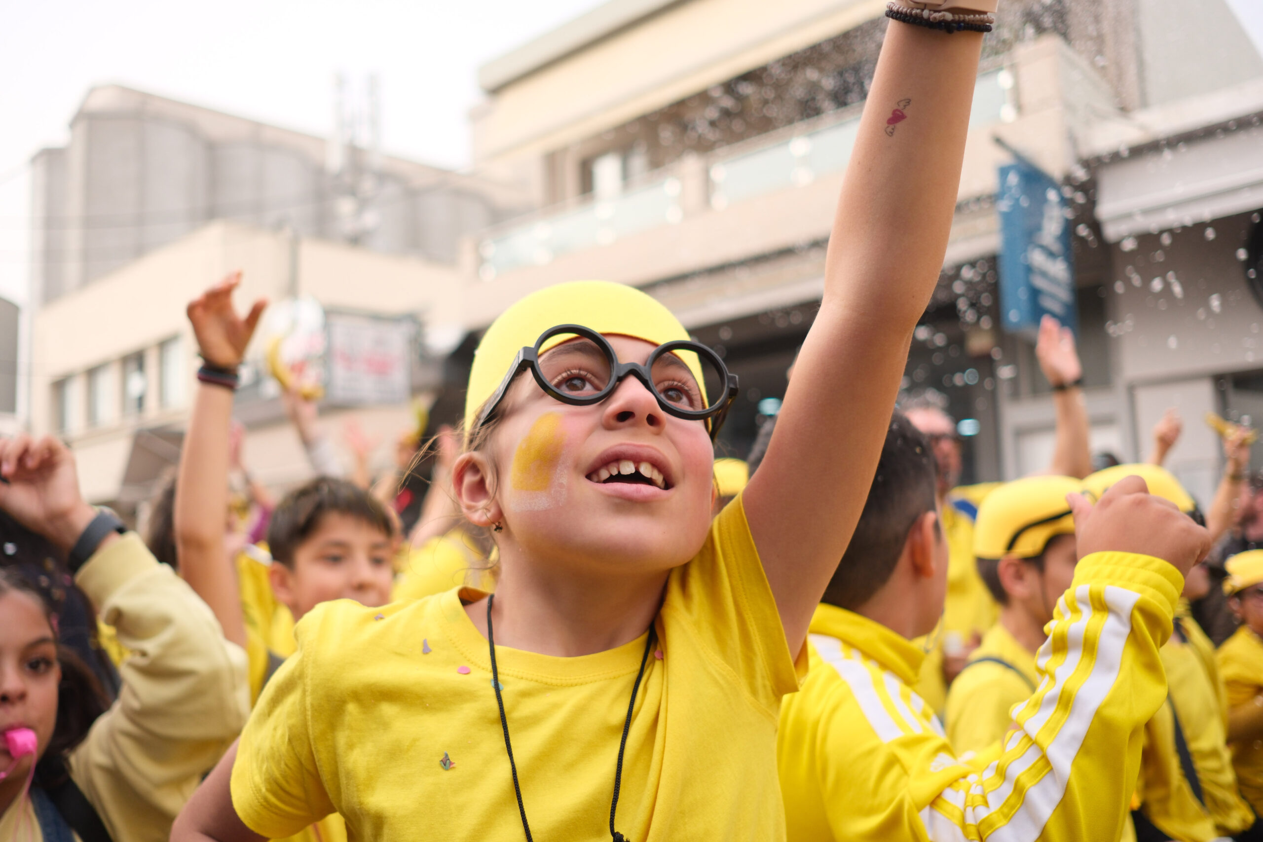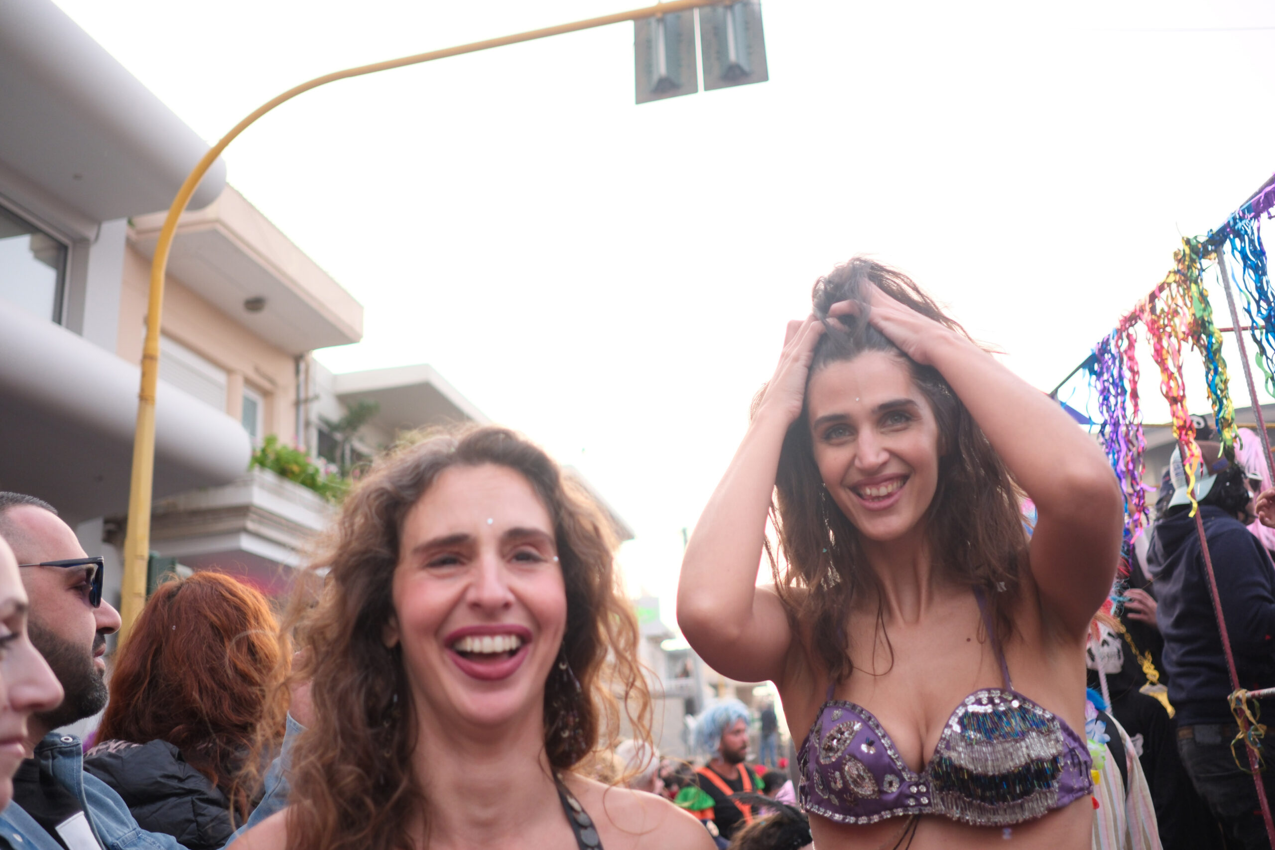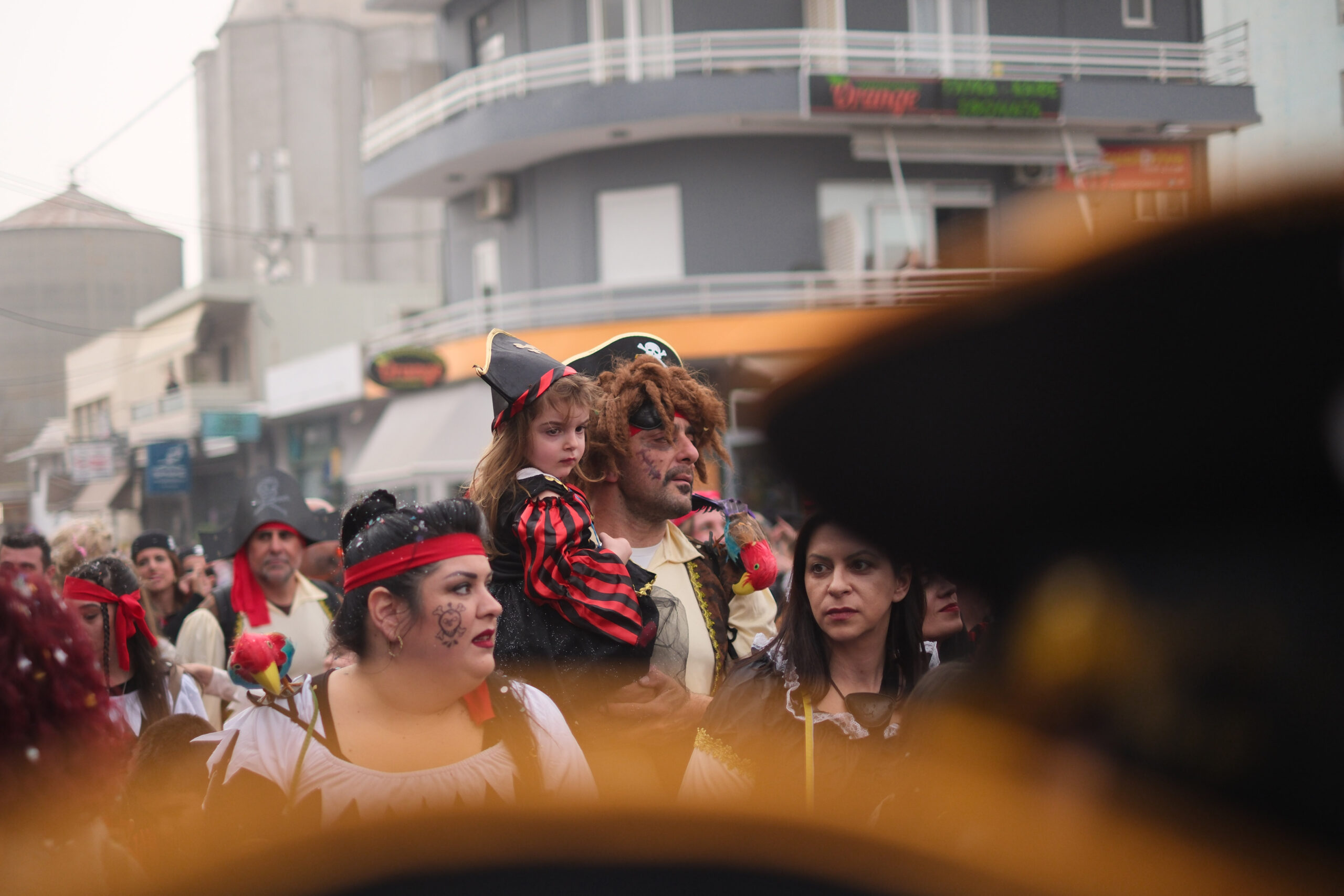 Το σκηνικό της παρέλασης συμπληρώθηκε από τα καθιερωμένα αποκριάτικα αξεσουάρ, με τις σερπαντίνες και τα κονφετί να δημιουργούν μια αίσθηση ατελείωτου πάρτι.
