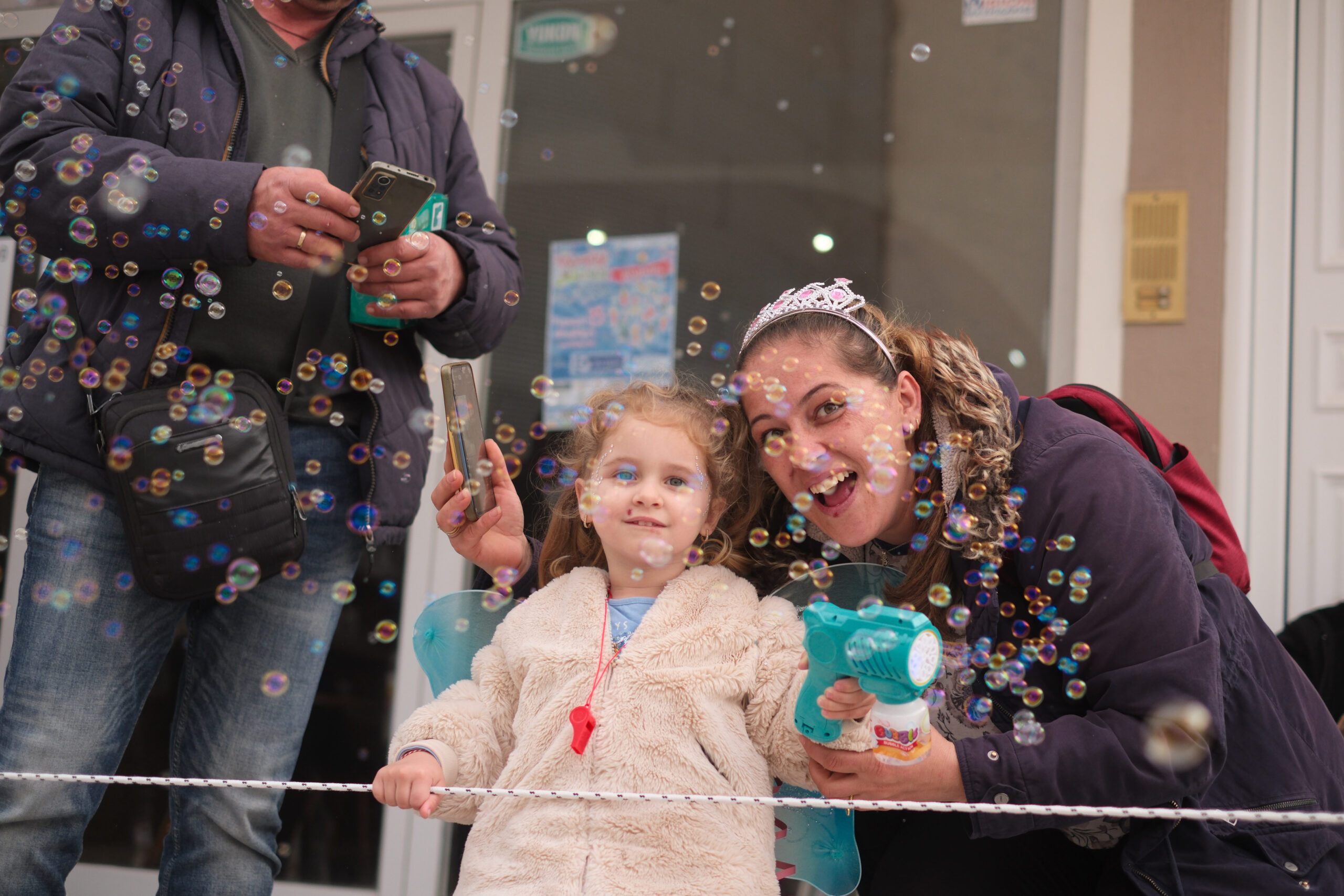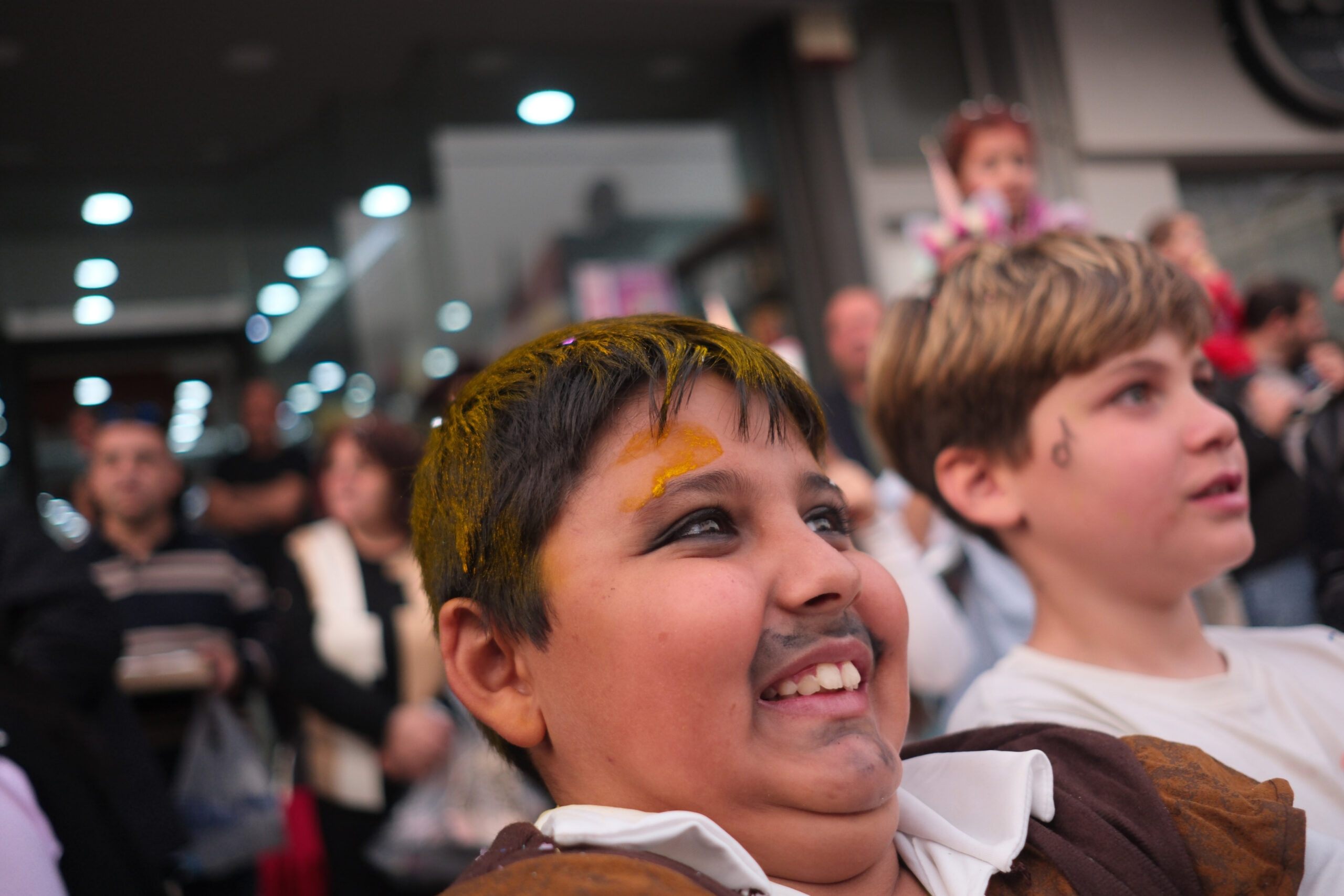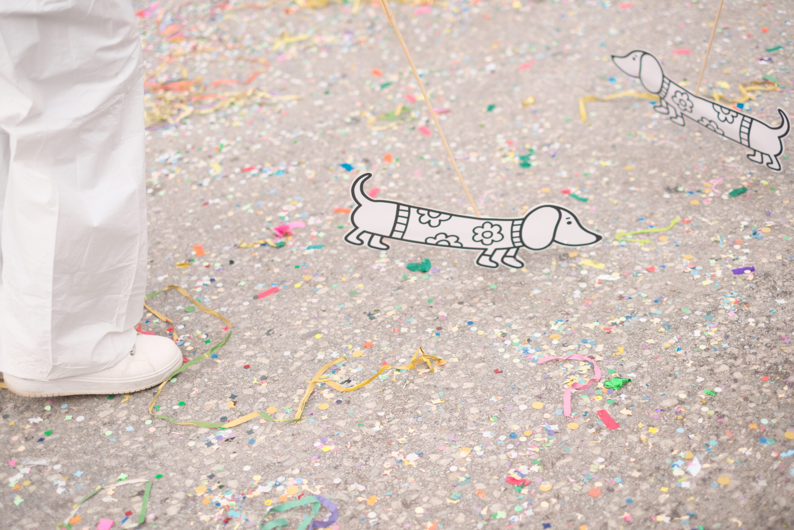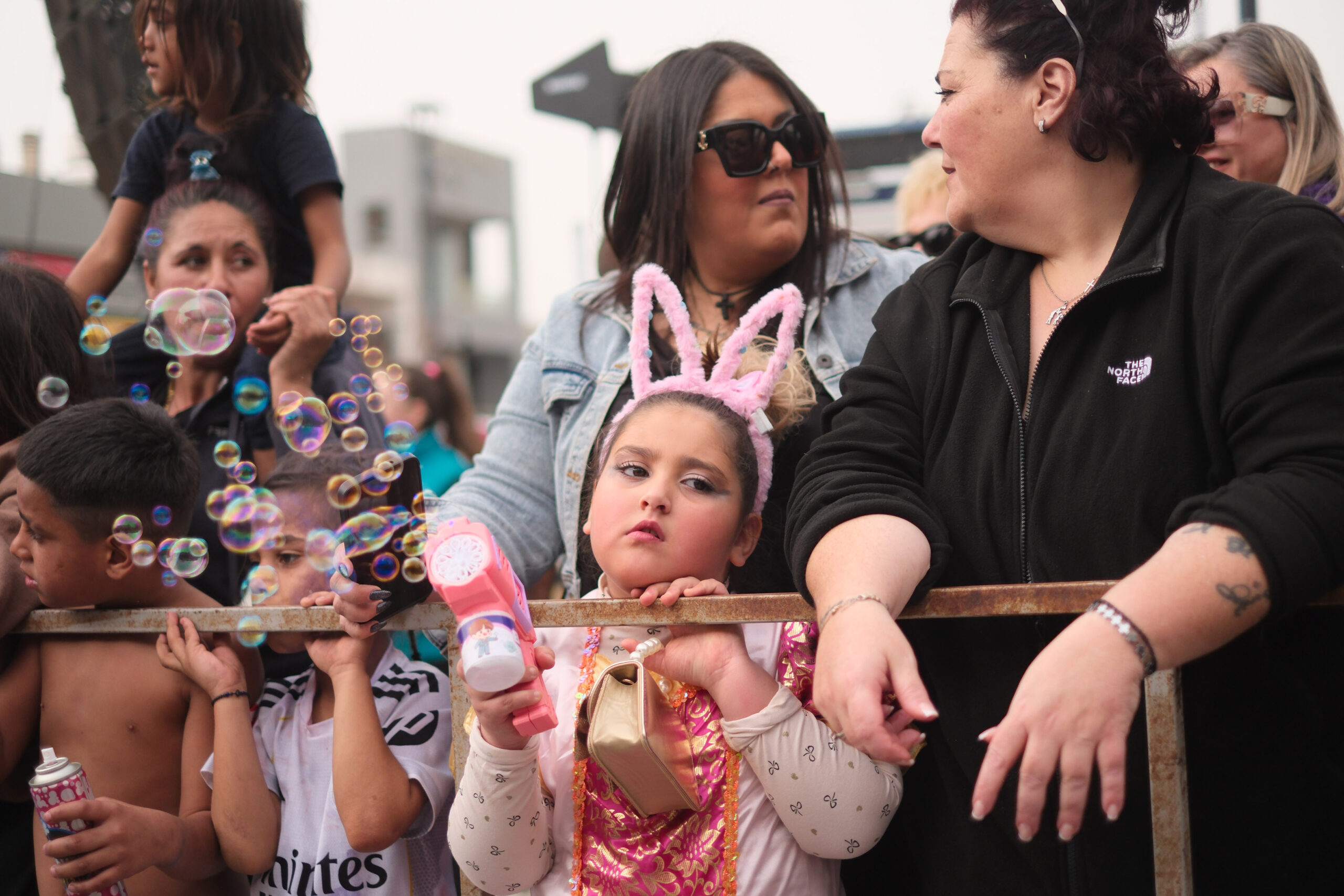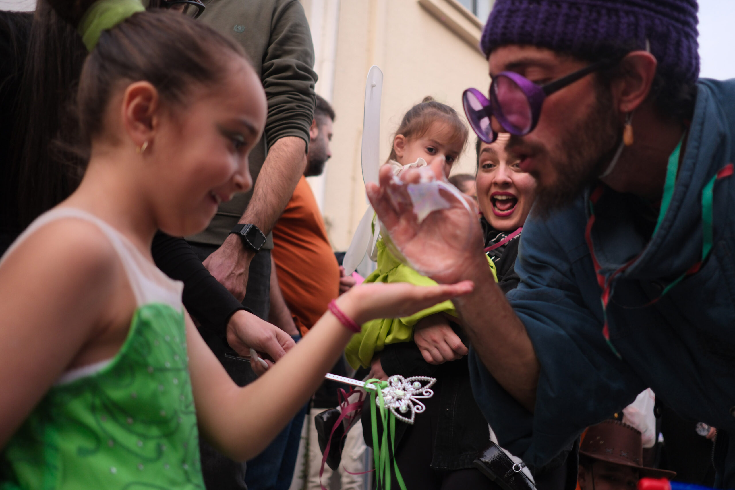 Το σκηνικό της παρέλασης συμπληρώθηκε από τα καθιερωμένα αποκριάτικα αξεσουάρ, με τις σερπαντίνες και τα κονφετί να δημιουργούν μια αίσθηση ατελείωτου πάρτι.
