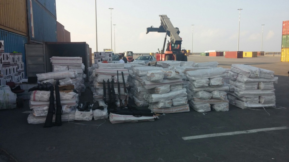 Πιο αναλυτικά, κατά την εκφόρτωση, των δύο πρώτων εμπορευματοκιβωτίων, τα οποία είχαν φορτωθεί στο Ισκεντερούν της Τουρκίας, εντοπίστηκαν και κατασχέθηκαν παλέτες με κουτιά που περιείχαν συνολικά 491.950 σφαίρες των 9mm, καθώς και περίπου 5.000 όπλα (καραμπίνες αστυνομικού τύπου), των οποίων η καταμέτρηση ακόμα συνεχίζεται.