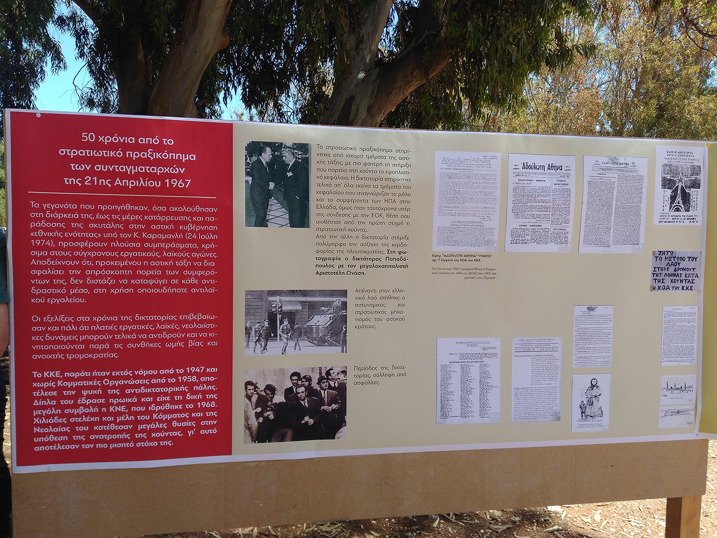 Ολοκληρώθηκε με επιτυχία η εκδήλωση της Τομεακής Επιτροπή Χανίων του ΚΚΕ, την Κυριακή 23 Απρίλη, στις 12 το μεσημέρι, στο Πάρκο Αγίων Αποστόλων, για τα 50 χρόνια, από το χουντικό, στρατιωτικό πραξικόπημα, των συνταγματαρχών της 21ης Απριλίου 1967.