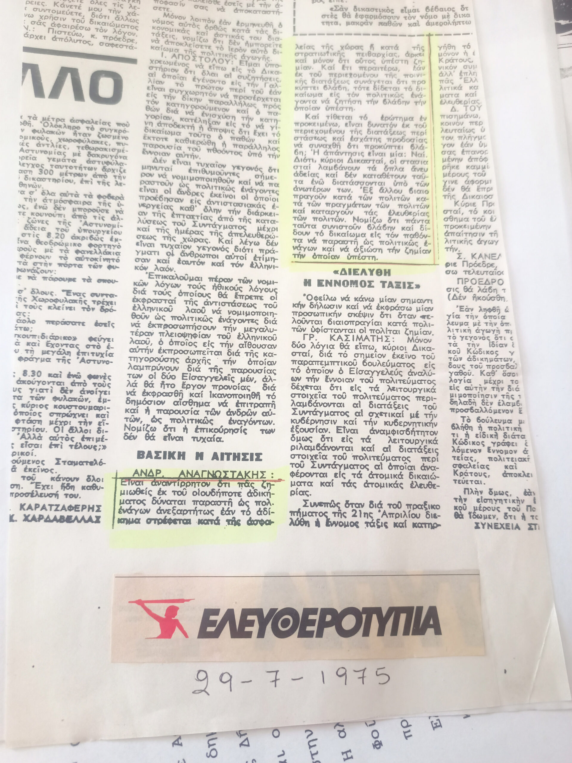 “Οτι ήταν αυτός και μόνο, που προκάλεσε τη δίωξη των πραξικοπηματιών για τα εγκλήματα της στάσης και της εσχάτης προδοσίας”. (Σελίς 23).