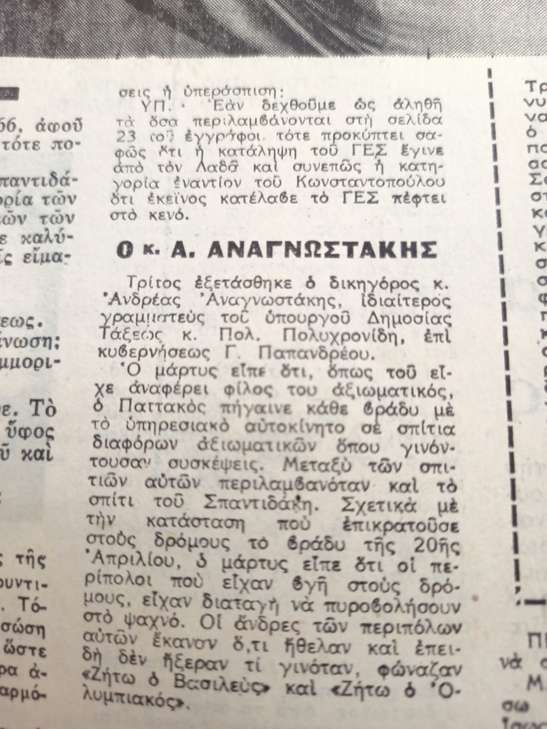 Αυτό βάρυνε κυρίως εμένα, που επί Κυβερνήσεως Γεωργίου Παπανδρέου, ήμουν ο ιδιαίτερος Γραμματέας του Υπουργού Δημόσιας Τάξης -Πολυχρόνη Πολυχρονίδη- και ήταν πάρα πολύ δύσκολο και χρονοβόρο.