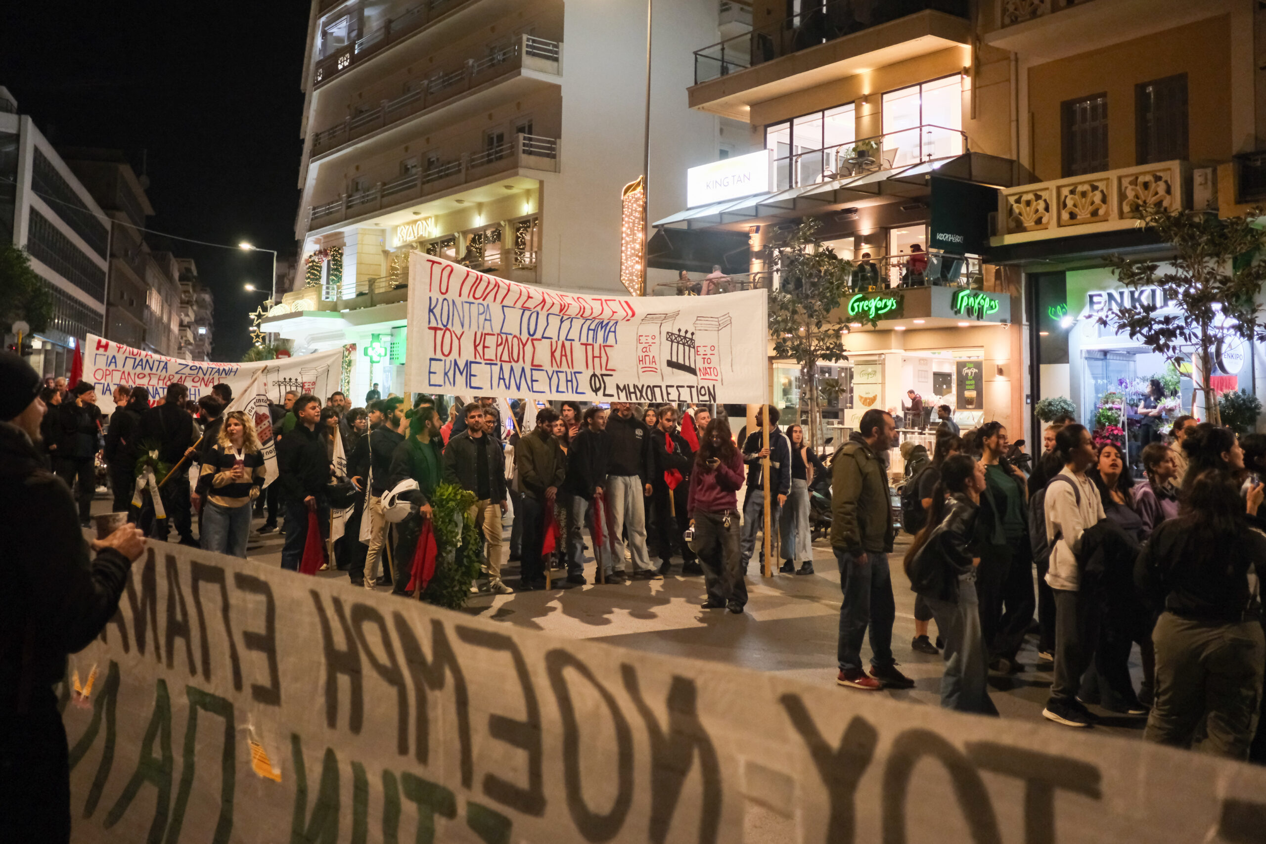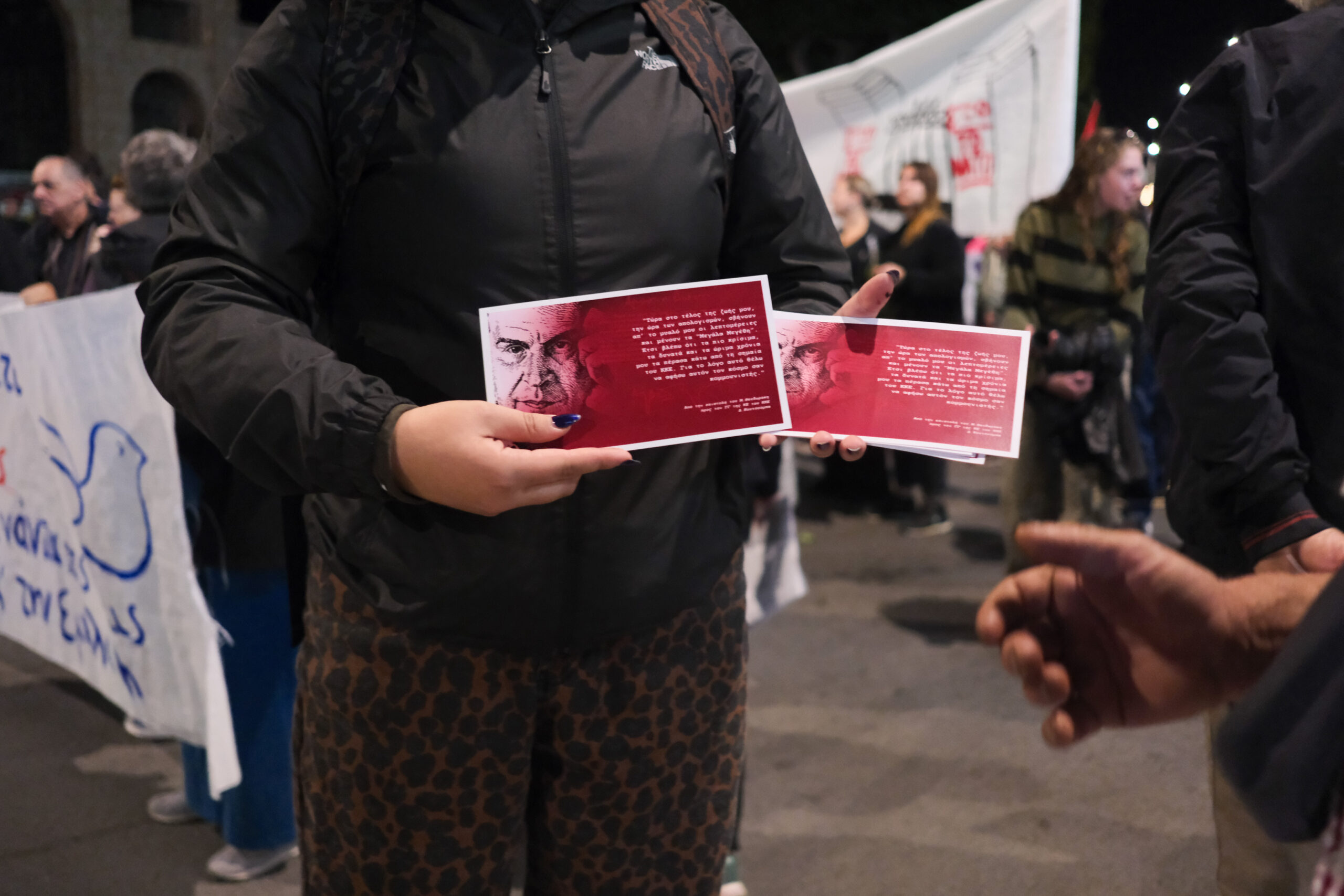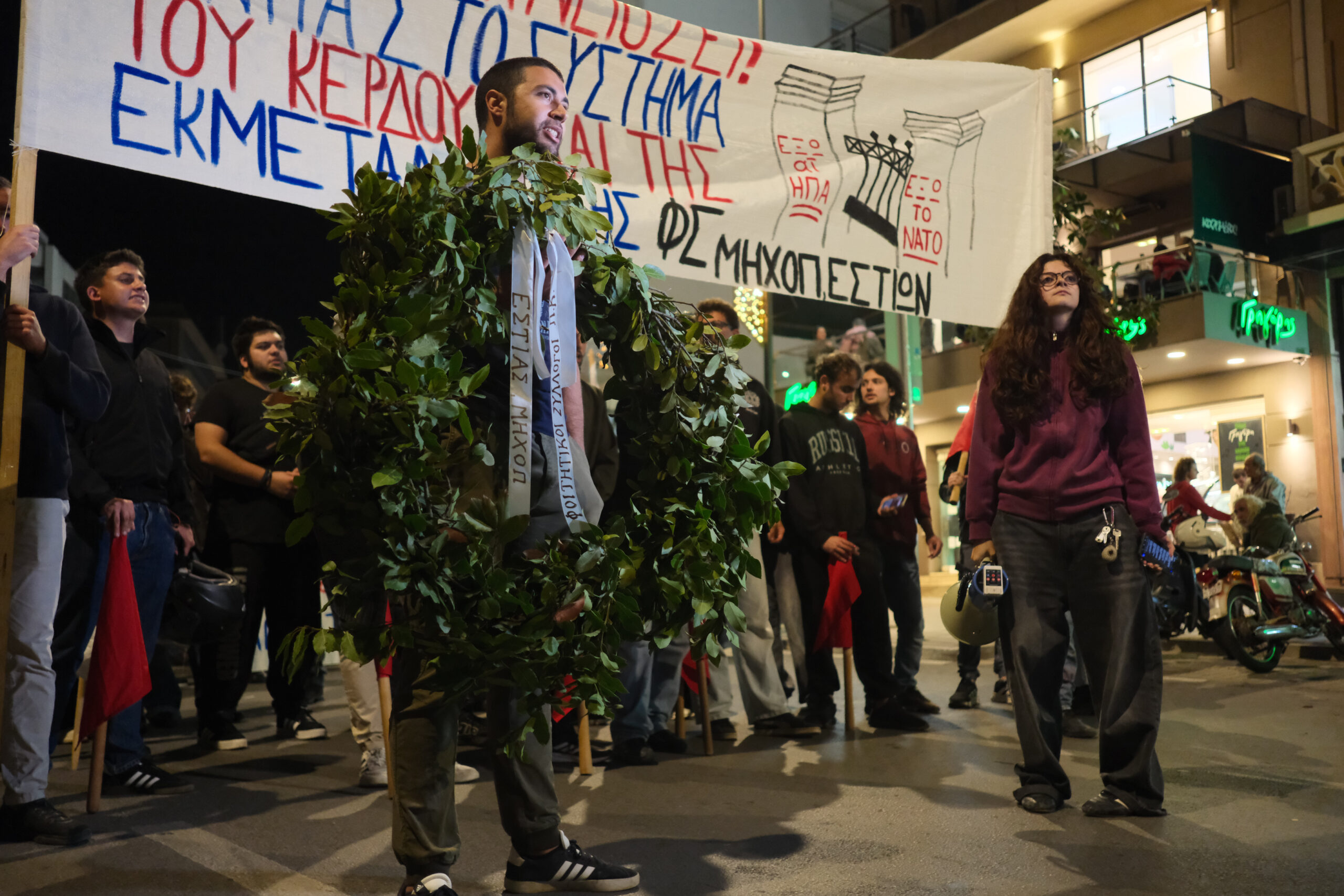 «Τιμάμε τον ηρωικό ξεσηκωμό του Πολυτεχνείου. Σήμερα, 52 χρόνια μετά, συνεχίζουμε τον αγώνα για τα ίδια, δίκαια και επίκαιρα συνθήματα, όπως αυτά ενάντια στην εμπλοκή της χώρας μας σε πολέμους και στη συμμετοχή των πανεπιστημίων μας σε στρατιωτικά προγράμματα».