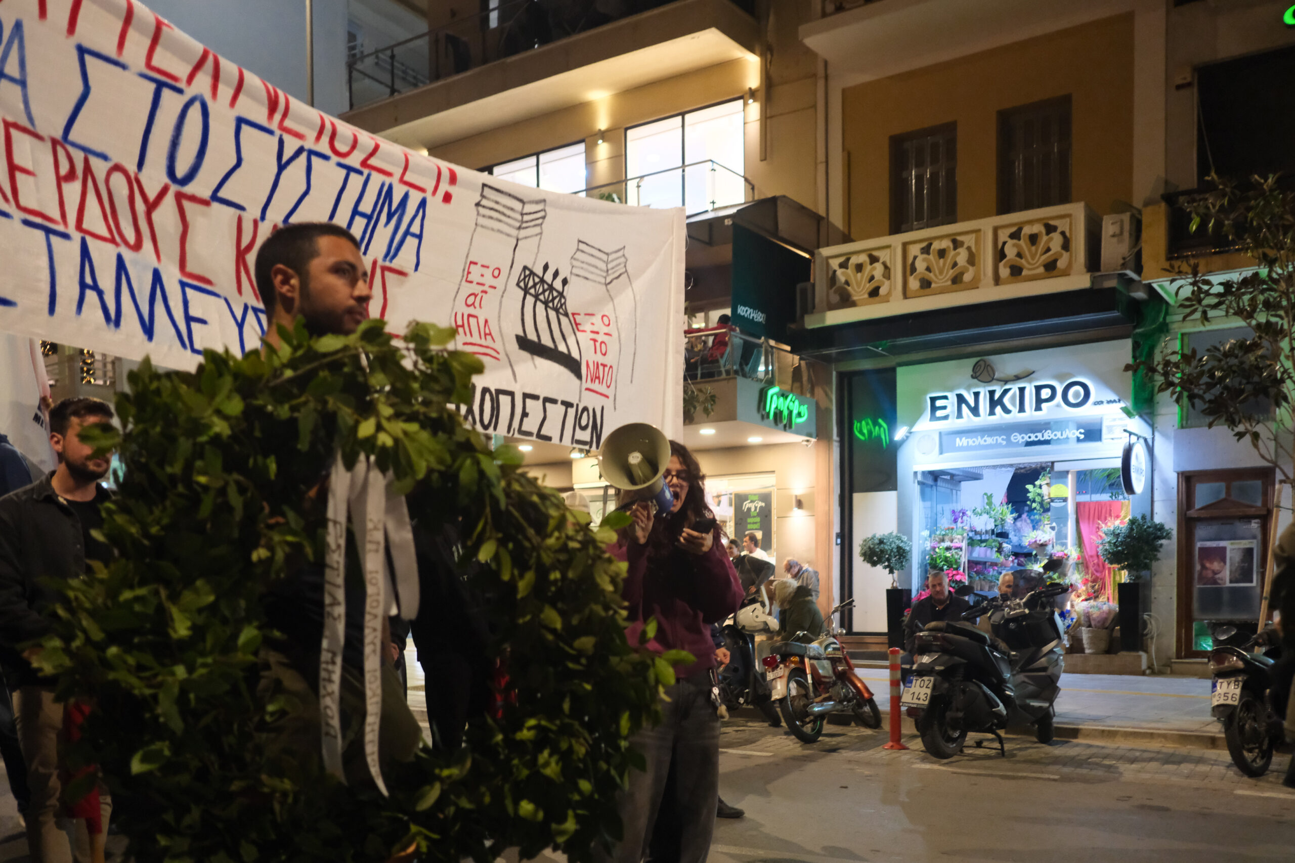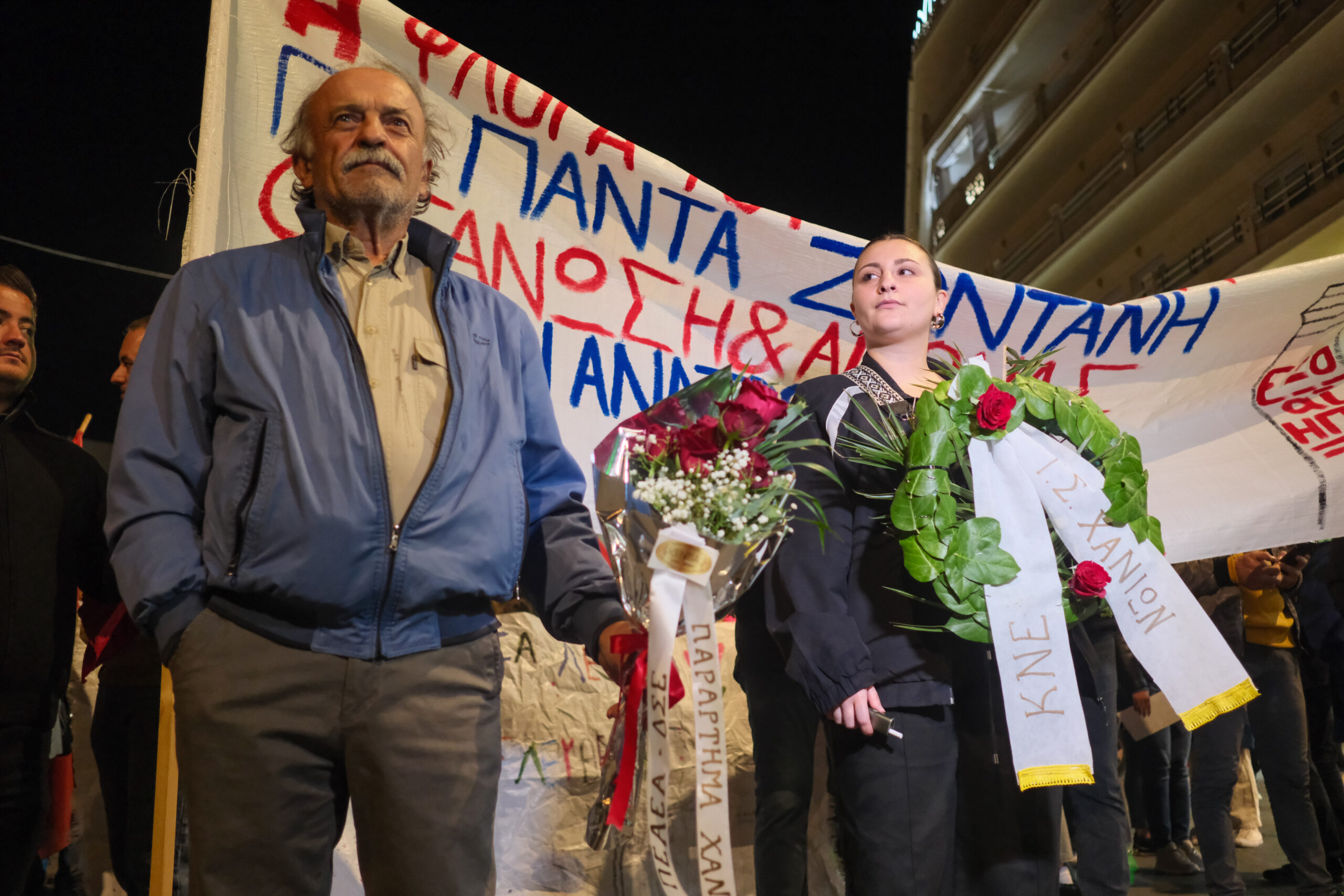Στην κεντρική πορεία για την 52η επέτειο της εξέγερσης του Πολυτεχνείου στα Χανιά παρενέβη και ο Αλέκος Μαρινάκης, επικεφαλής της Λαϊκής Συσπείρωσης Κρήτης, με δήλωση που τόνισε την ιστορική μνήμη και την ανάγκη συνέχισης του αγώνα απέναντι στη σημερινή πολιτική και γεωπολιτική συγκυρία.