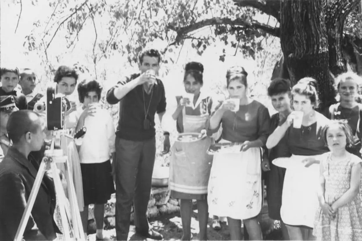 Προσφορά γάλακτος στους παρευρισκόμενους και τον κινηματογραφιστή-λαογράφο.