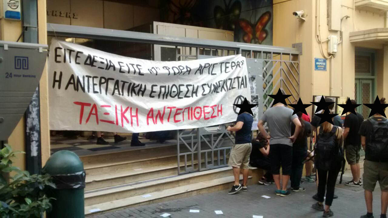 Αντιεξουσιαστές και μέλη της ΑΝΤΑΡΣΥΑ απέτρεψαν τον Υπουργό από το να πραγματοποιήσει την ομιλία του στην αίθουσα Ανδρογέω στα πλαίσια της Ν.Ε. Ηρακλείου του ΣΥΡΙΖΑ για τις “Τρέχουσες Πολιτικές Εξελίξεις”.