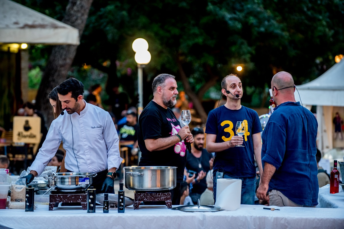 Η τρίτη ημέρα της Γιορτής Κρητικής Διατροφής, συνεχίστηκε με μια απολαυστική «συνομιλία» ανάμεσα στο ροζέ κρασί και το ελαιόλαδο: ο κορυφαίος wine-blogger, Θεόδωρος (για το Ρέθυμνο πλέον, Ted!) Λέλεκας και ο βραβευμένος σεφ ελαιολάδου, Βασίλης Λεωνίδου, ένωσαν τις δυνάμεις τους και, μαζί με τους stand-up comedians Κώστα Παπαγεωργίου και Αλέξανδρο Τσουβέλα, οι οποίοι κυριολεκτικά εισέβαλαν στη σκηνή, μύησαν τους επισκέπτες στα μυστικά του ροζέ κρασιού.