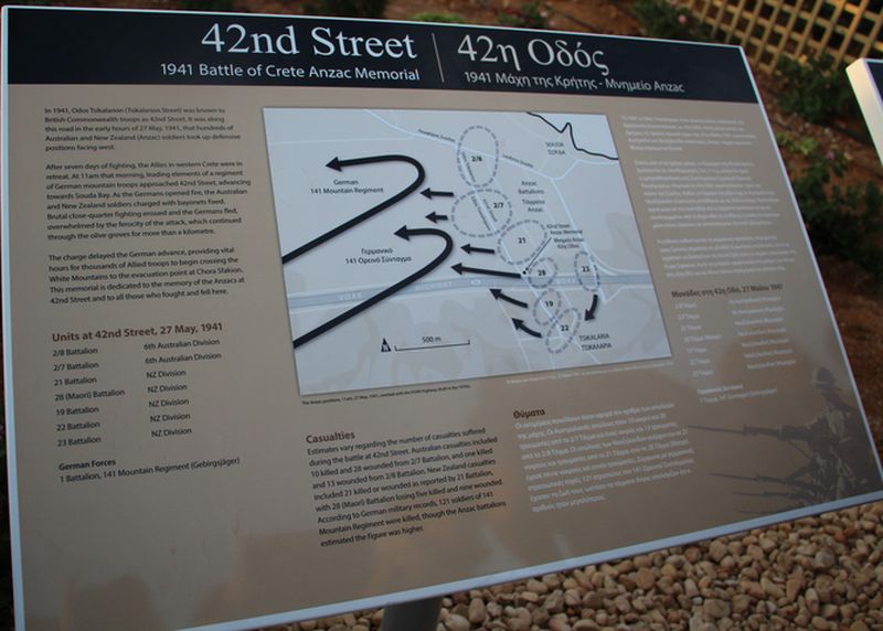 “Παρουσιάζουμε σήμερα το μνημείο, ανταποκρινόμενοι σε αίτημα, που είχε διατυπωθεί εδώ και χρόνια από όλες τις πλευρές, ενώ σε αυτό τοποθετήσαμε πλακέτα, που είχε χρηματοδοτηθεί κυρίως από δωρεές ιδιωτών των ελληνικών και κρητικών κοινοτήτων της Αυστραλίας και ειδικότερα των Φίλων του Καταπιστεύματος της 42ης Οδού καθώς και πληροφοριακές πινακίδες, προς τιμήν των ηρώων μας”, πρόσθεσε ο Δήμαρχος Χανίων.