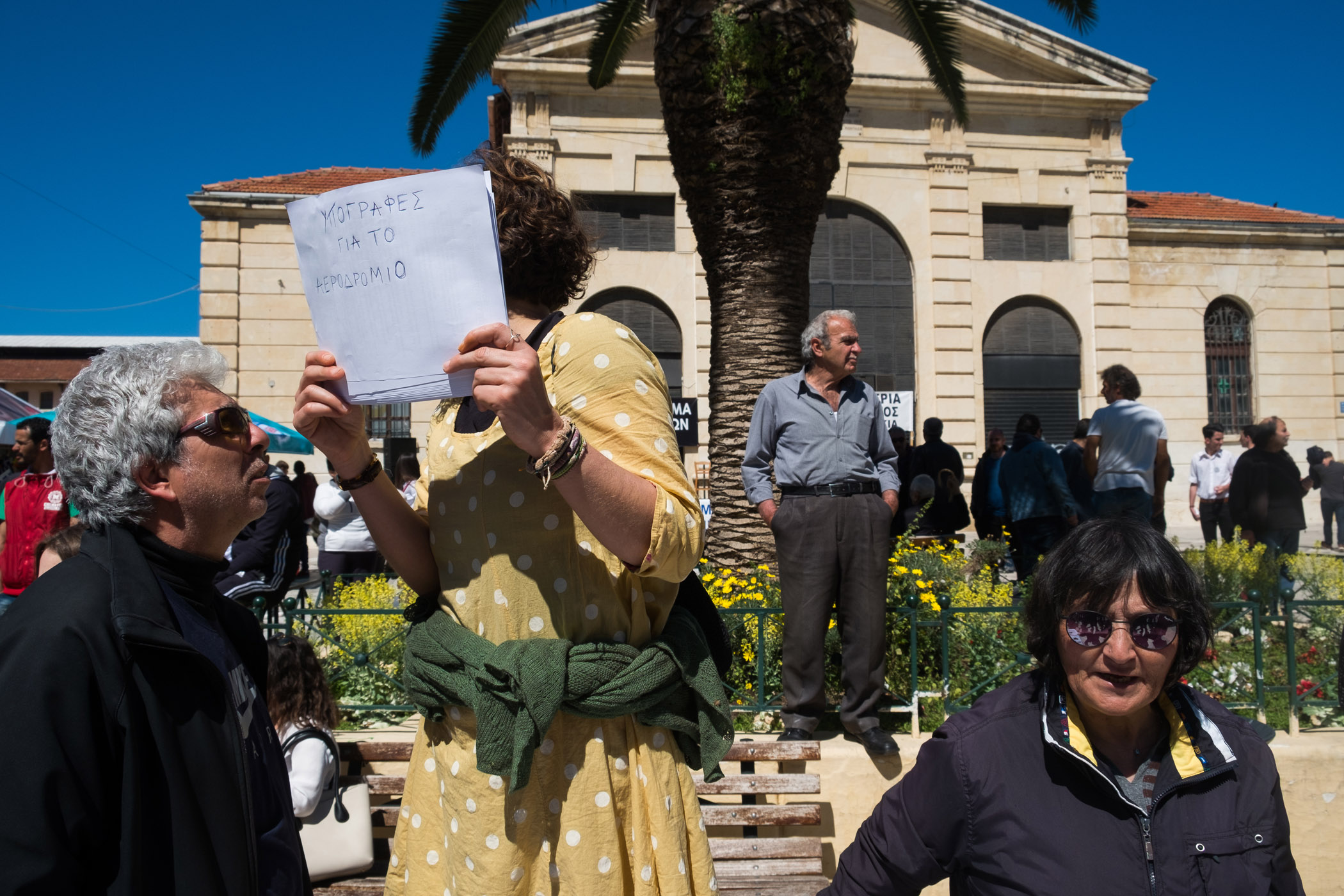Aμέσως μετά ακολούθησε η εκδήλωση της Ανοιχτής Πρωτοβουλίας Πολιτών ενάντια στην εκχώρηση του αεροδρομίου Χανίων “Δασκαλογιάννης” με πολλούς πολίτες να παραμένουν στην Πλατεία Αγοράς για να συμμετάσχουν.